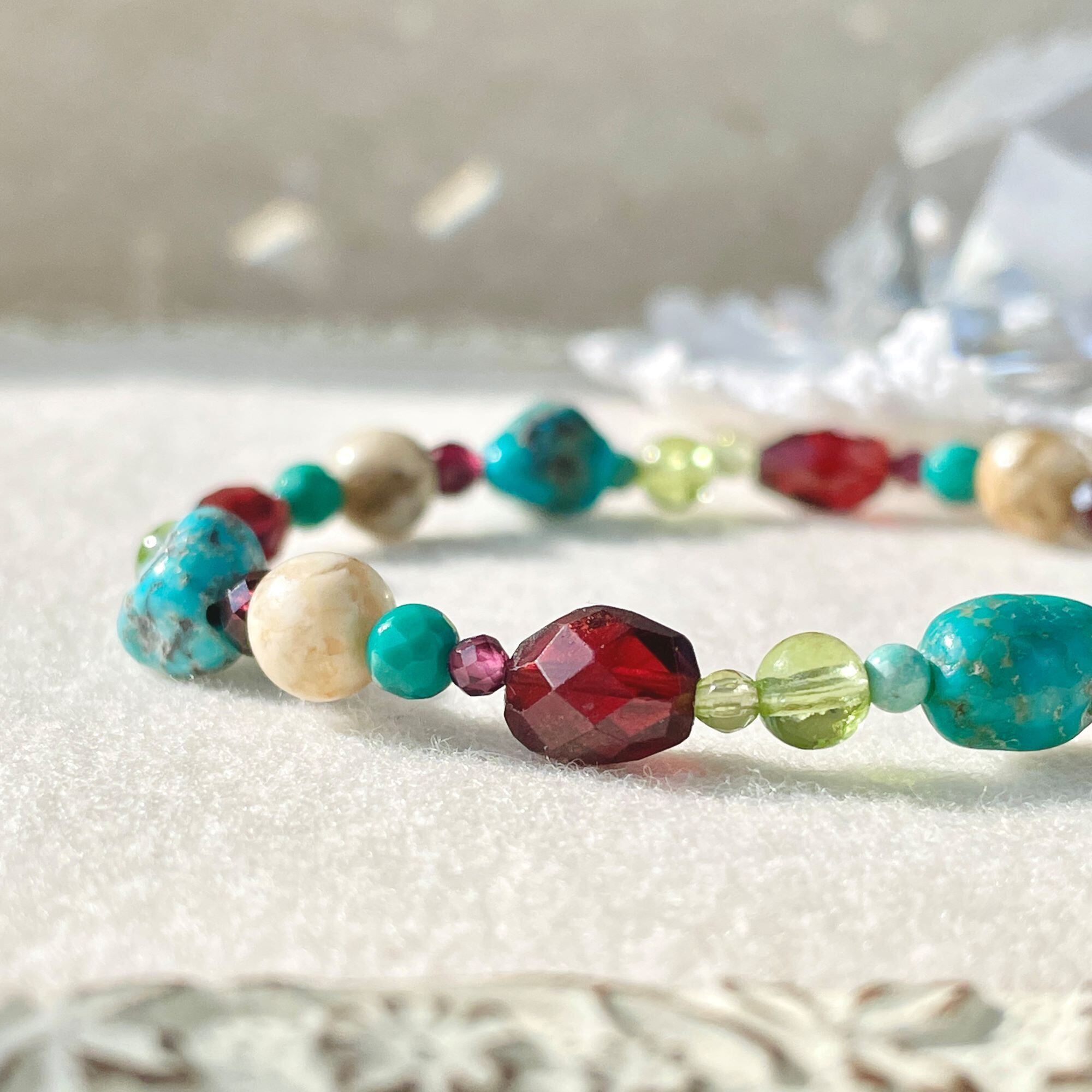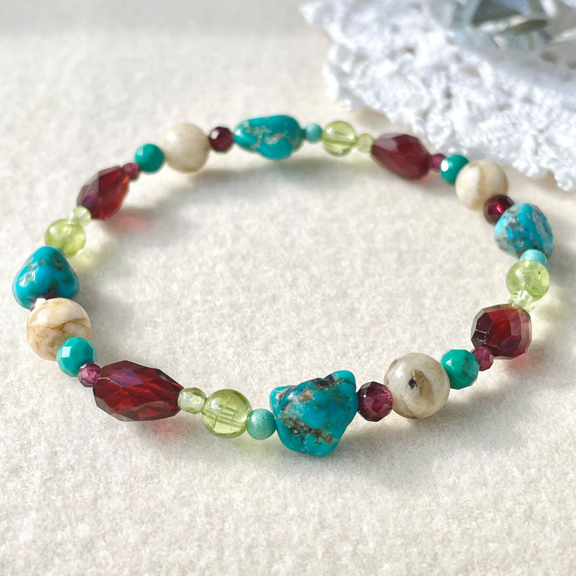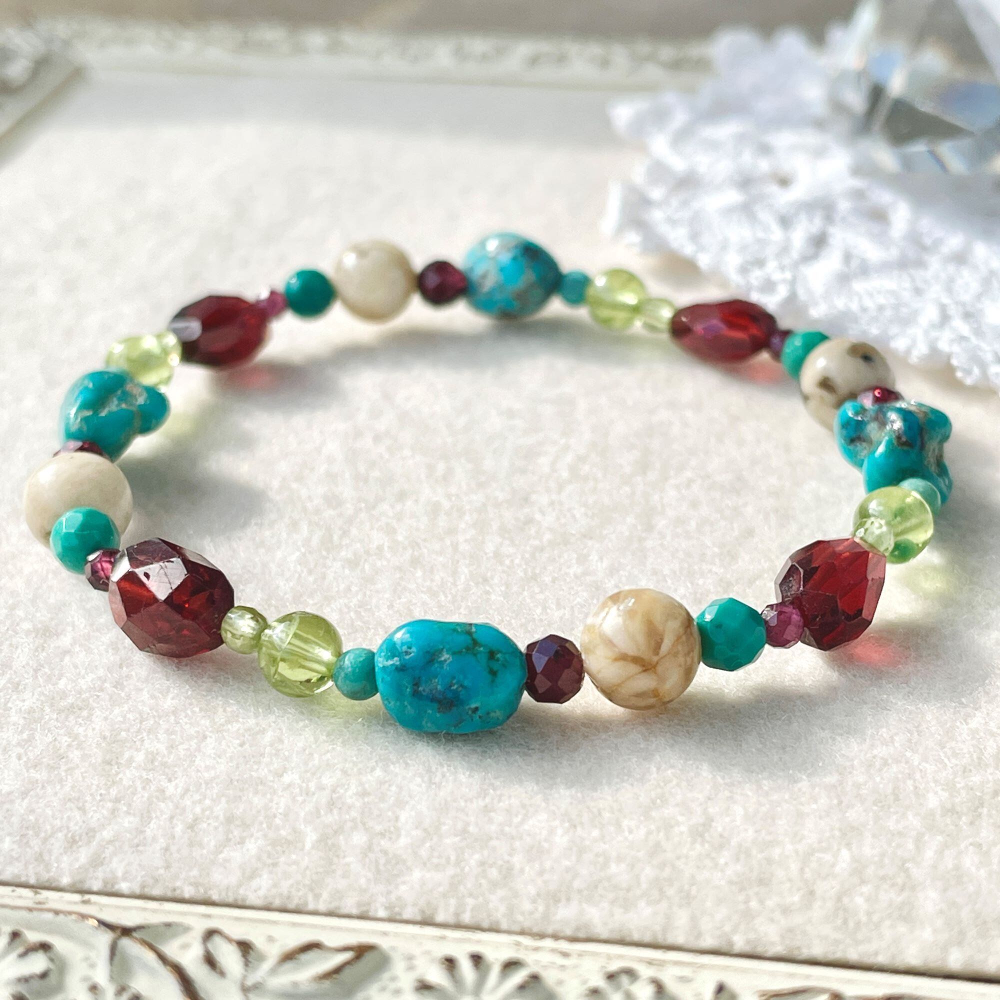 ronde モザンビークガーネット+ターコイズ+ペリドットのブレスレット gan-b-2312-07