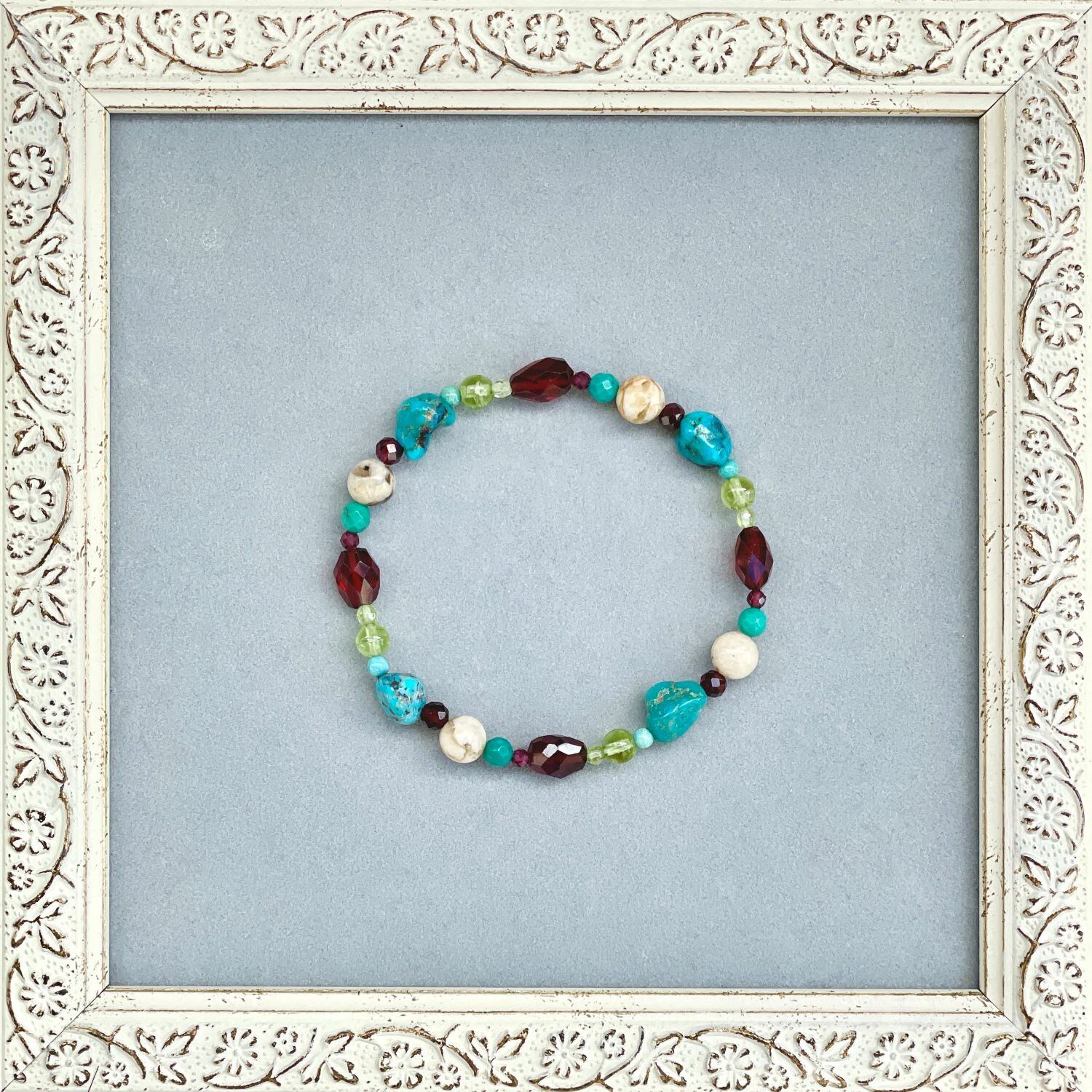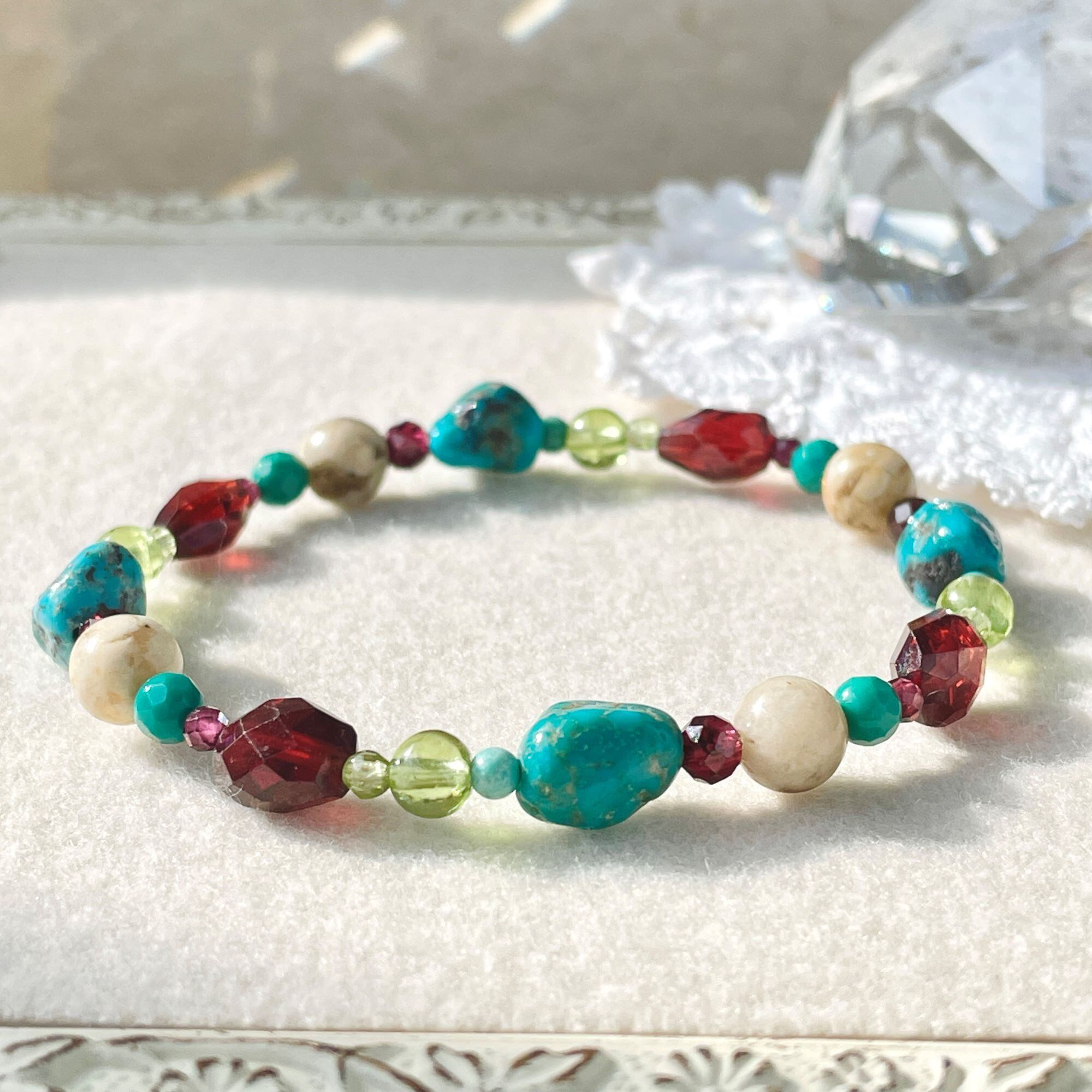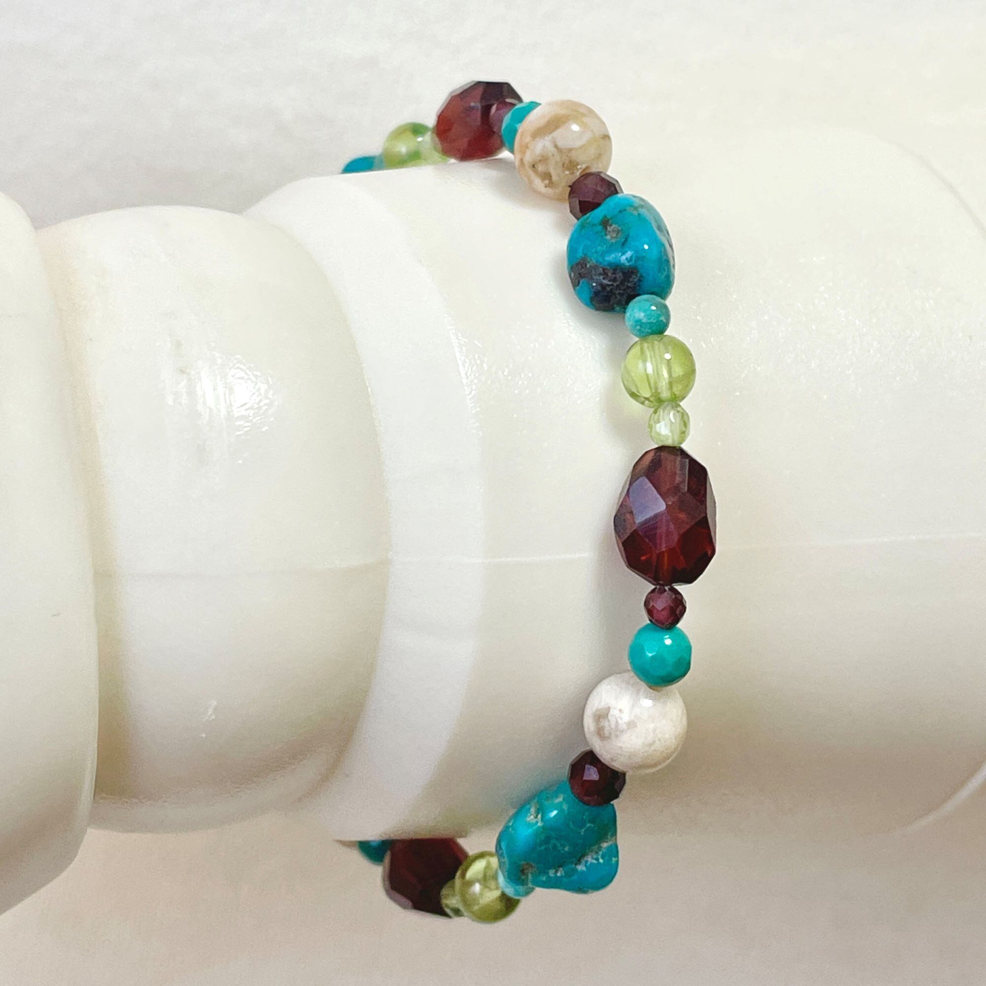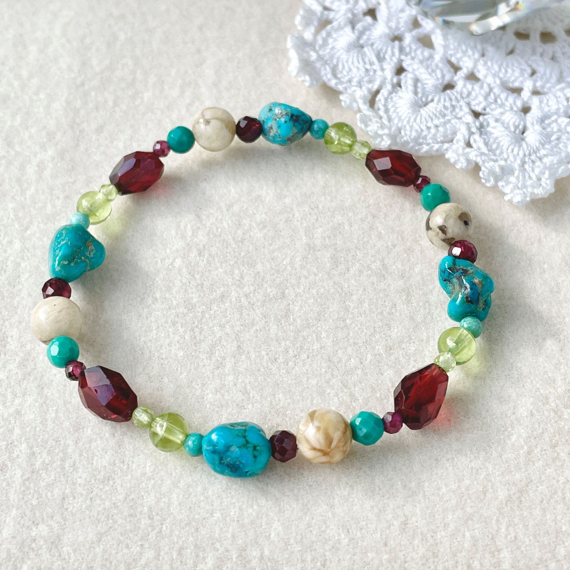 ronde モザンビークガーネット+ターコイズ+ペリドットのブレスレット gan-b-2312-07