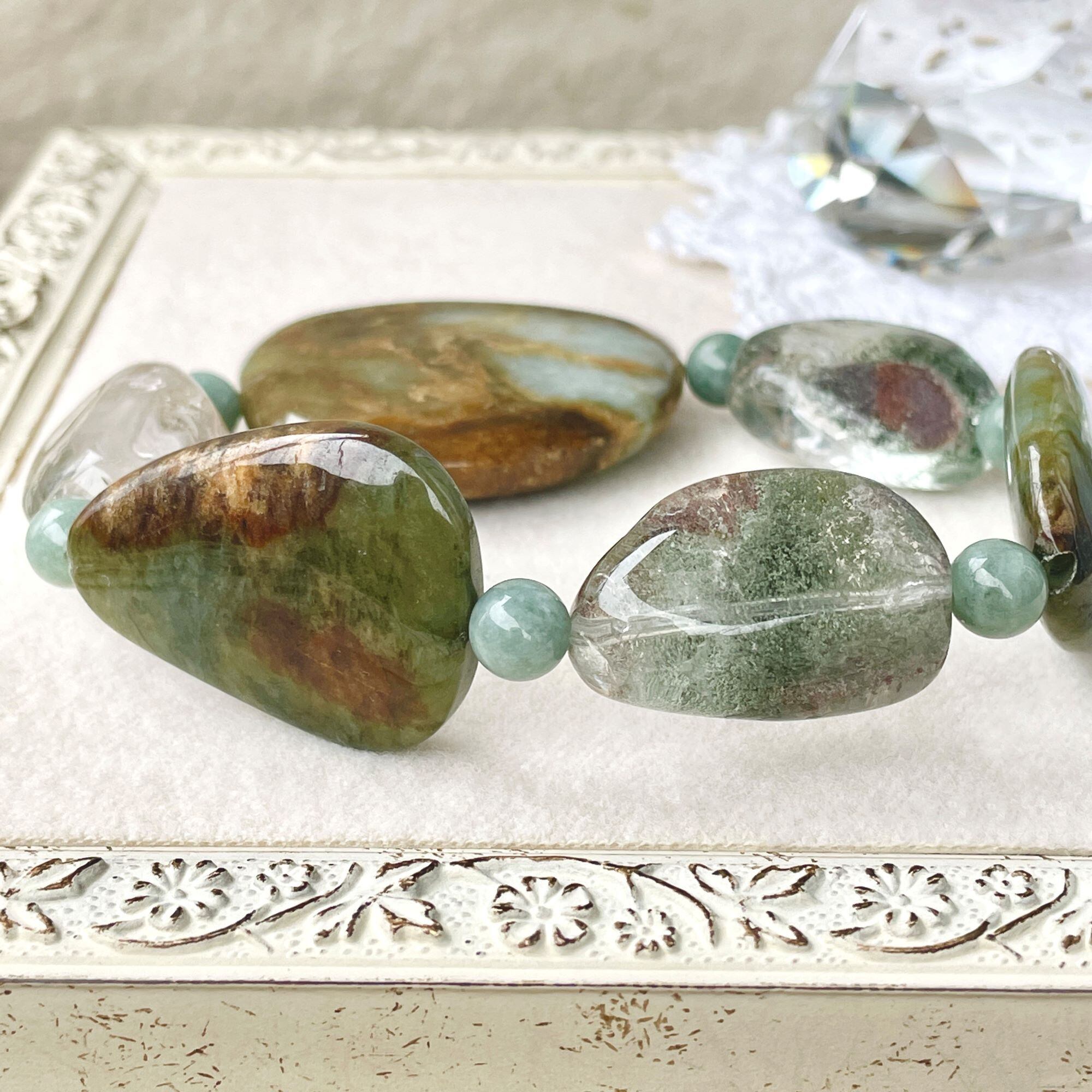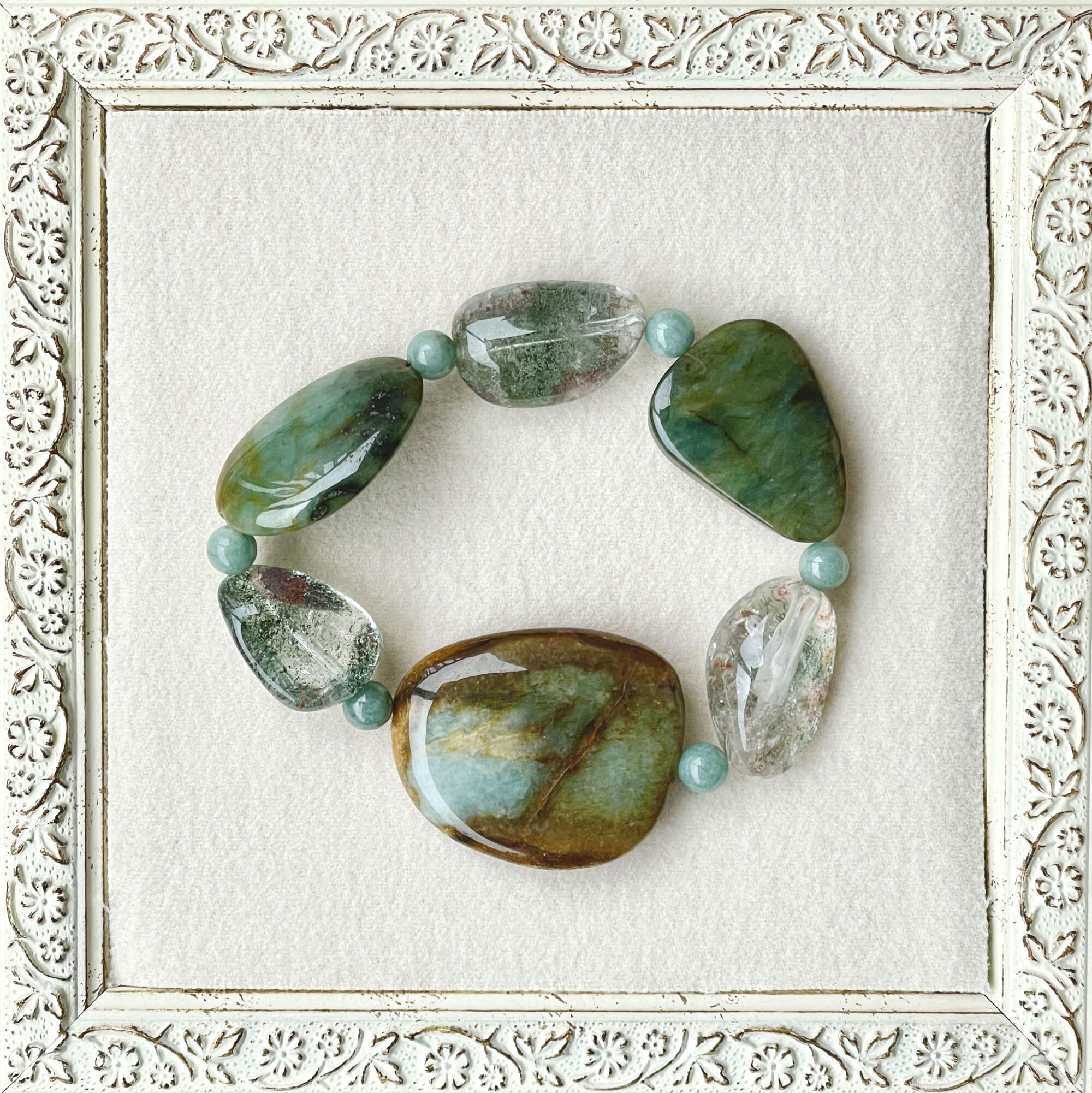 ronde ジェダイト(ビルマ翡翠)+ガーデンクォーツのブレスレット jad-b-2401-01