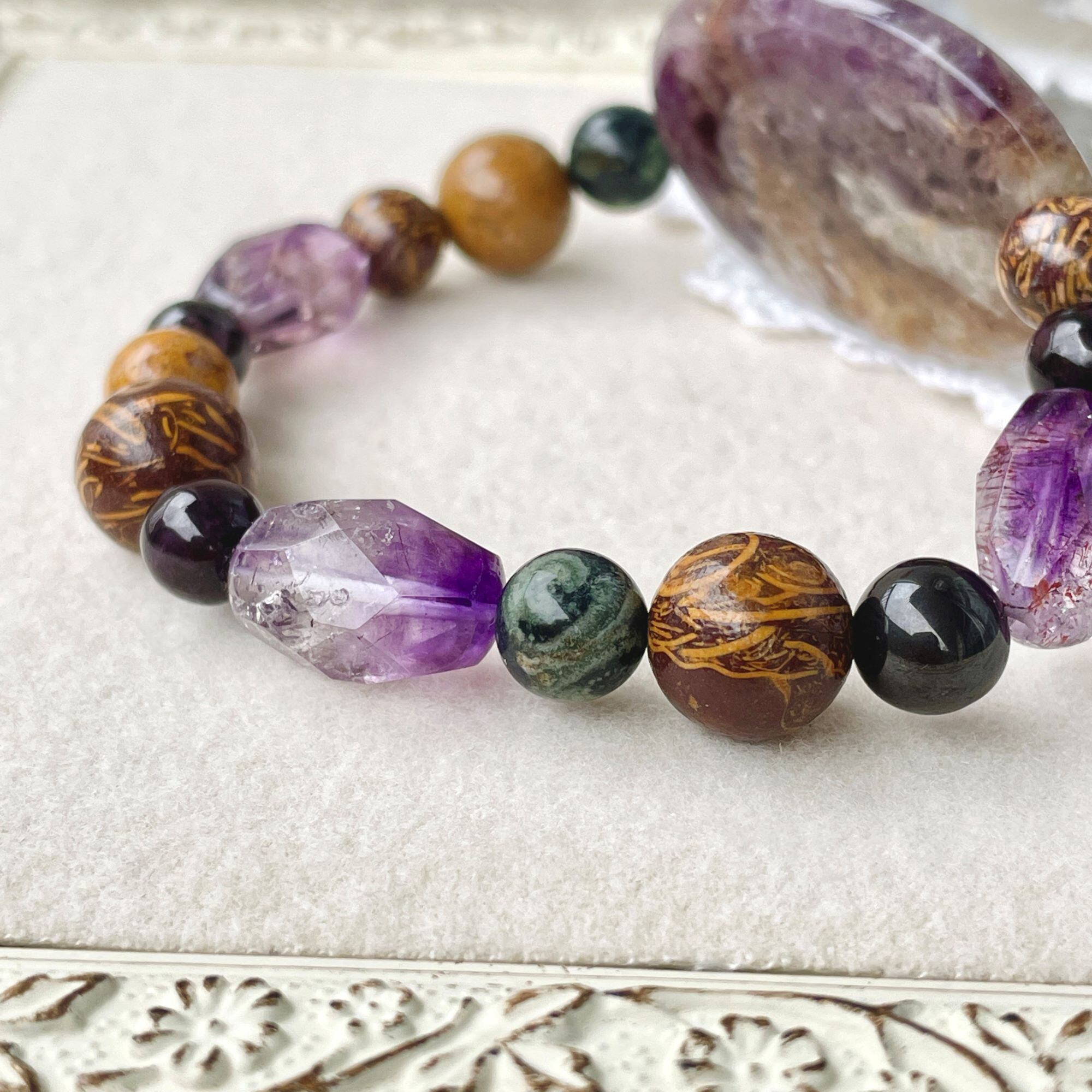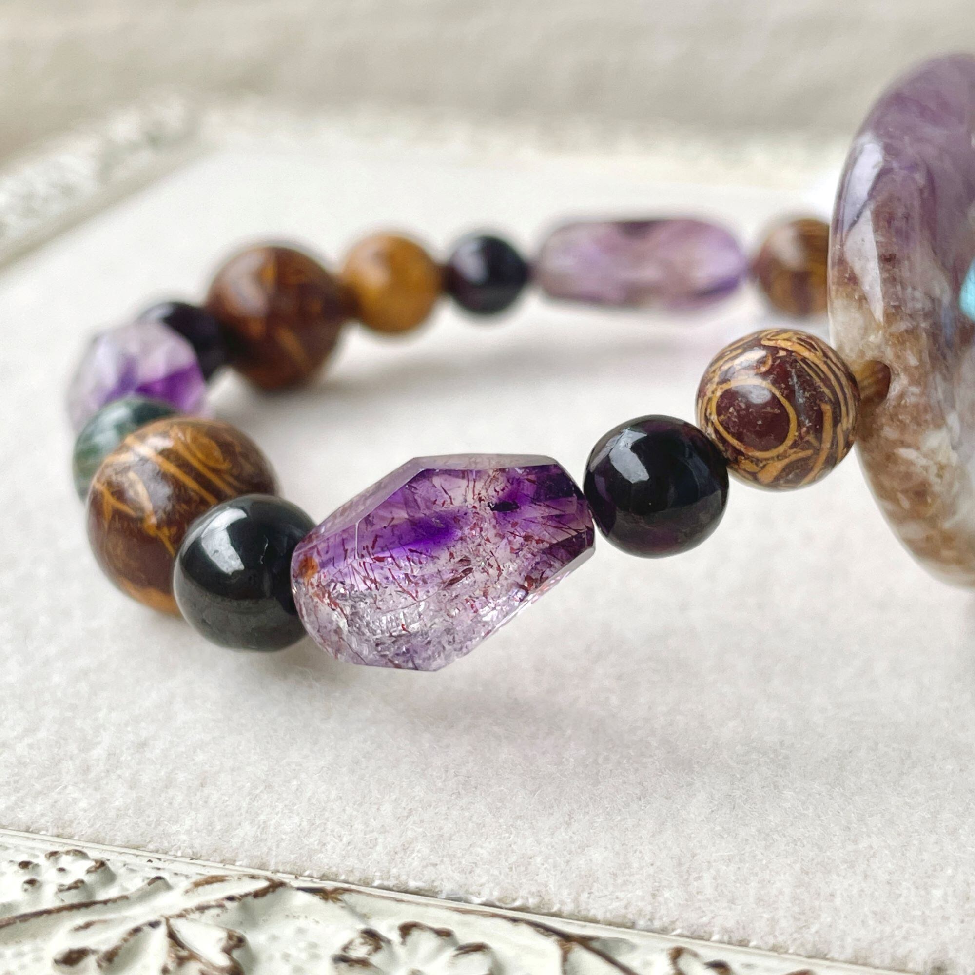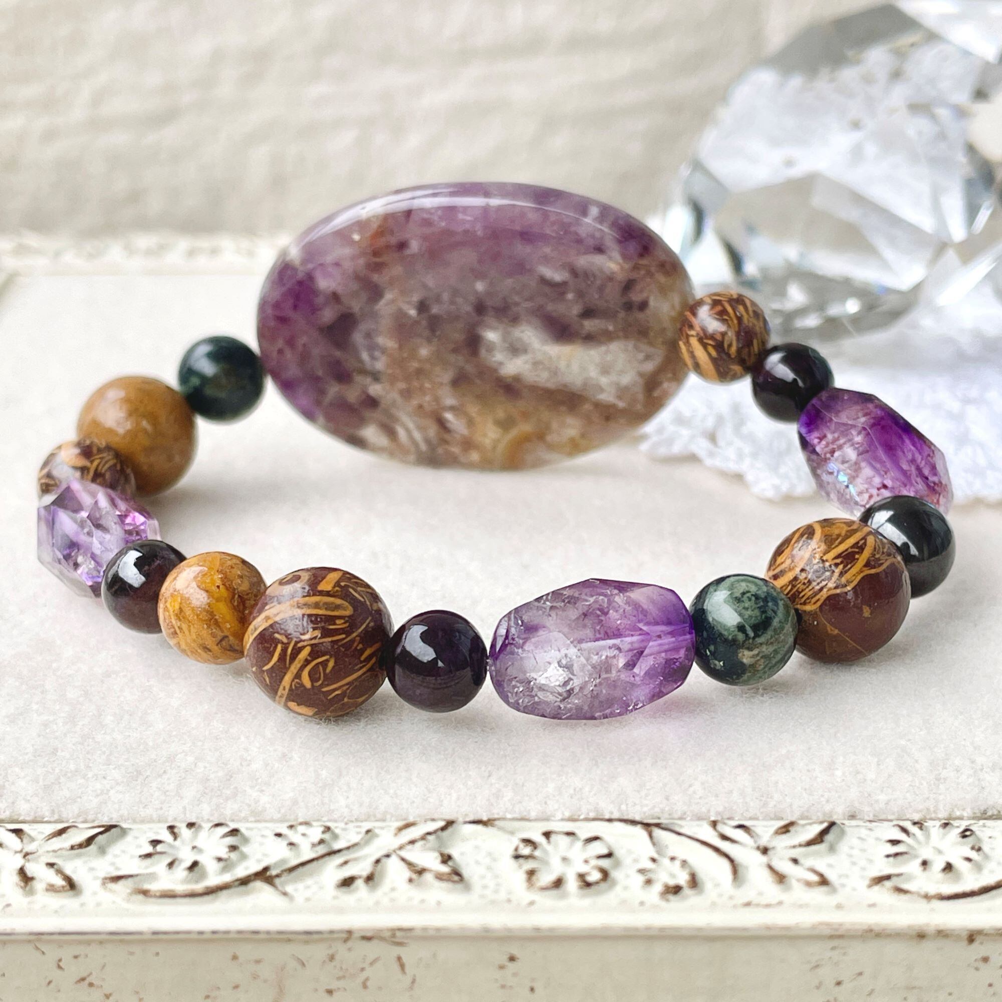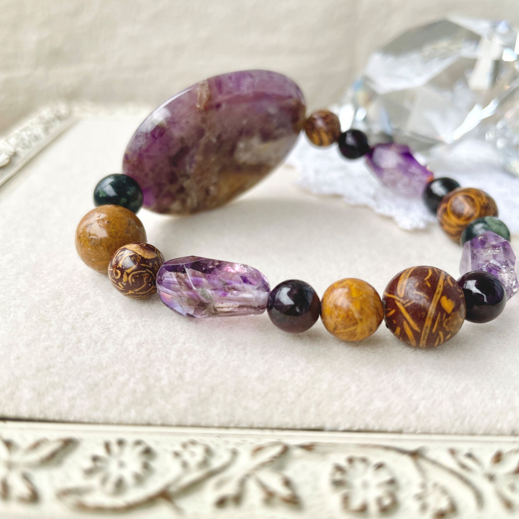 ronde アメシスト+スギライト+エレファントスキンジャスパーのブレスレット ams-b-2401-02