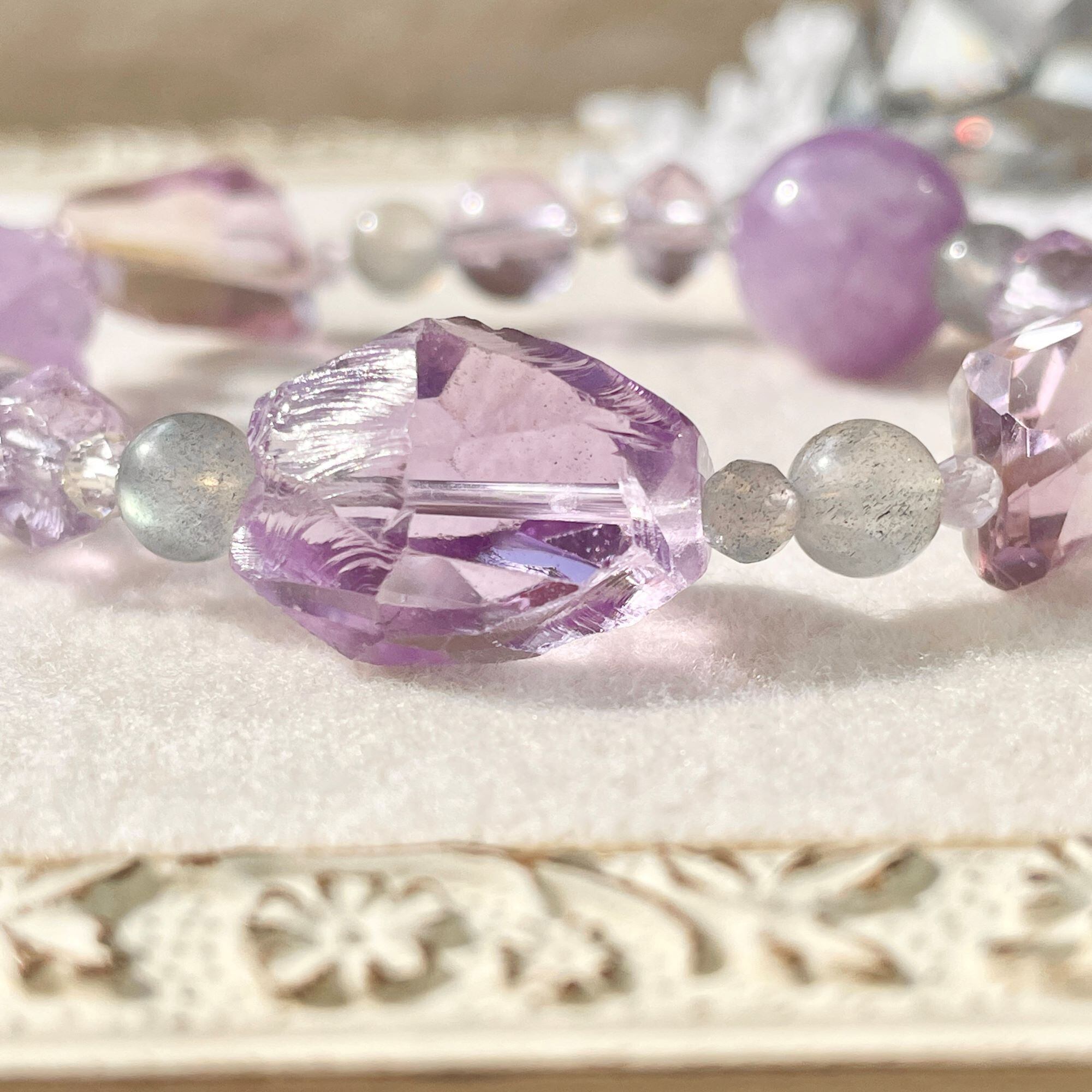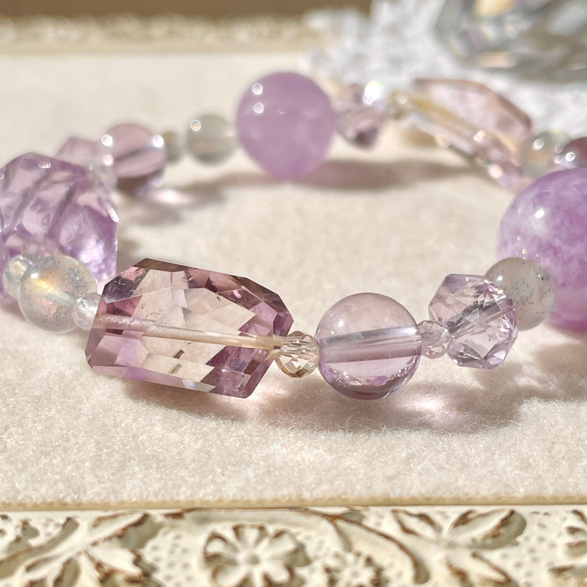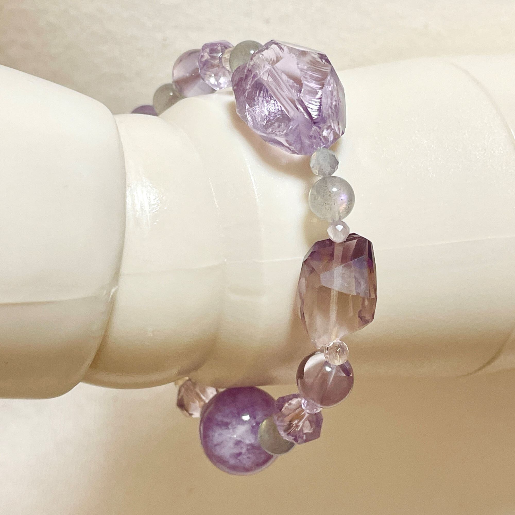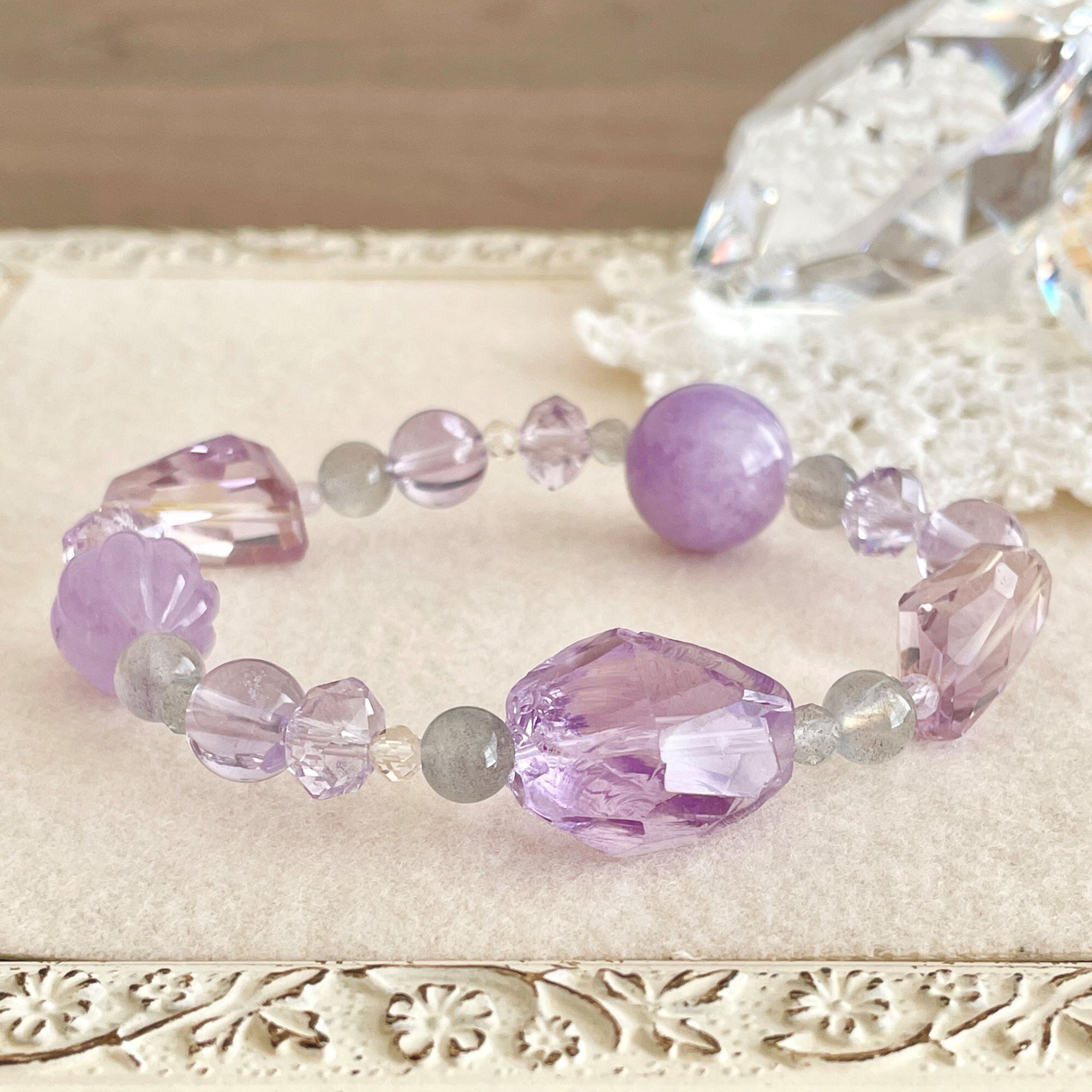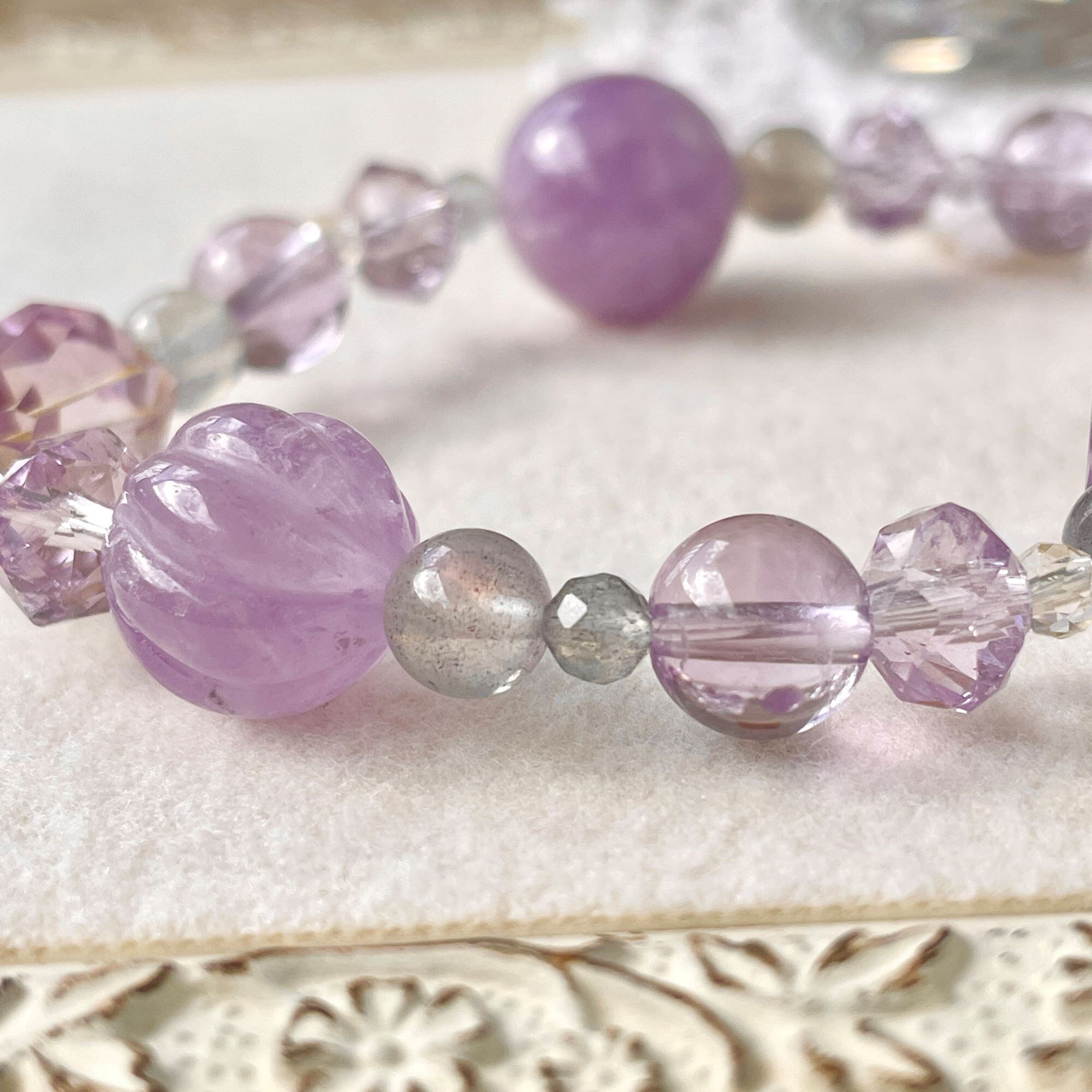 優しい色合いのアメシストをいろんなバリエーションで楽しめるブレスレットです。