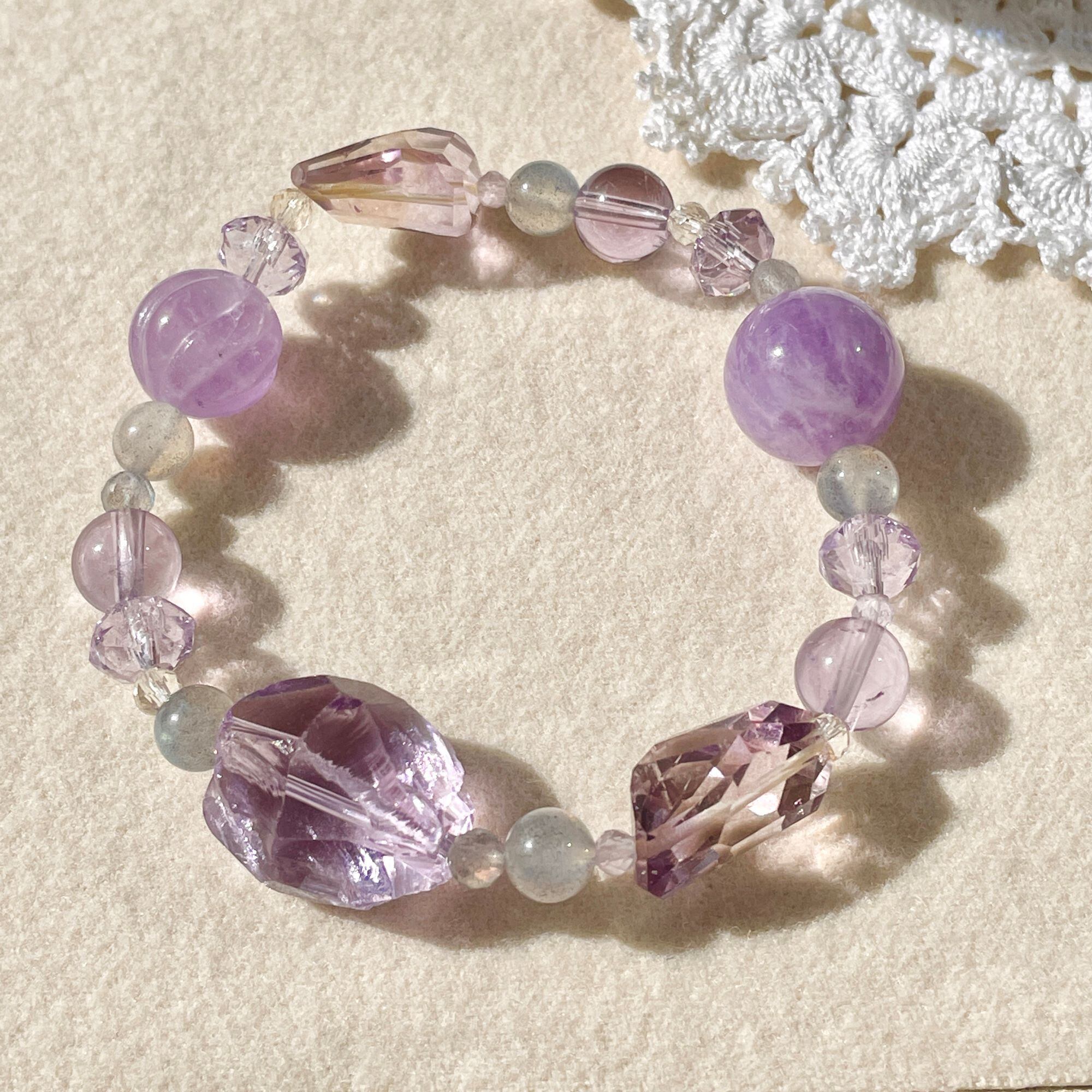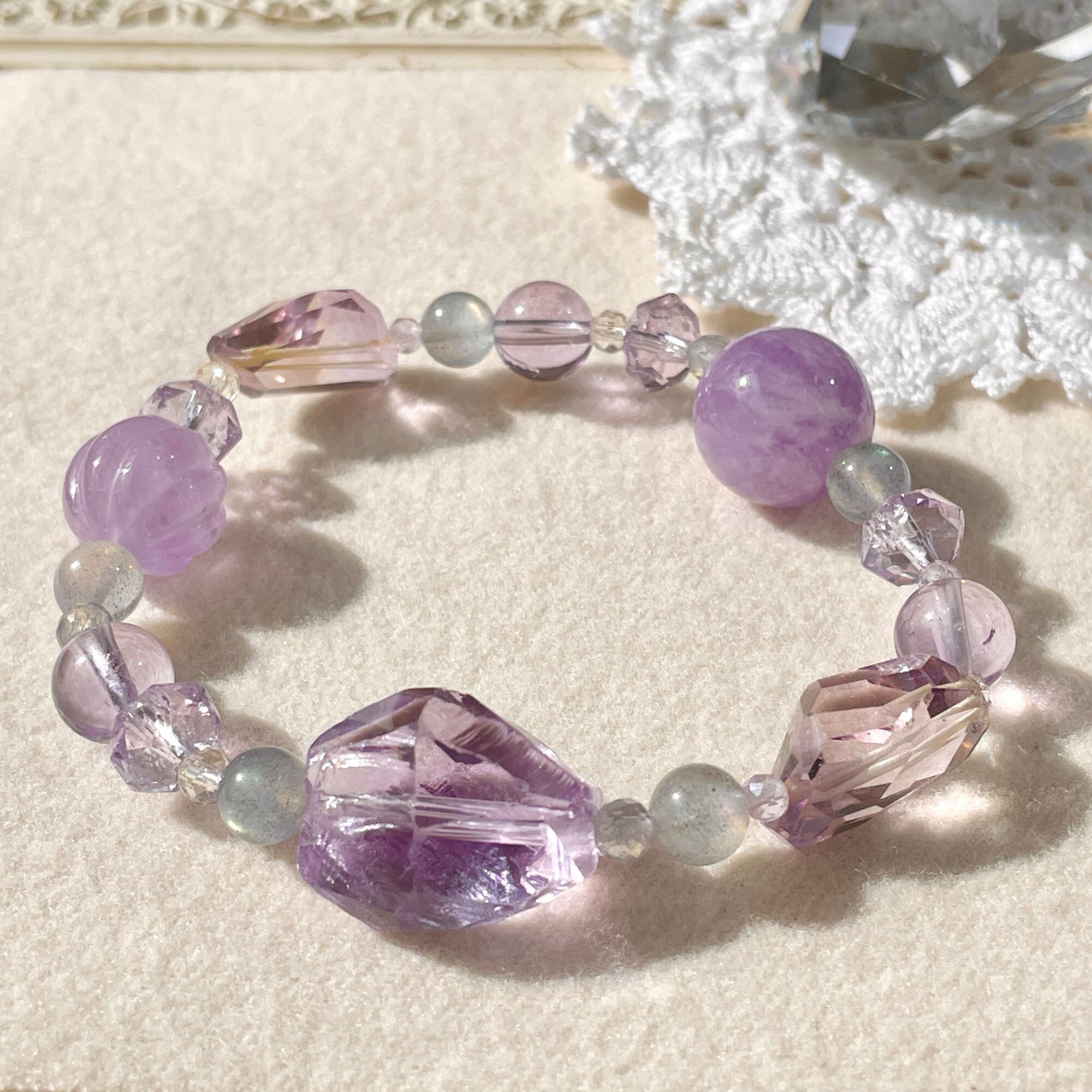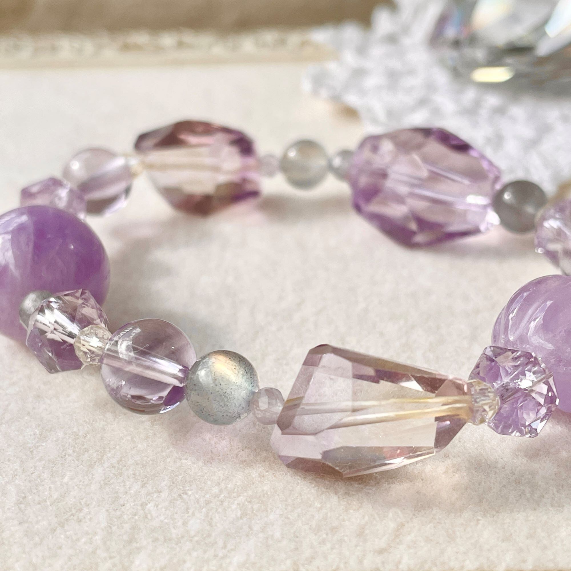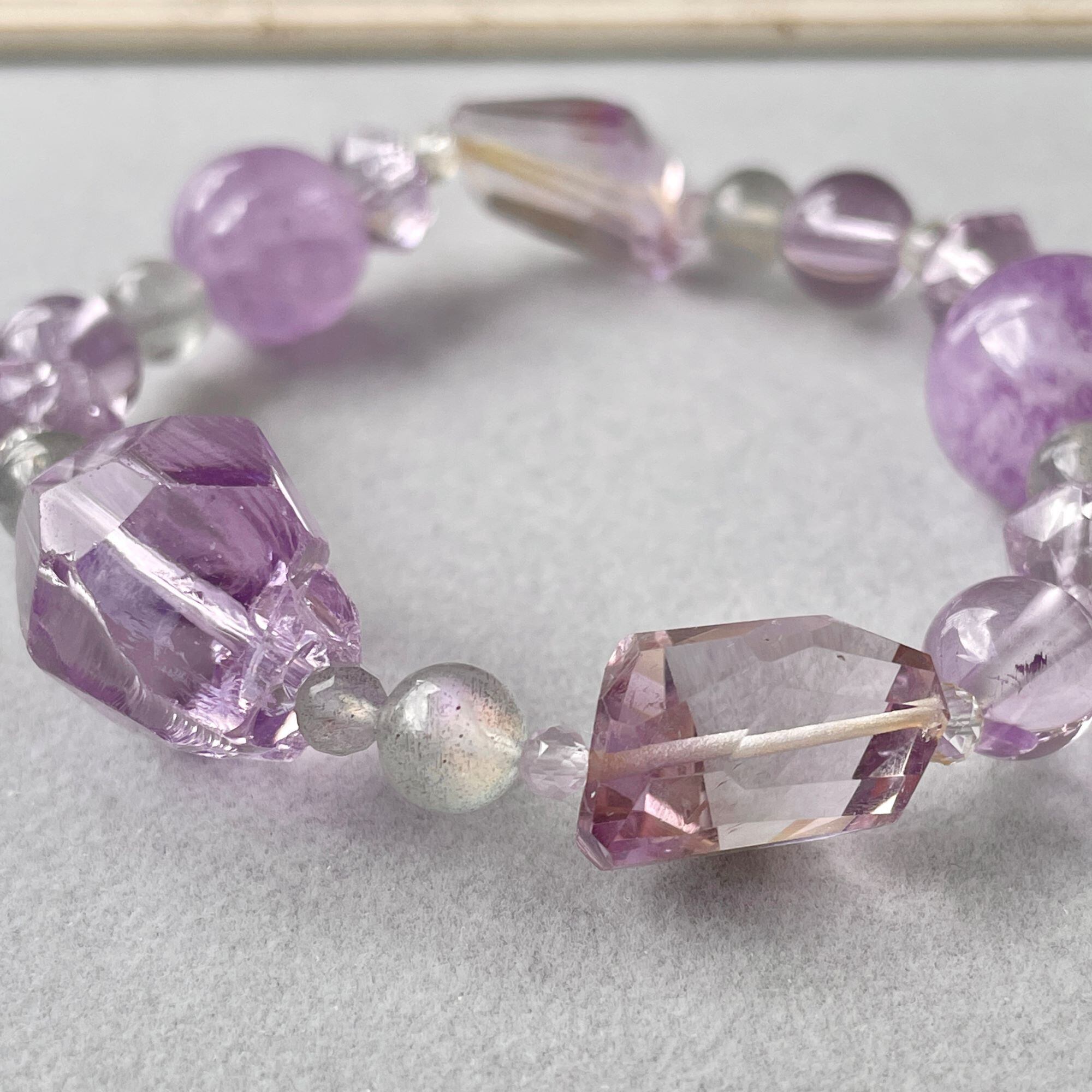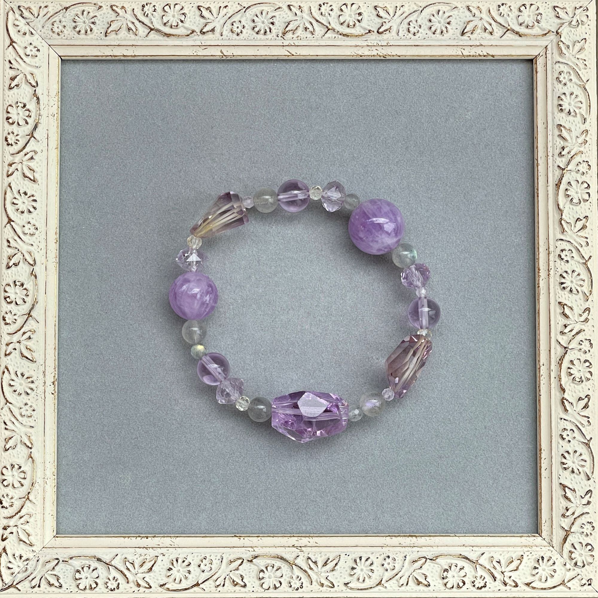 優しい色合いのアメシストをいろんなバリエーションで楽しめるブレスレットです。