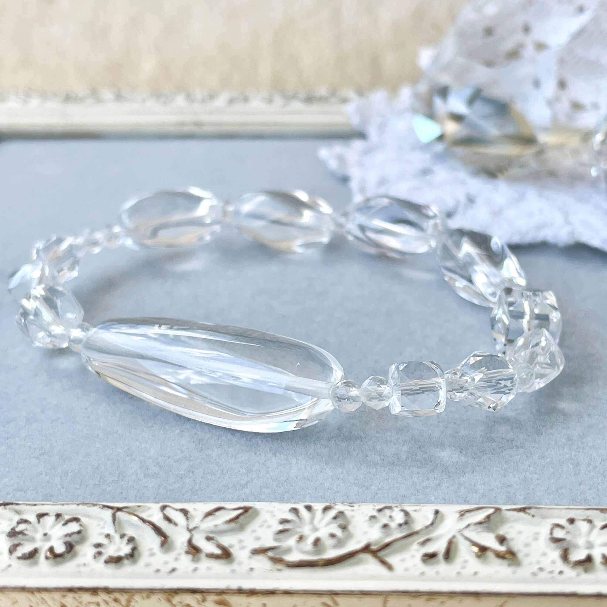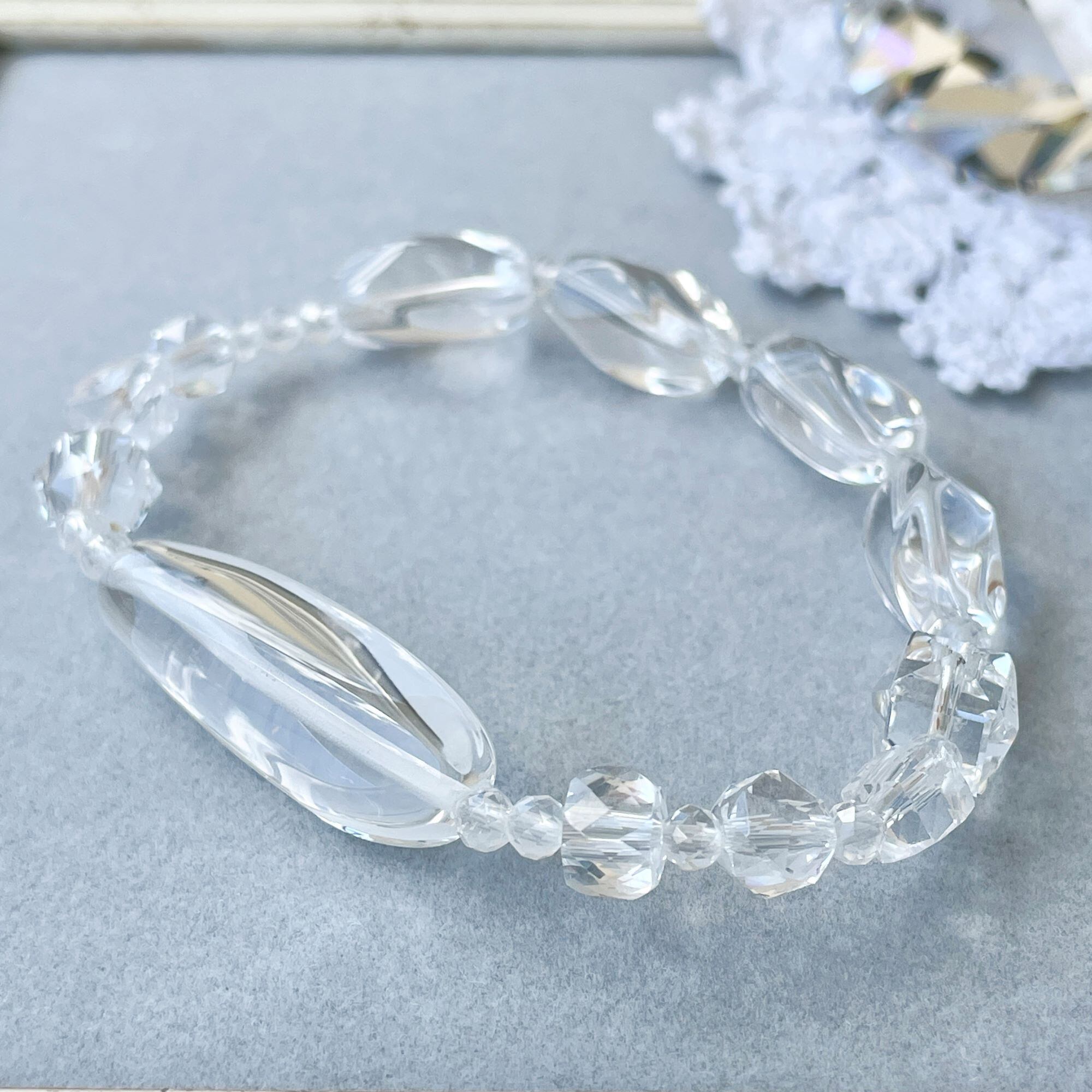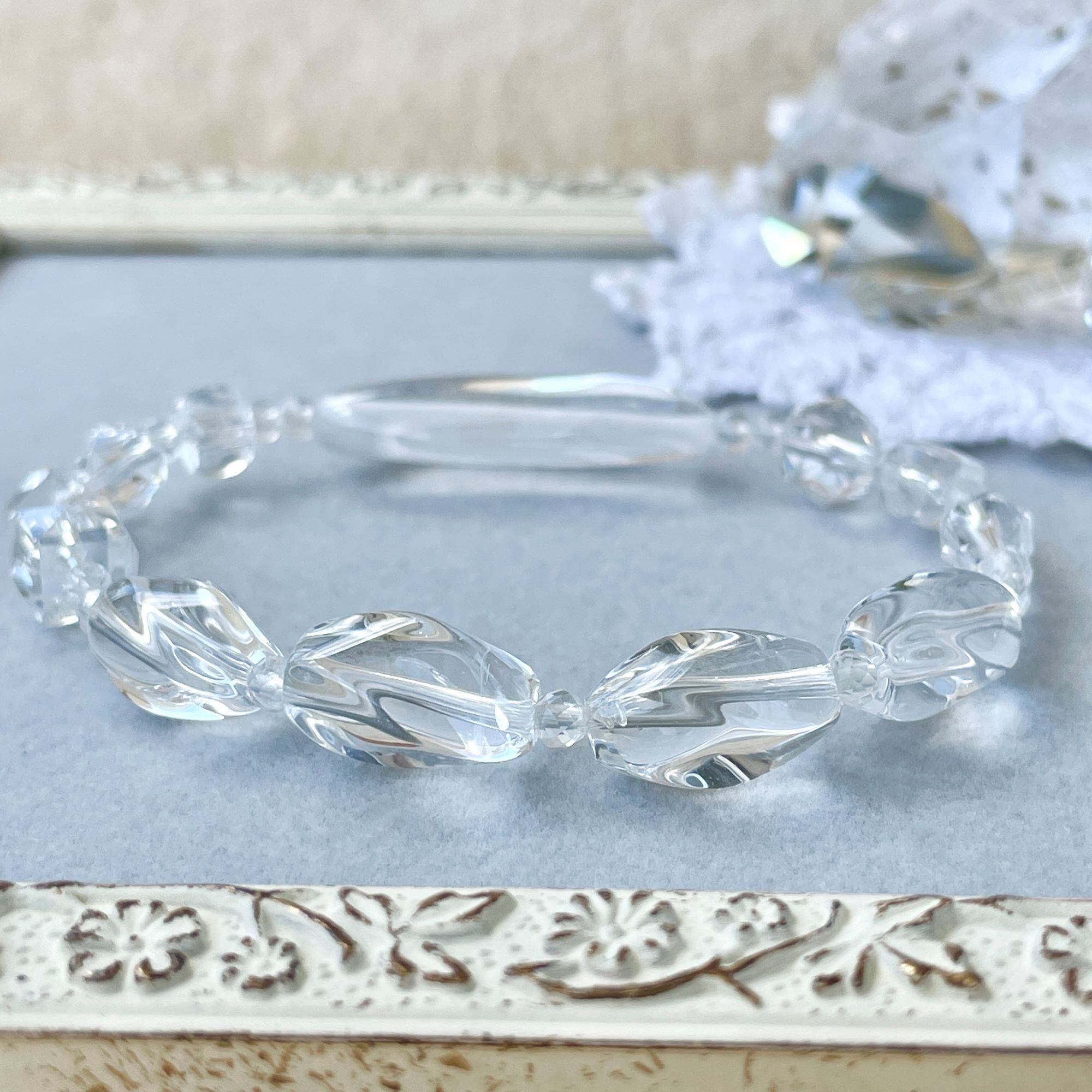 水晶はクセがなく浄化作用が強力な石で、カットや内包物、コーティングによってその特性が変わると言われています。他の石からの影響を受ける事がなく、水晶を使って他の石を浄化する事もできます。