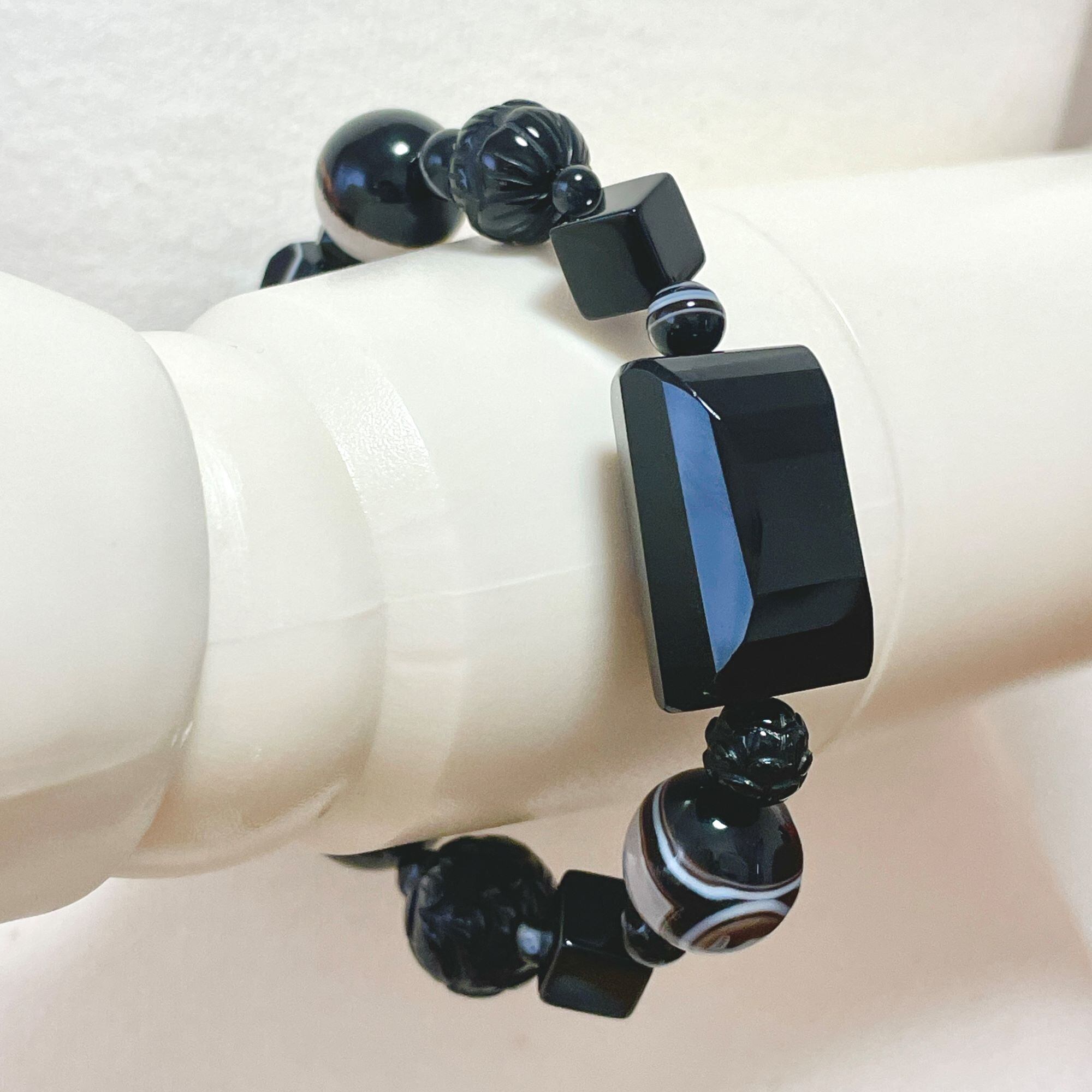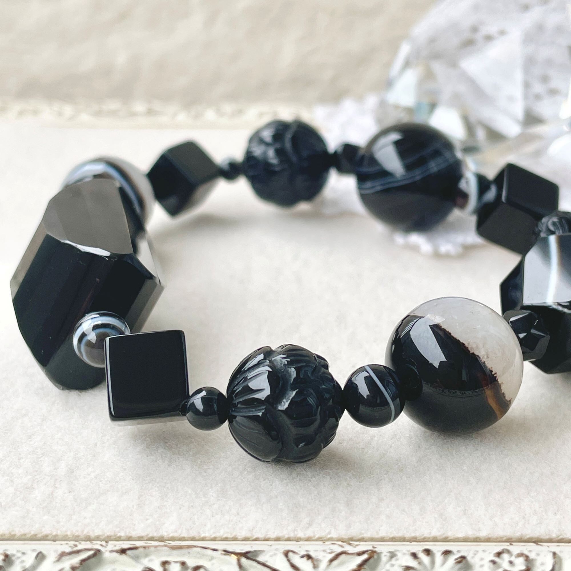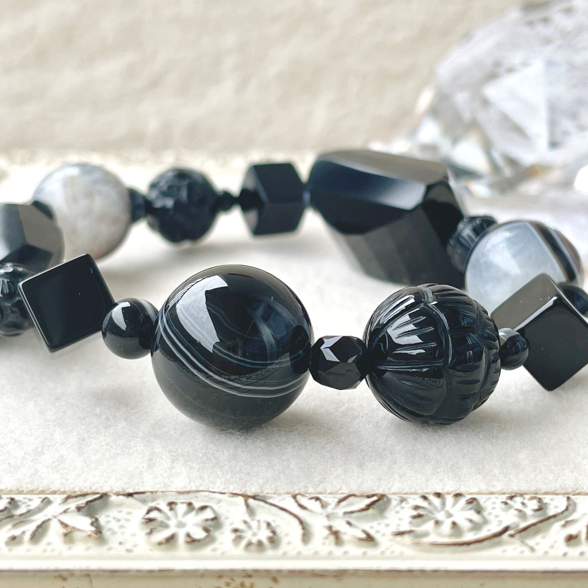 ronde オニキス+アゲートのブレスレット(ブラック) oxb-b-2406-02