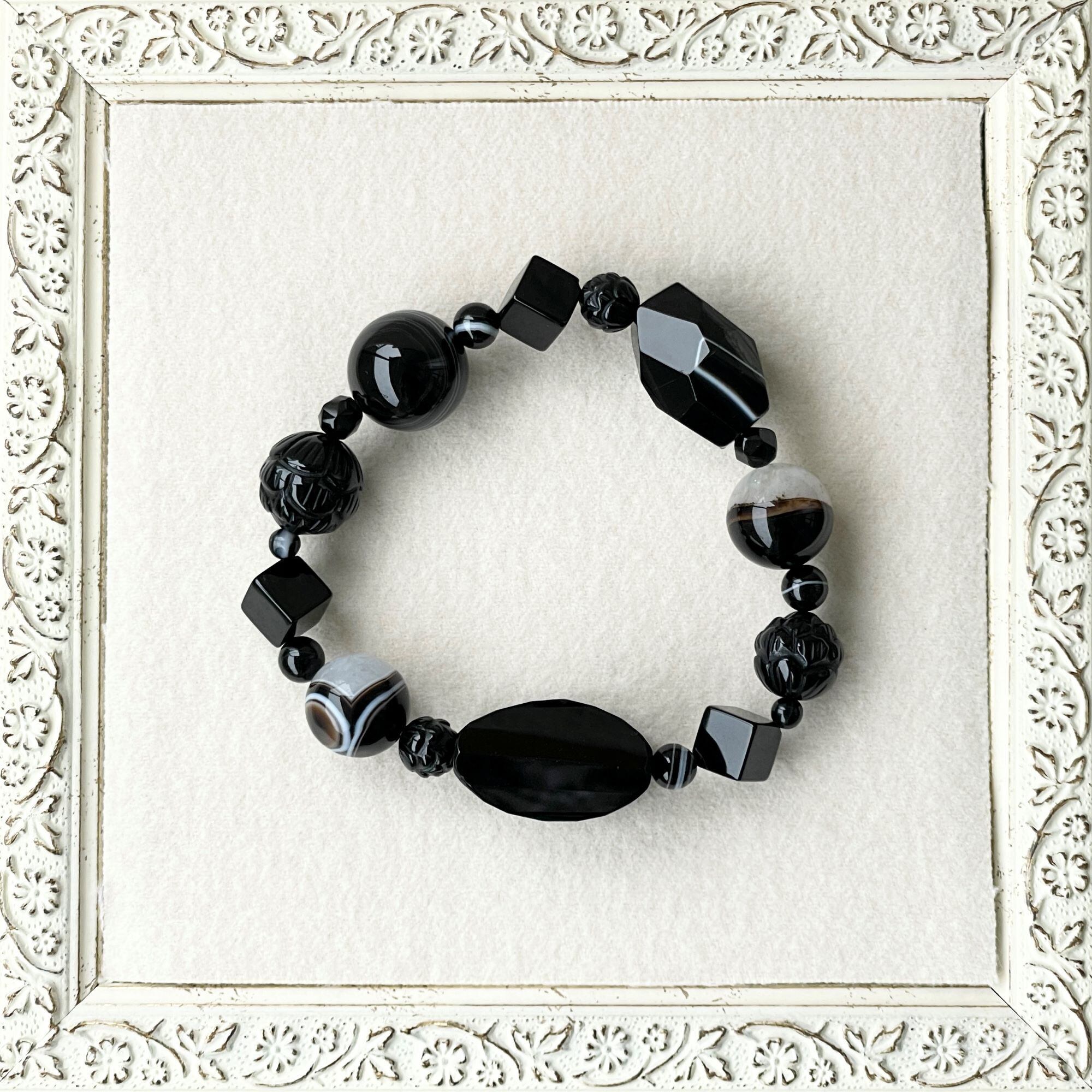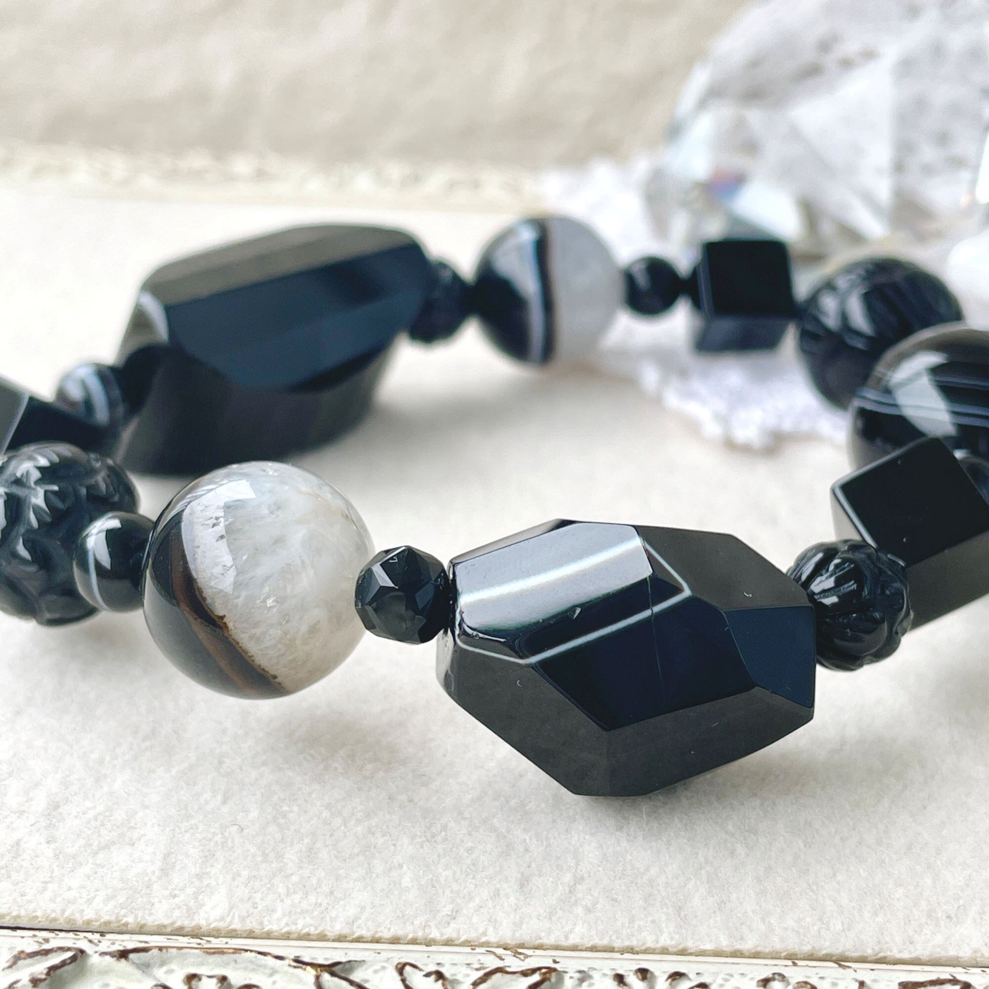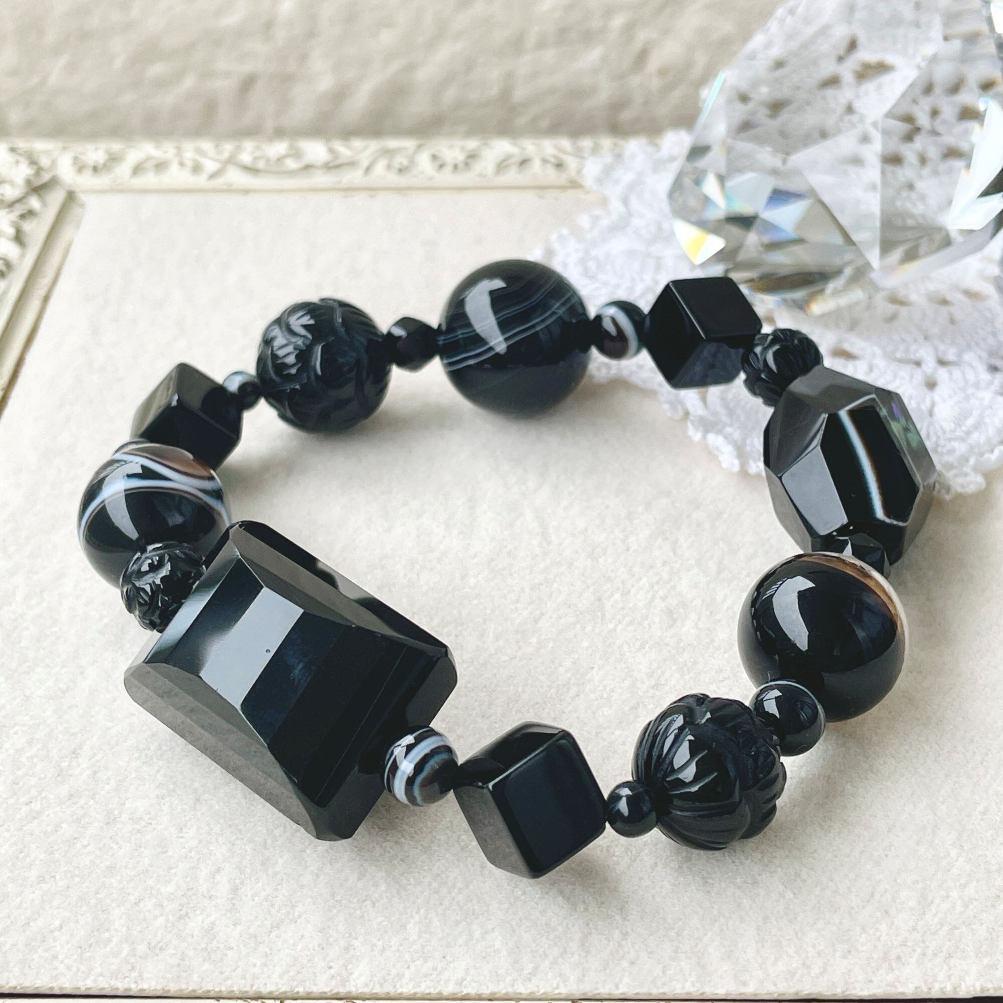 ronde オニキス+アゲートのブレスレット(ブラック) oxb-b-2406-02
