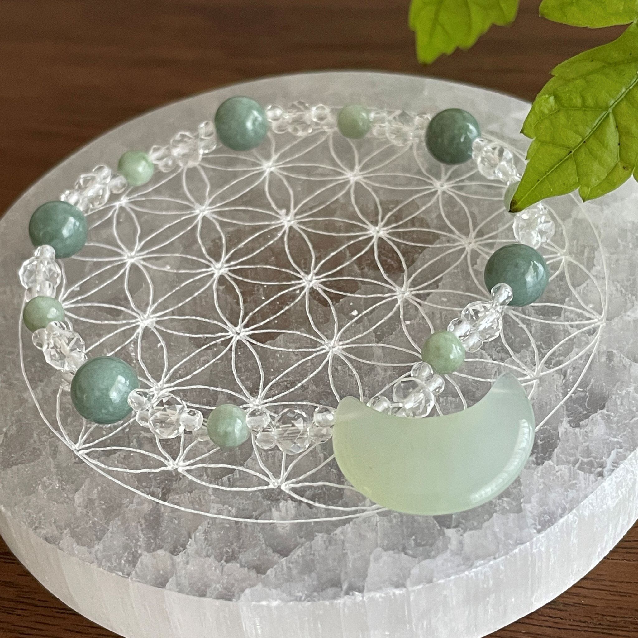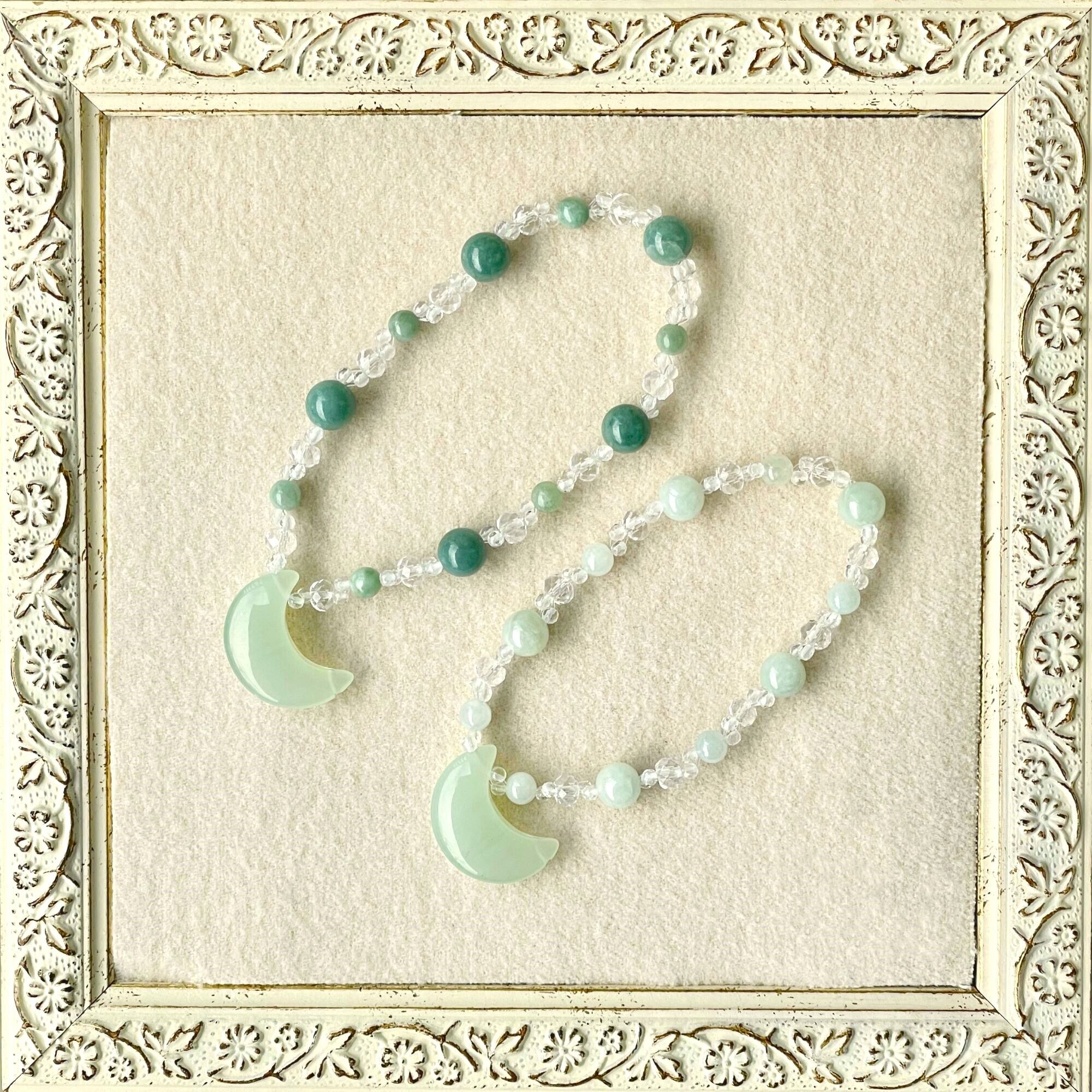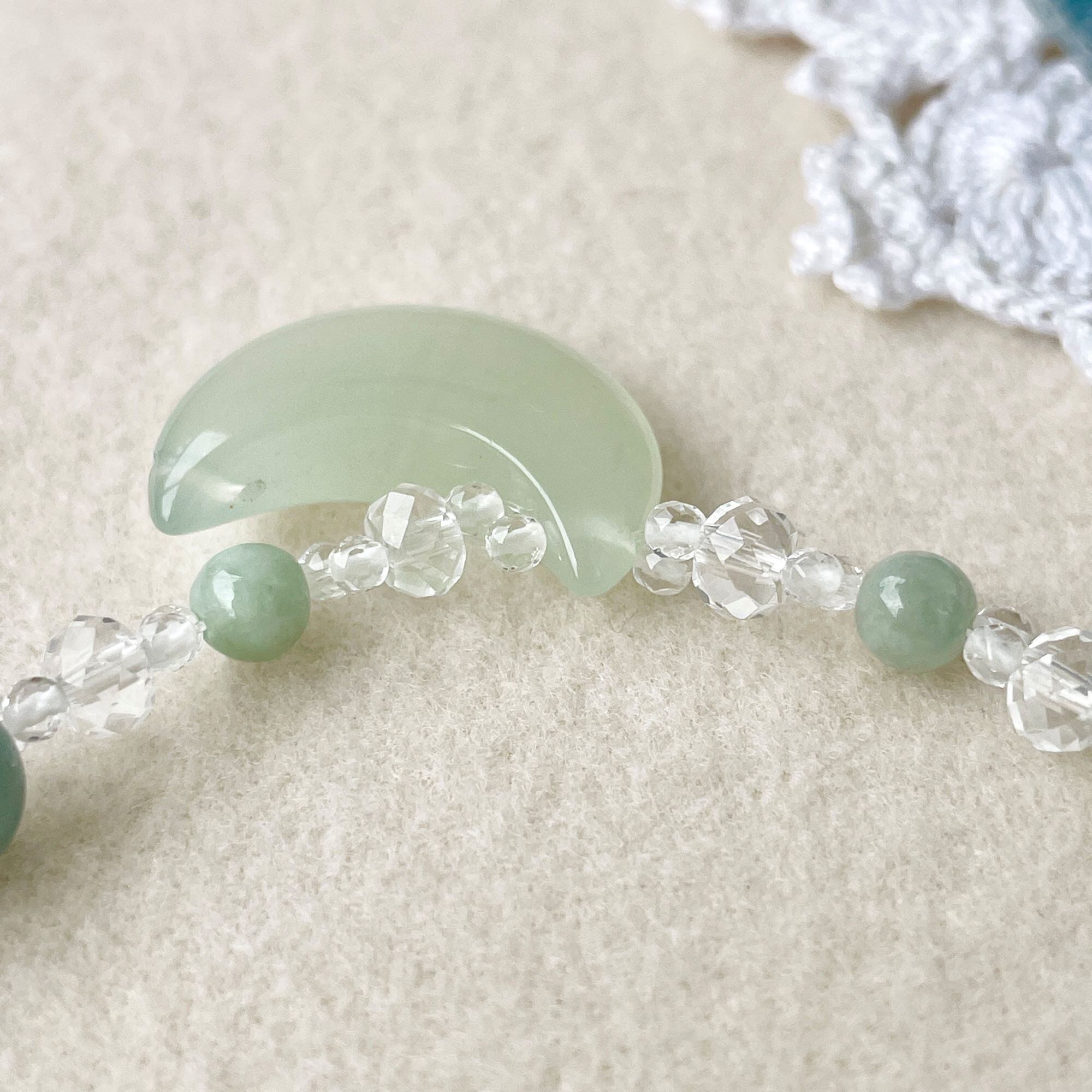 三日月型のサーペンティン(ニュージェード)をポイントに1石使いました。