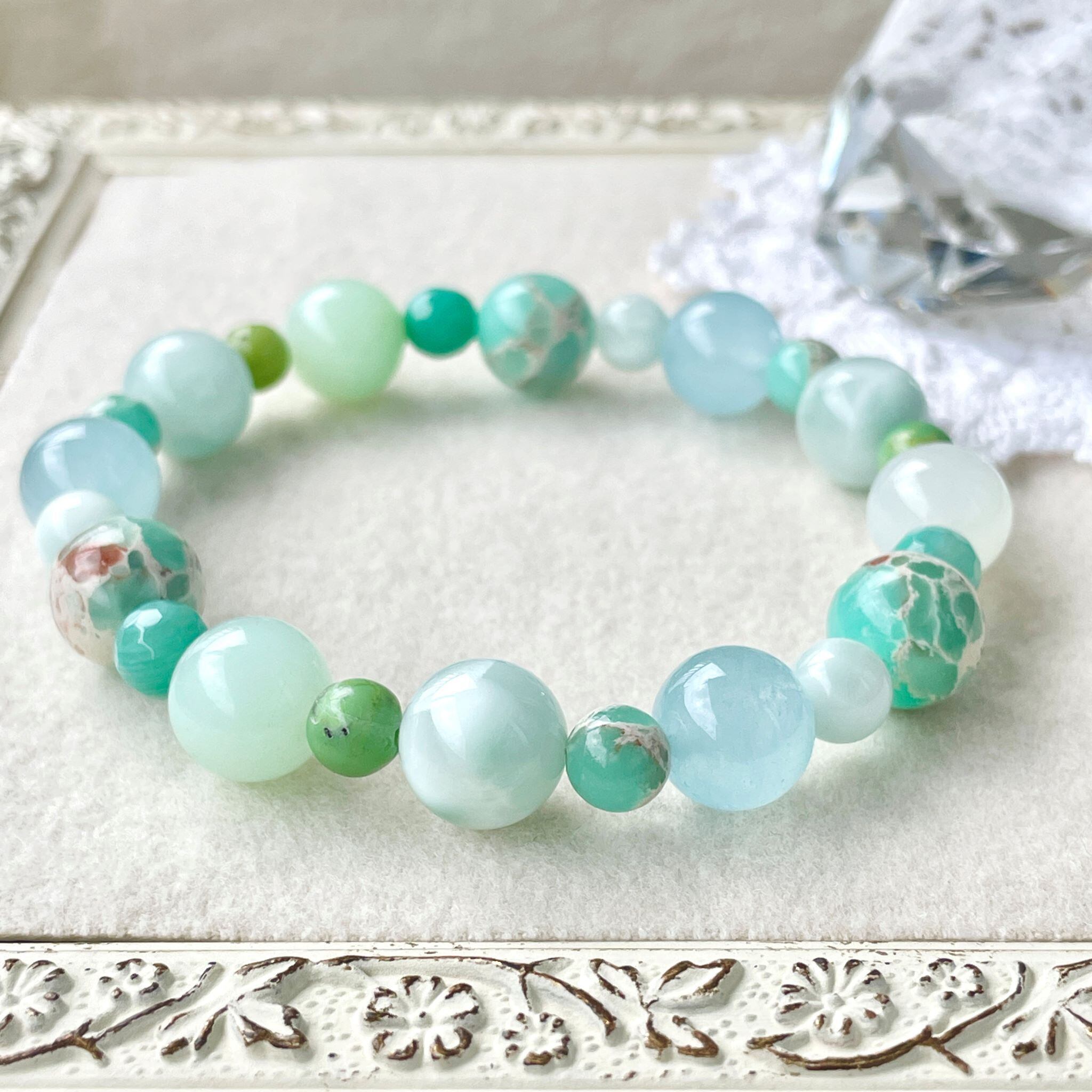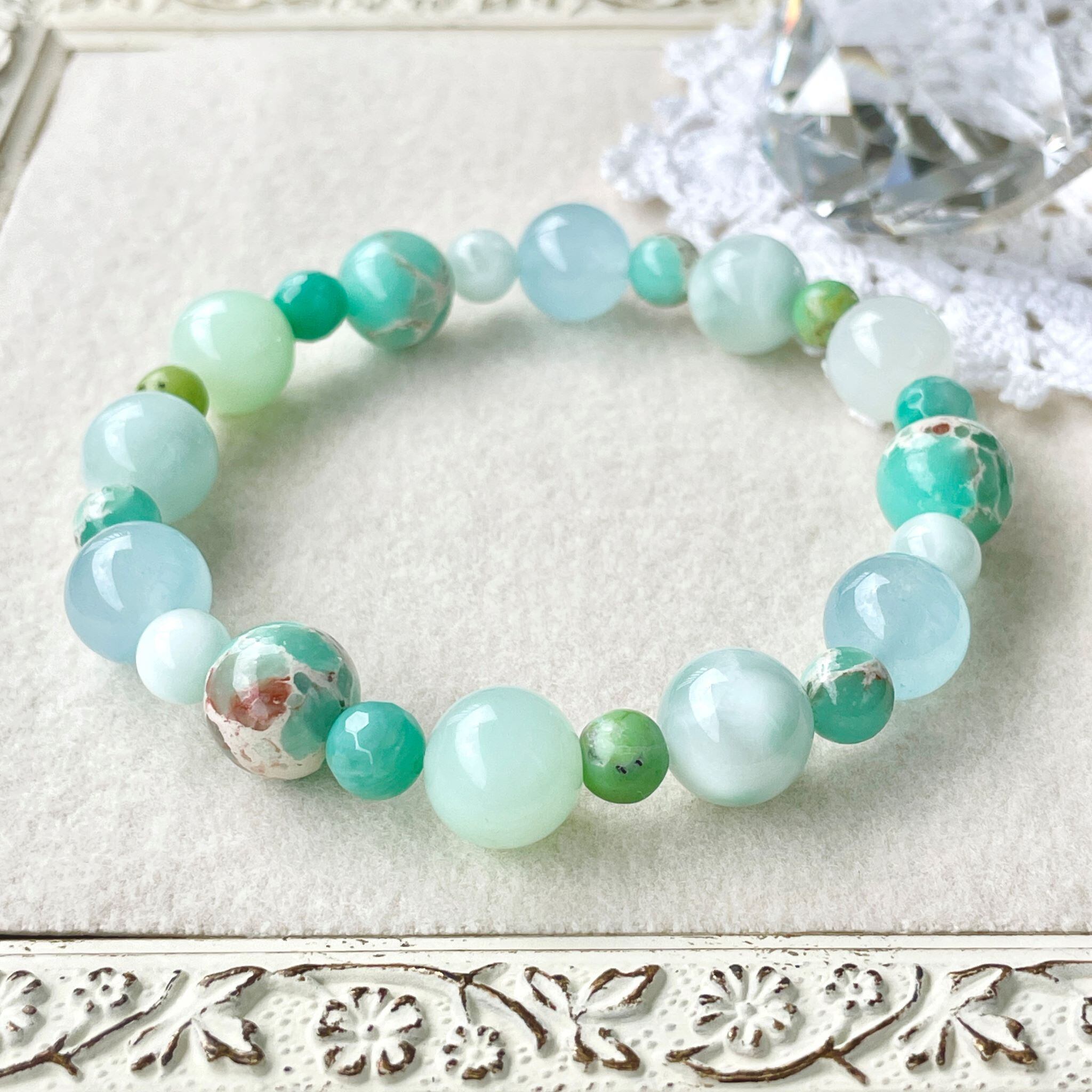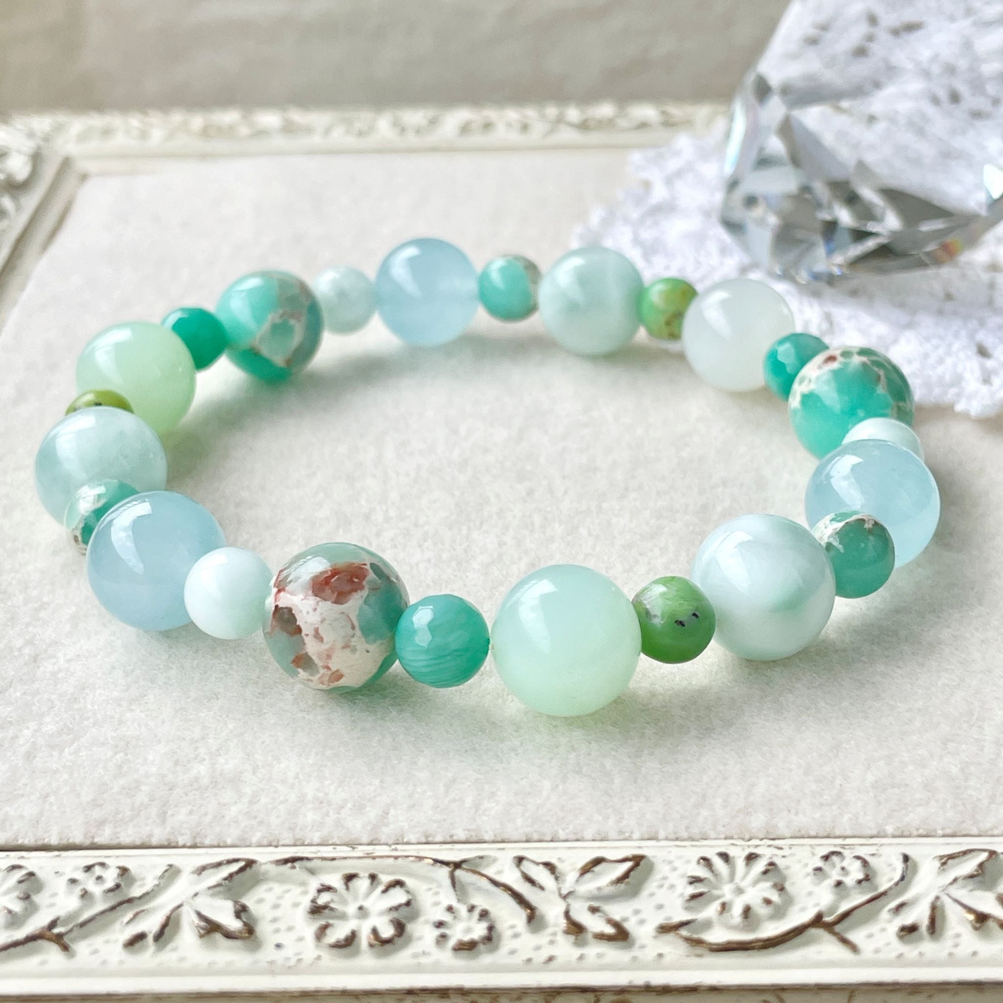 ronde カオリン+グリーンエンジェライト+クリソプレーズのブレスレット kol-b-2408-02