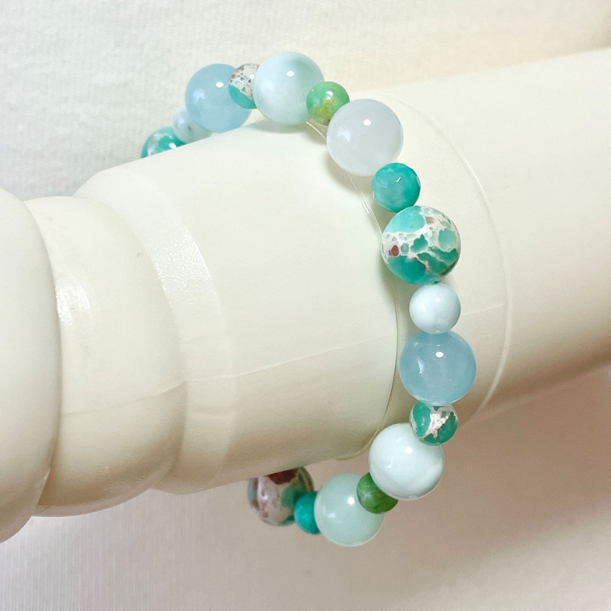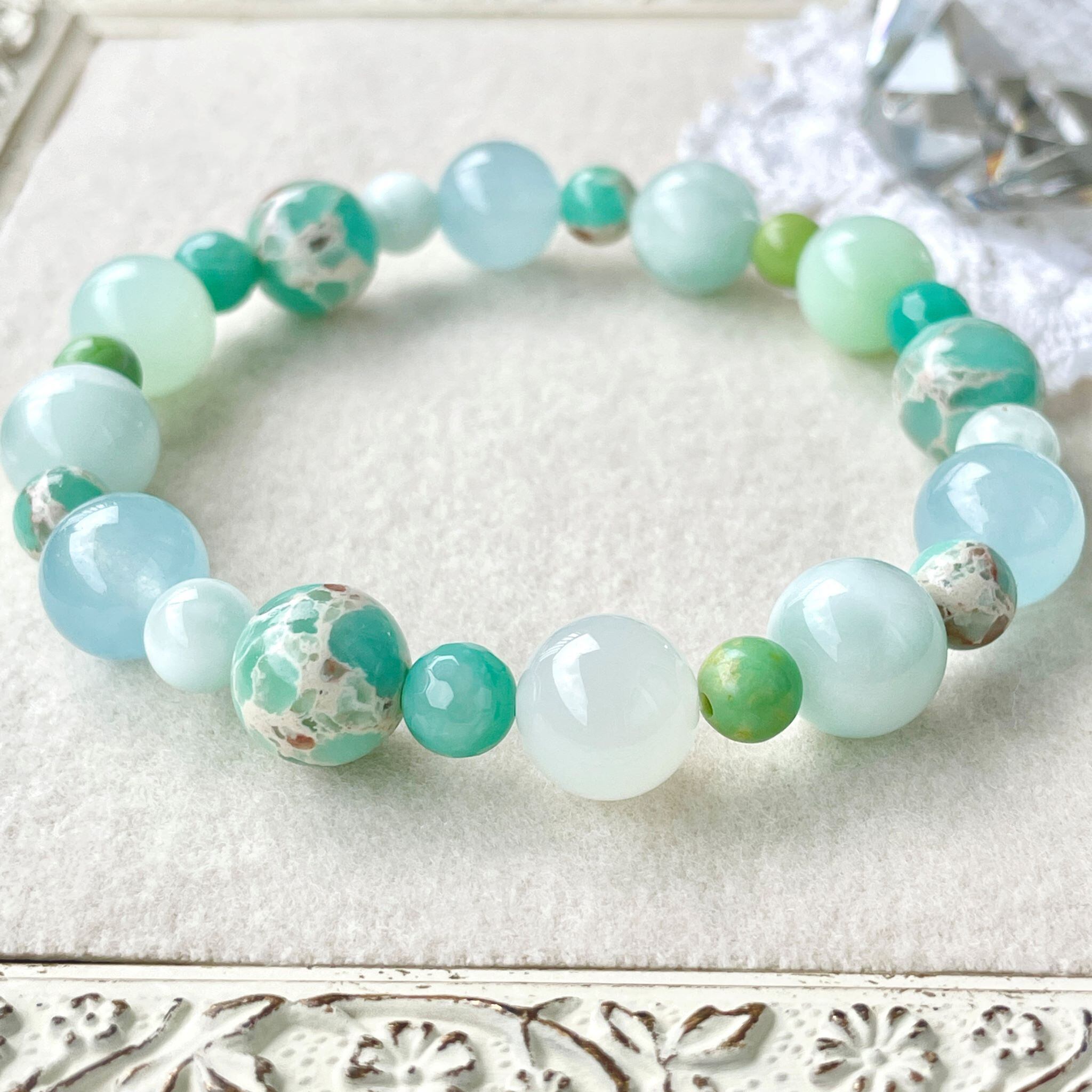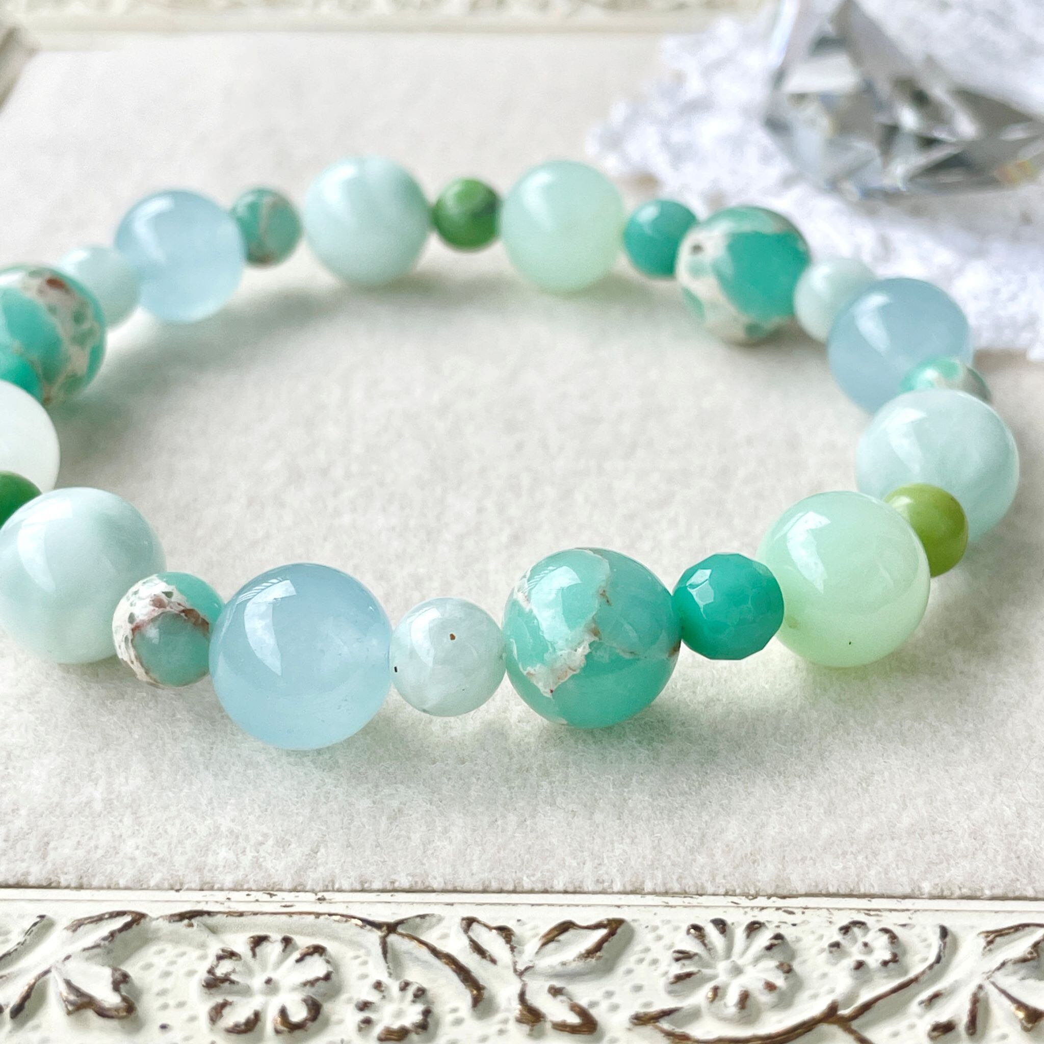 ronde カオリン+グリーンエンジェライト+クリソプレーズのブレスレット kol-b-2408-02