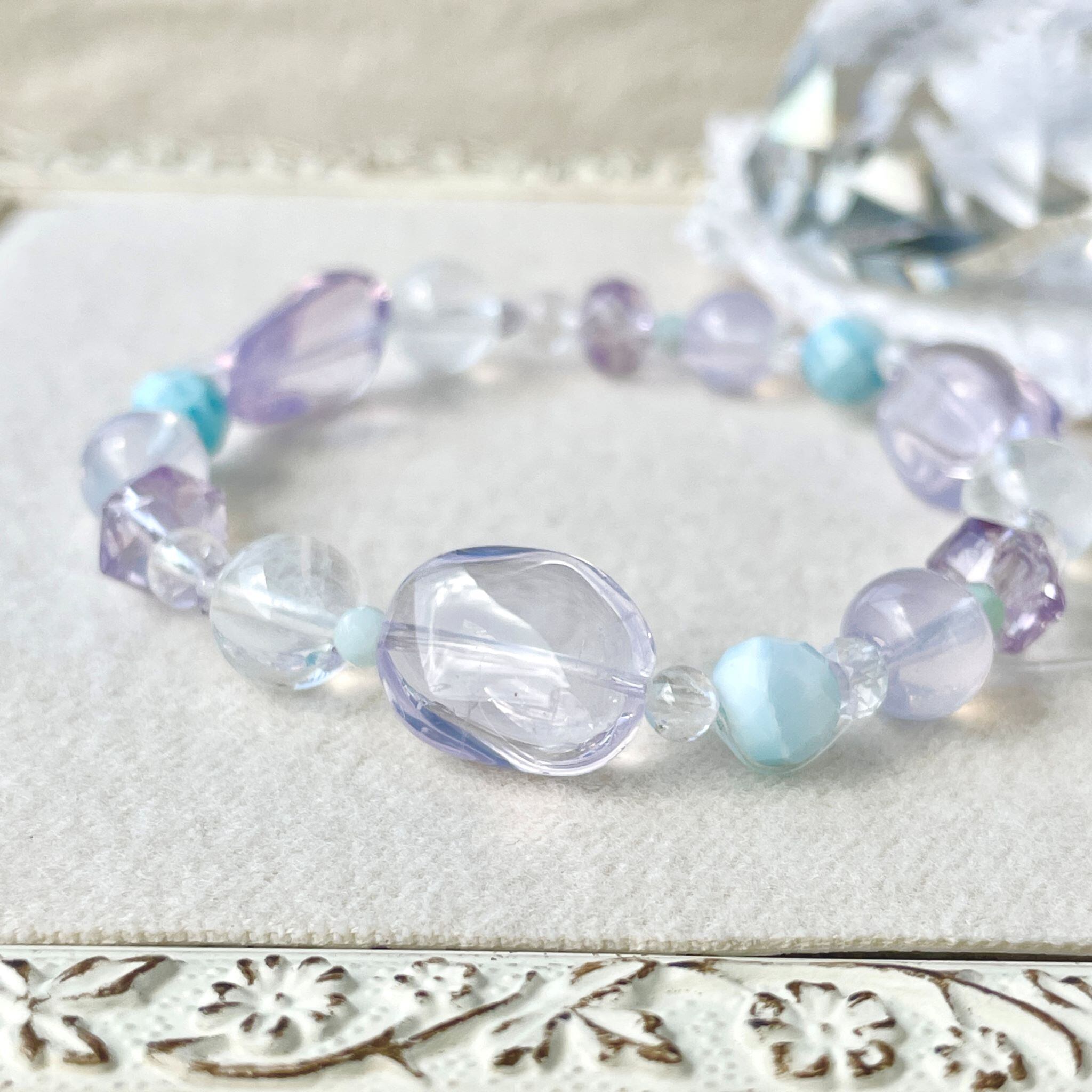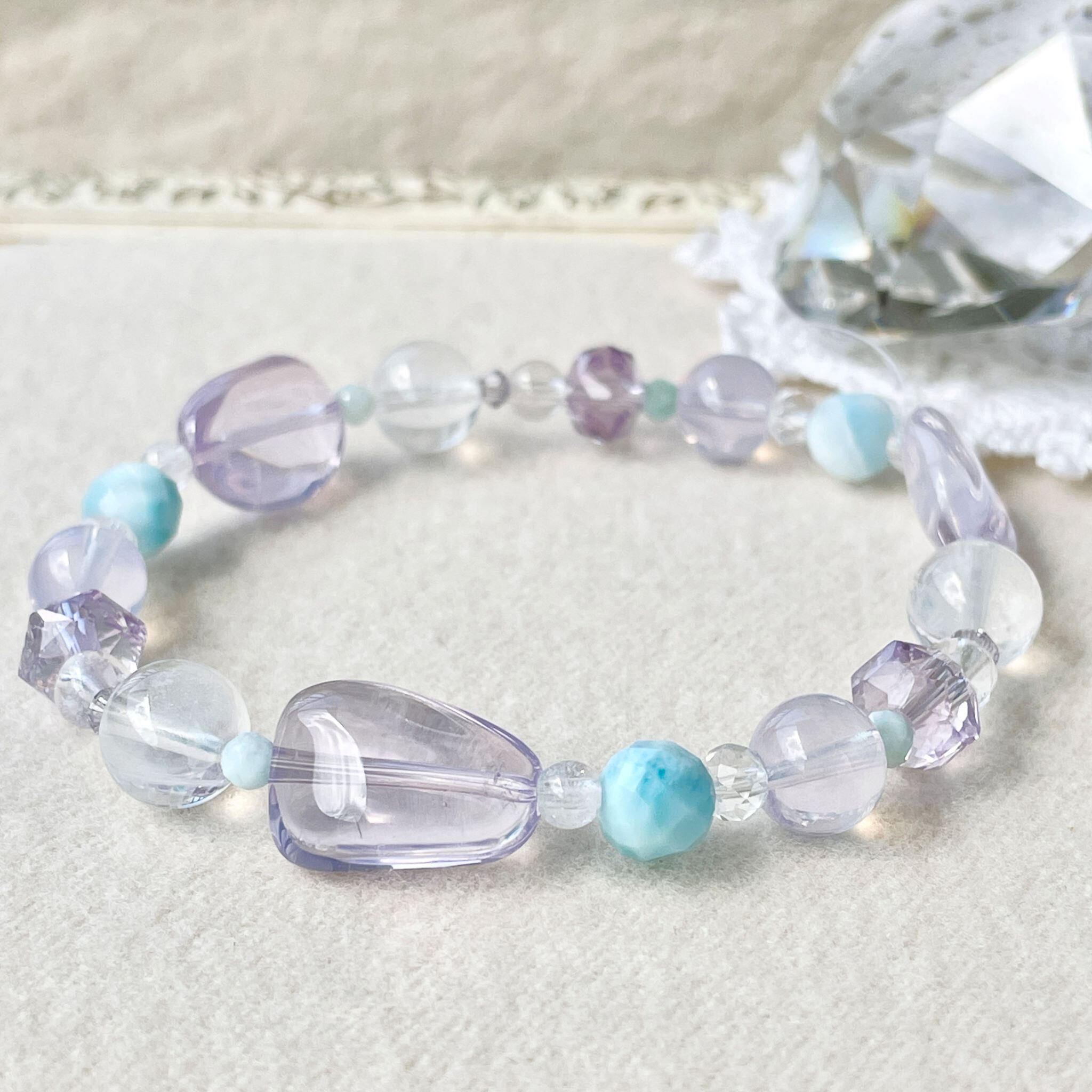 【ご注文品】ronde スコロライト+ラリマー+エンジェルラダークォーツのブレスレット scr-b-2408-09