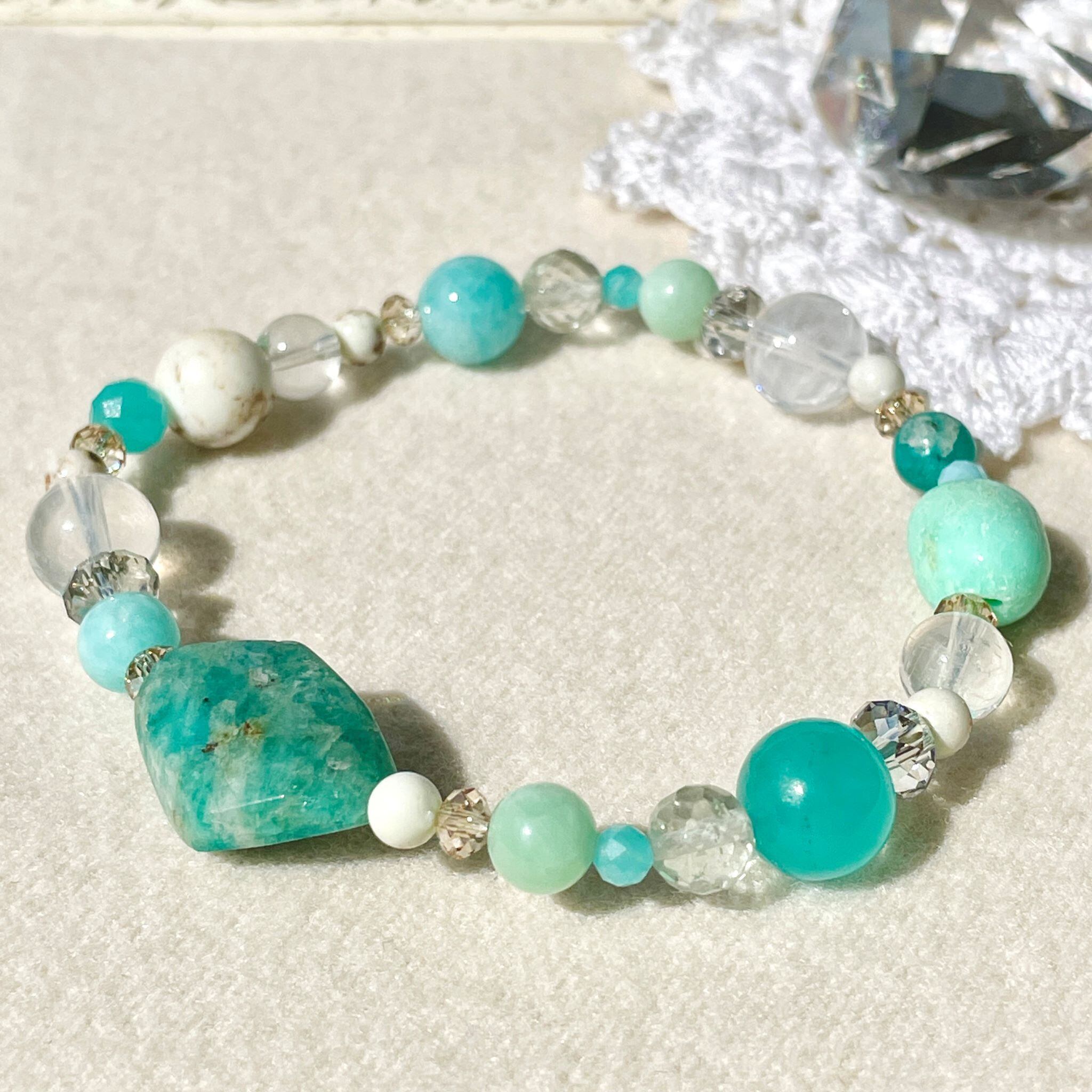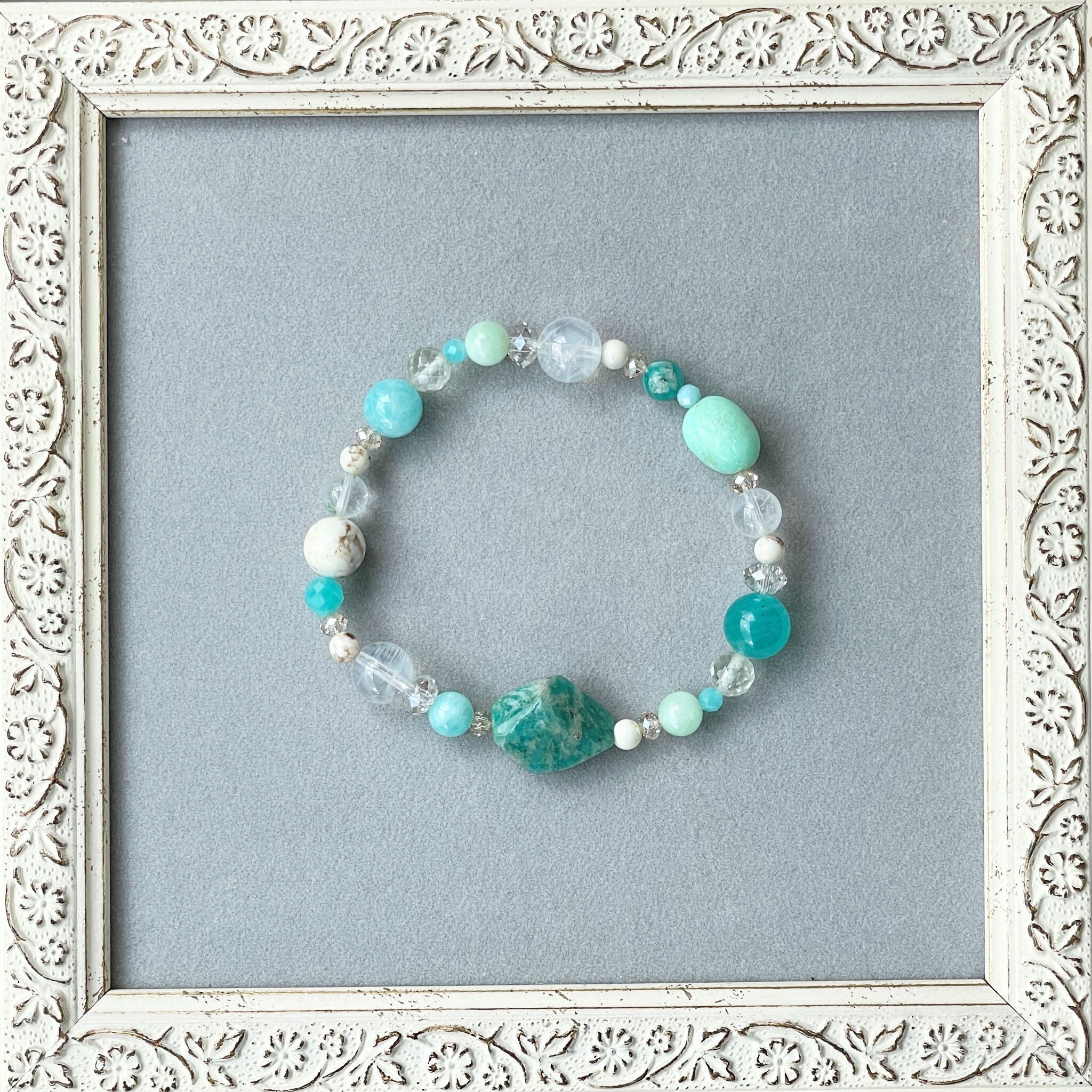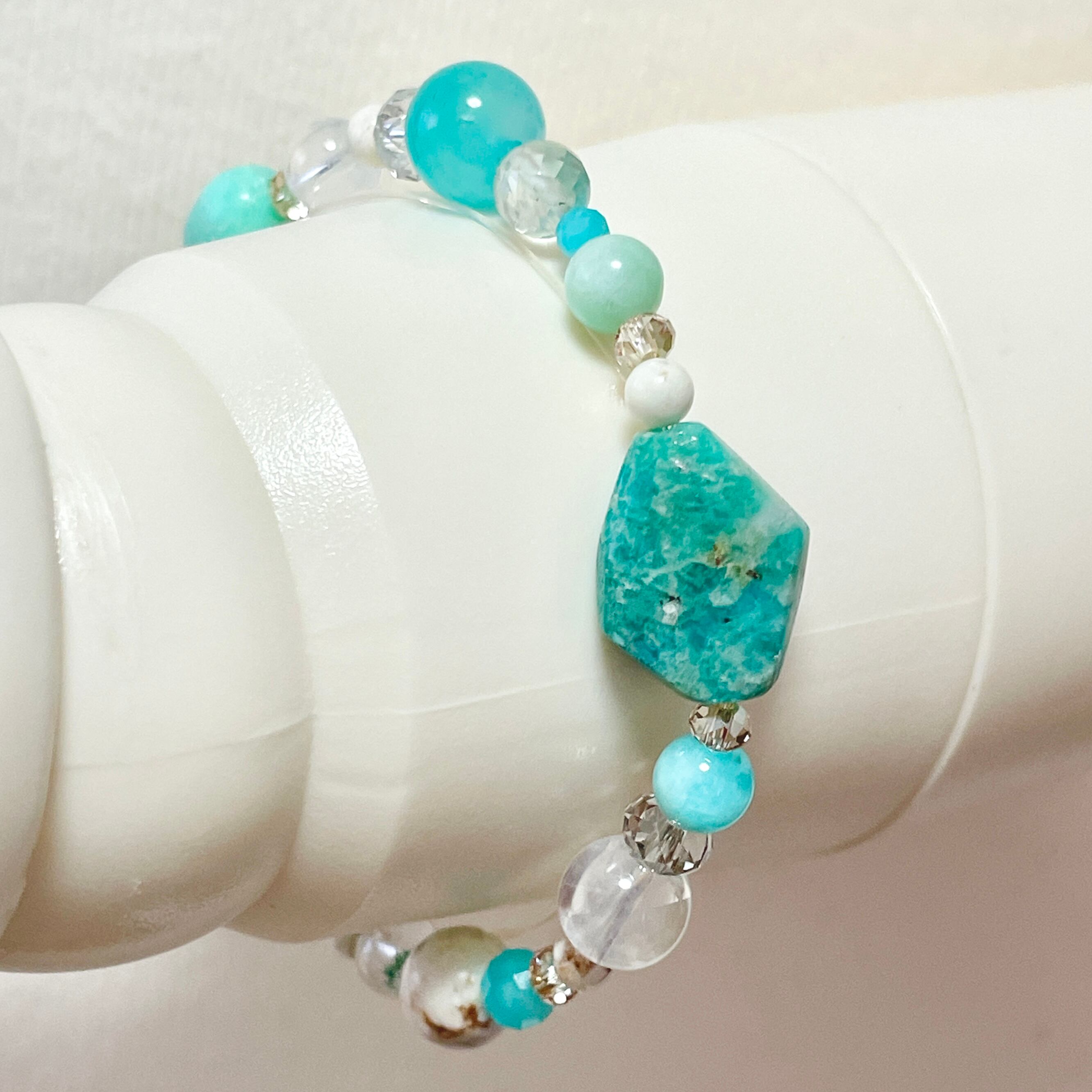 3種のアマゾナイトを中心とした多種の石たちで構成したブレスレットです。