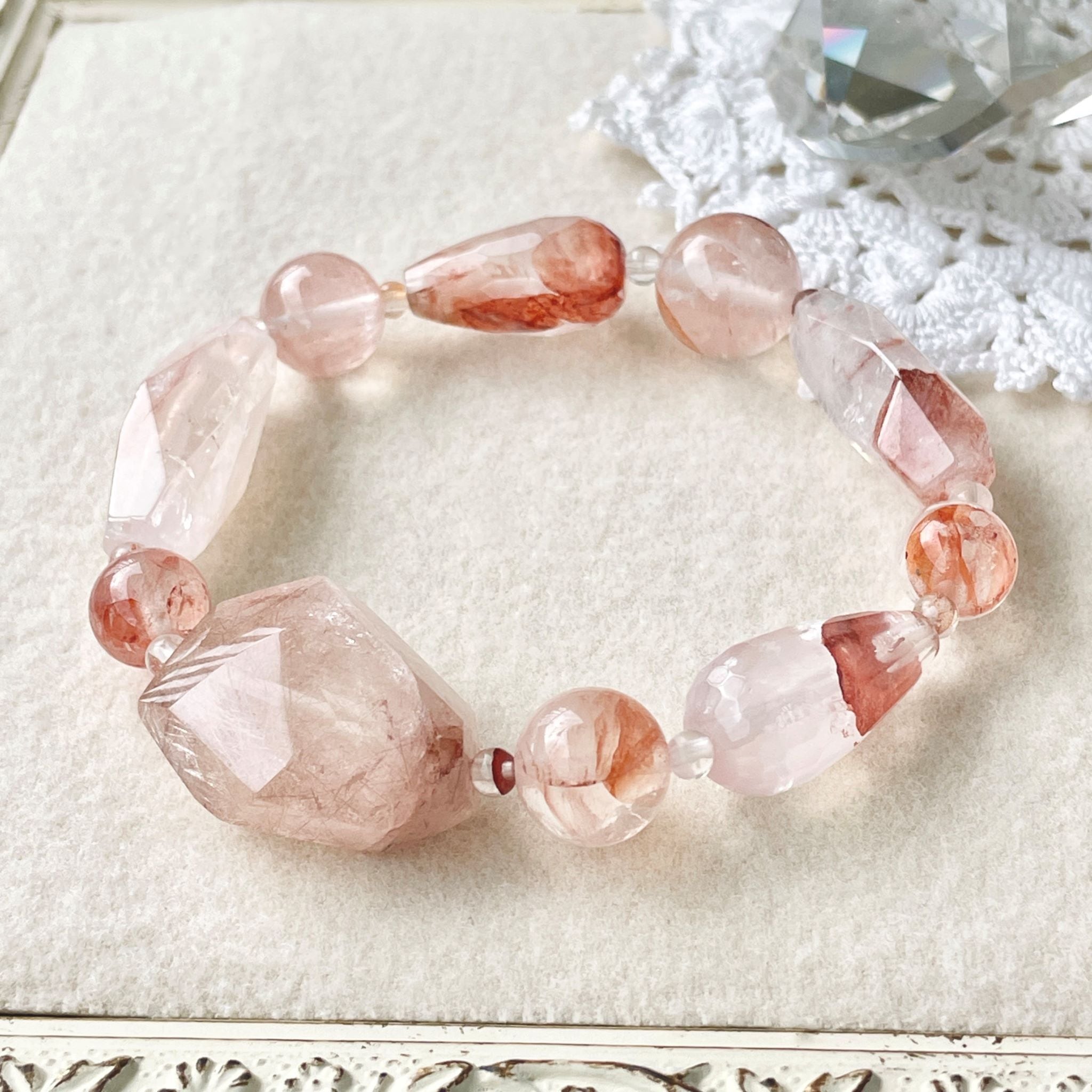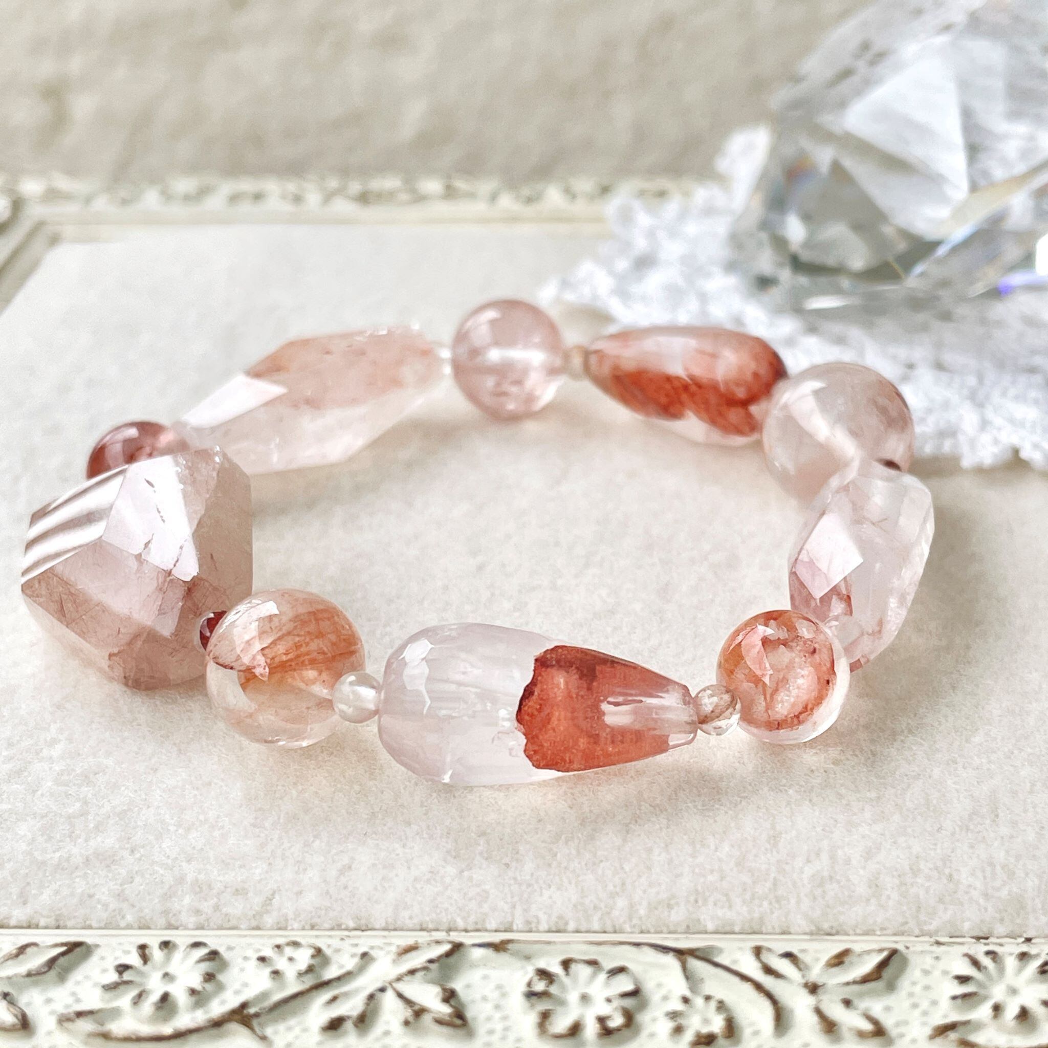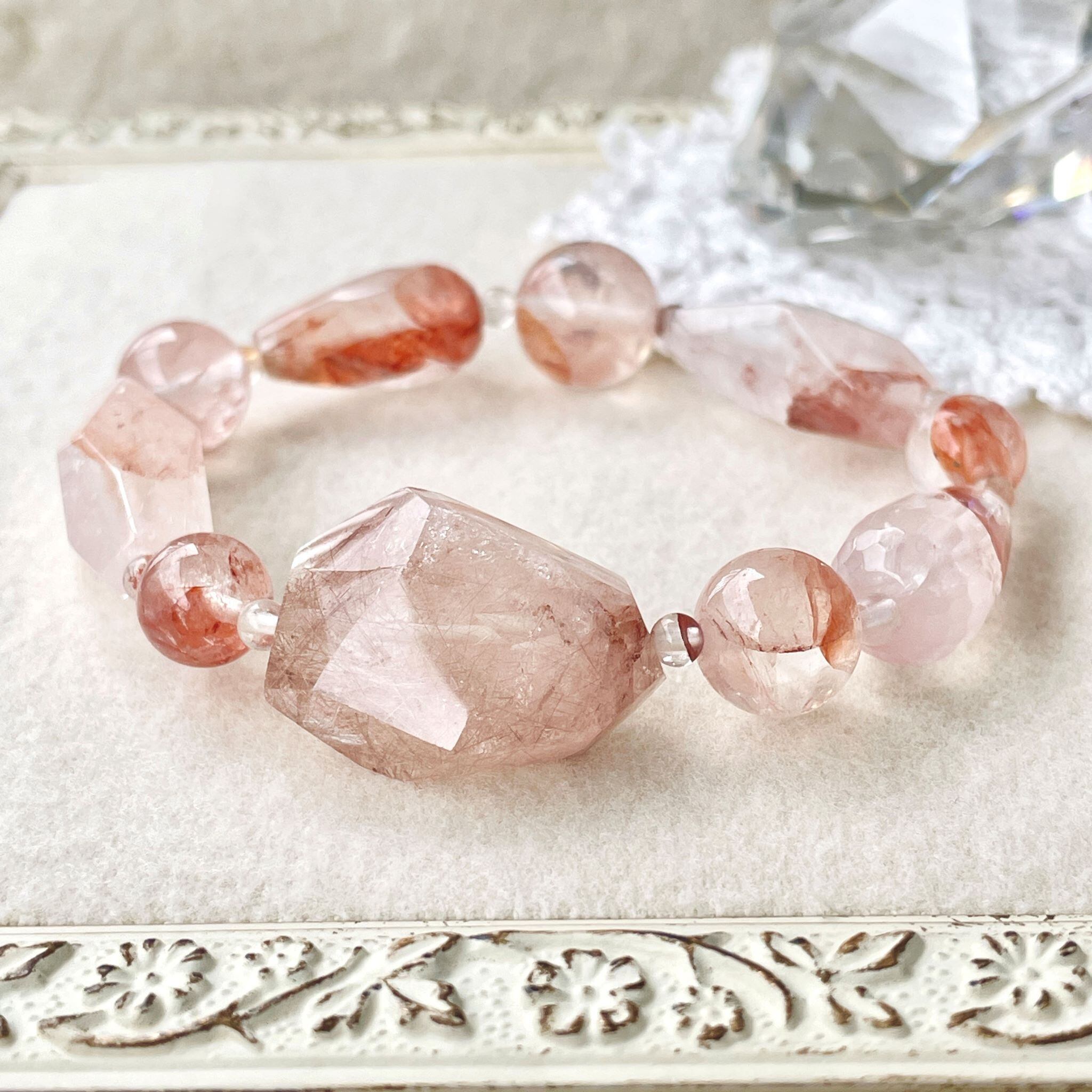 柔らかな色合いのレッドヘマタイトクォーツを中心に構成したブレスレットです。