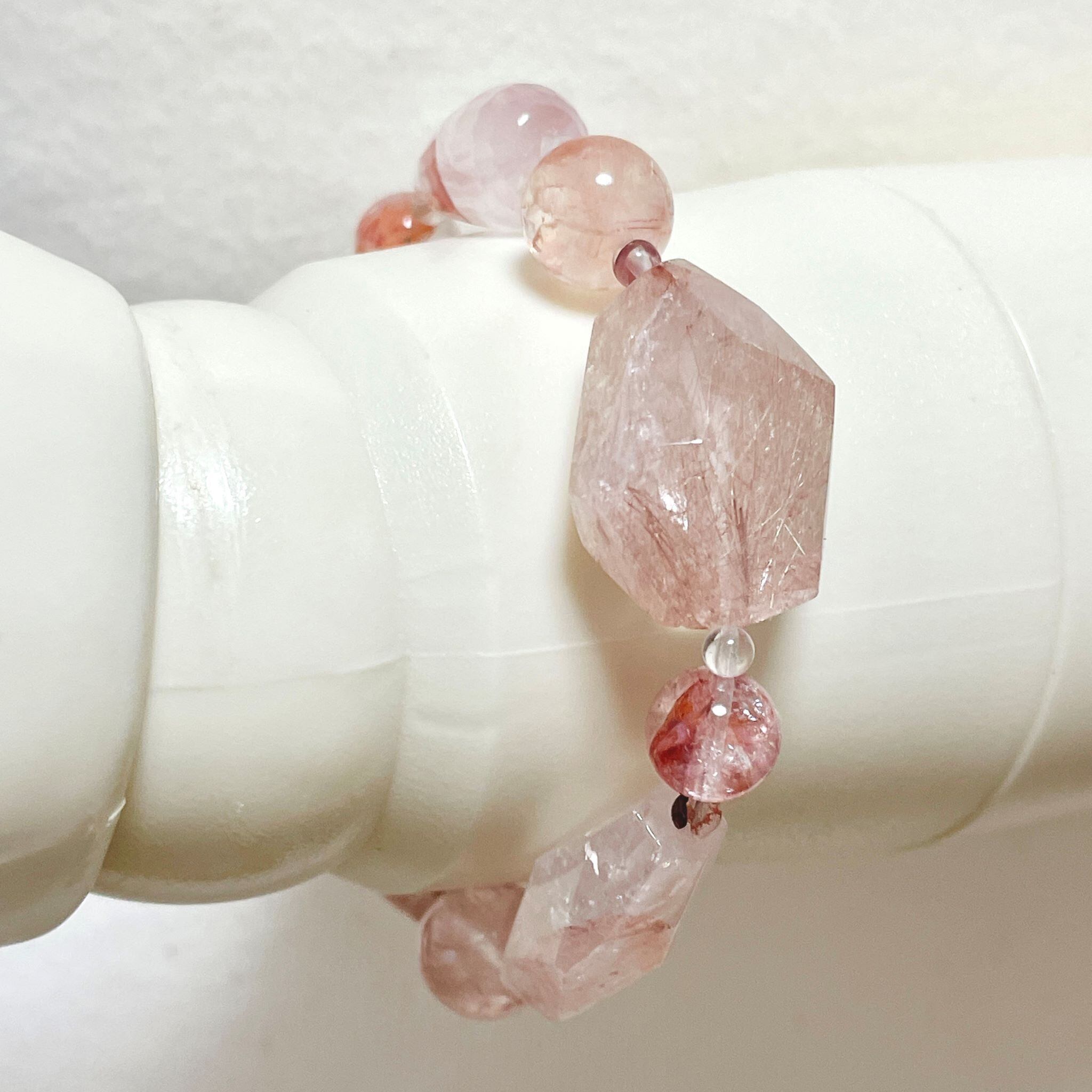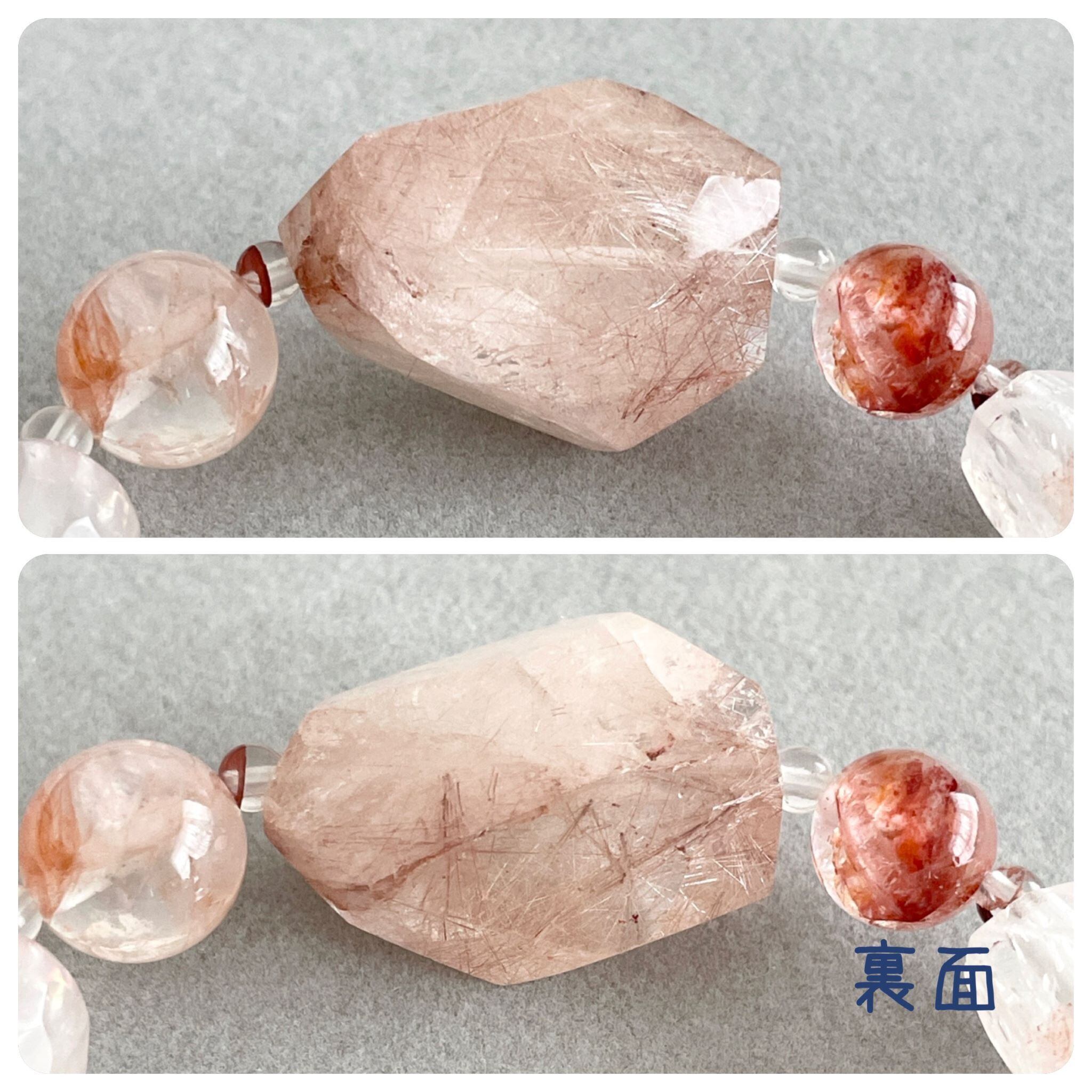 ronde レッドヘマタイトクォーツ+ルチルクォーツのブレスレット(淡) crs-b-2410-03