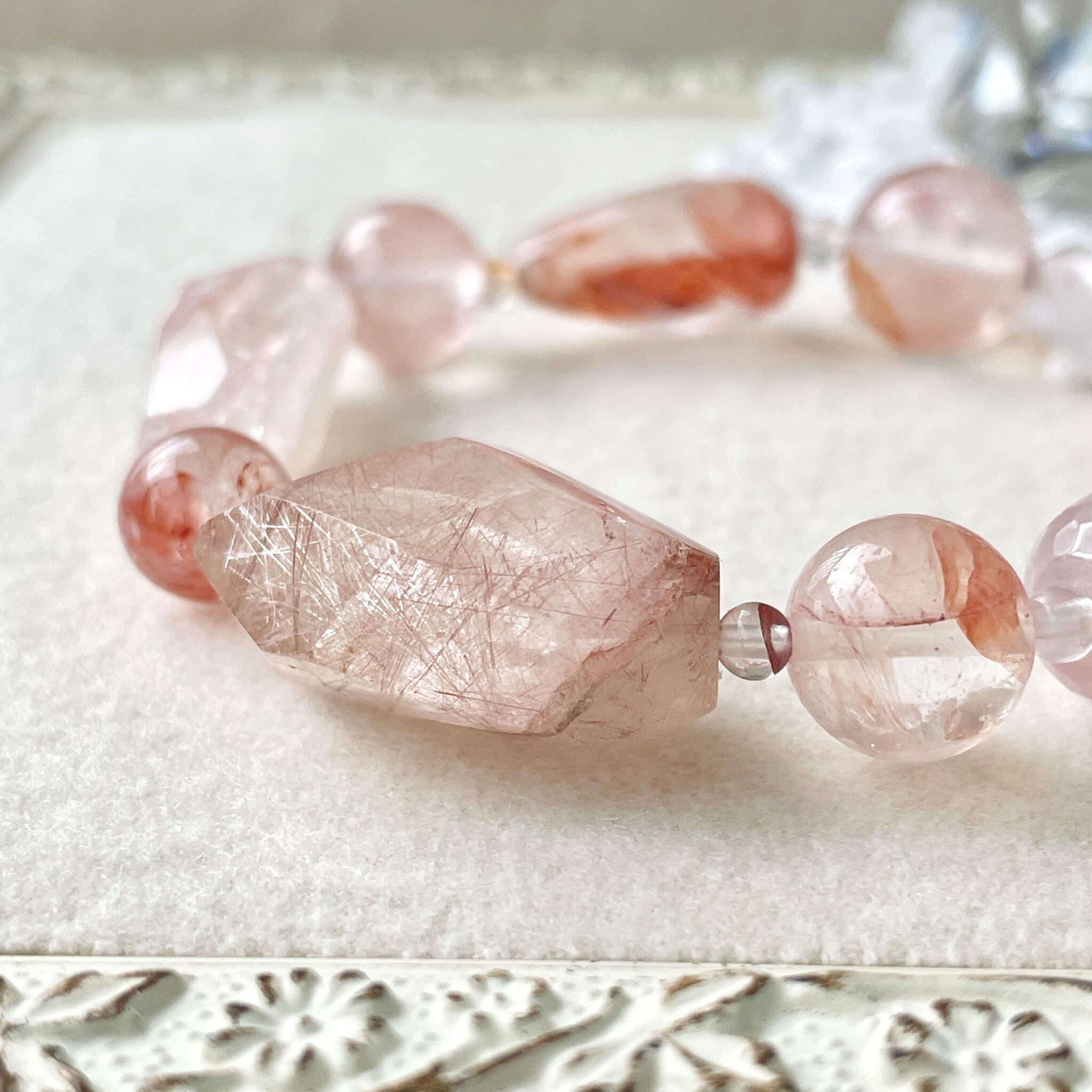 ロゼシャンパンカラーの細く美しい針を楽しめる透明な部分と、氷のような質感を併せ持つ石です。