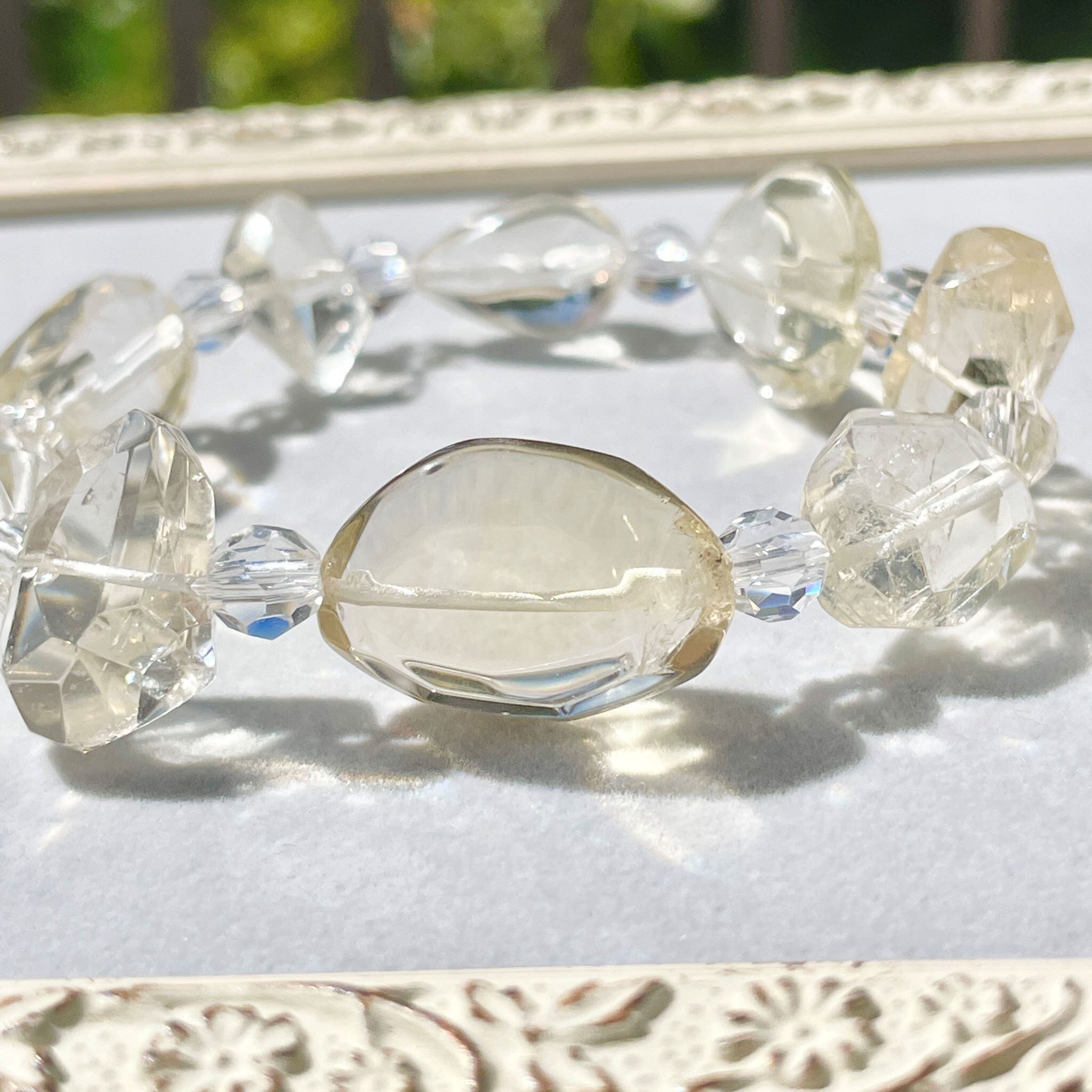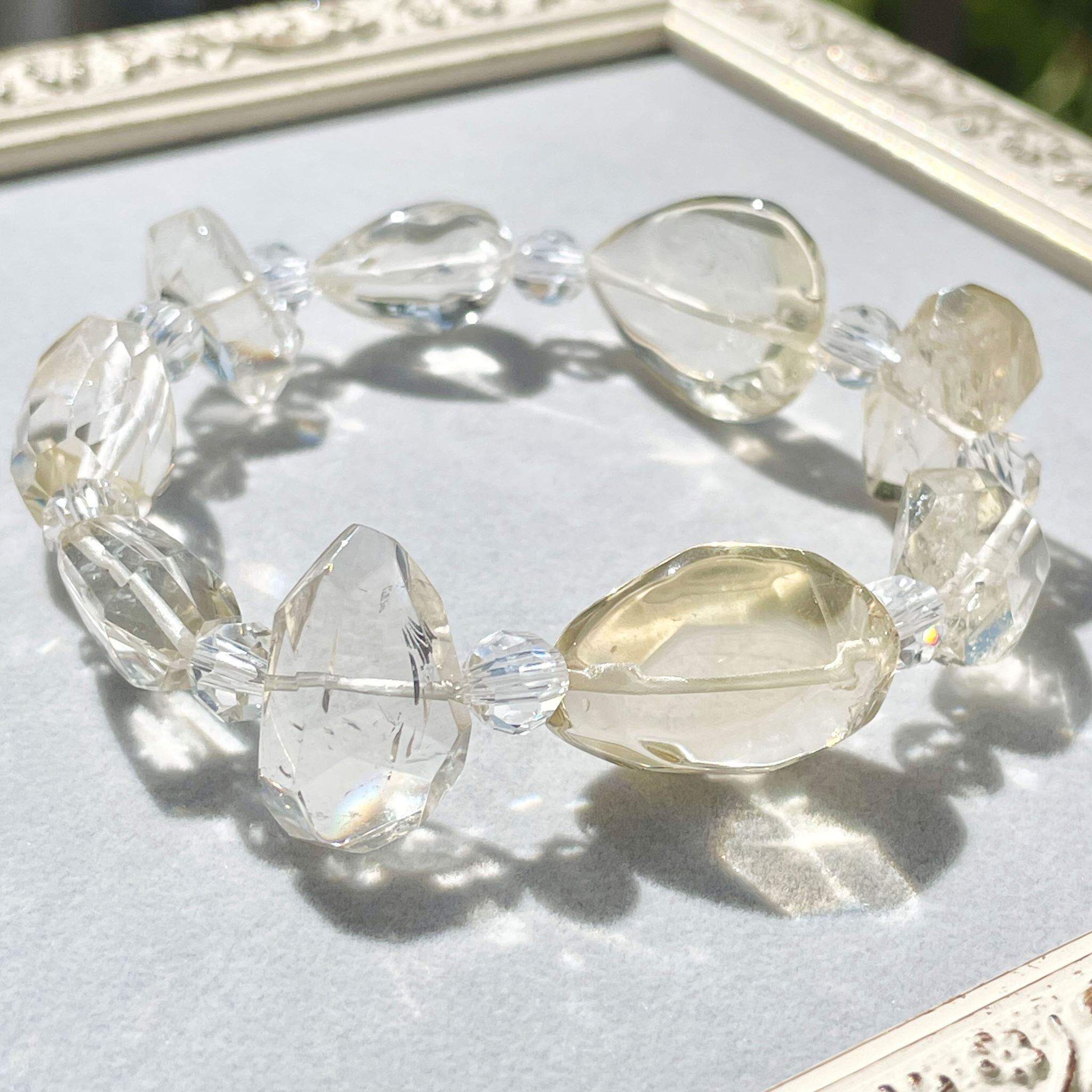 ronde 非加熱シトリン+クリスタル(天然水晶)のブレスレット cit-b-2410-05