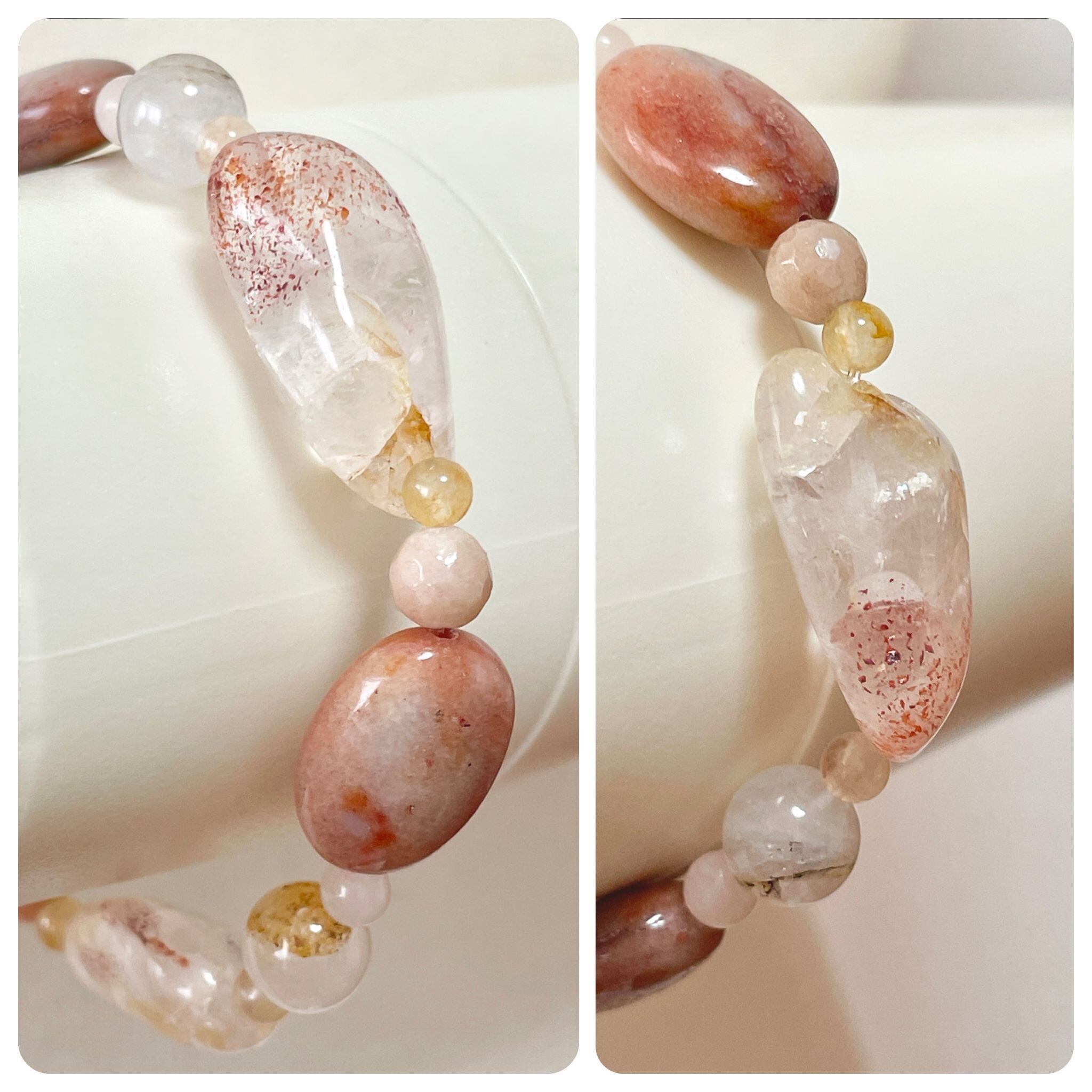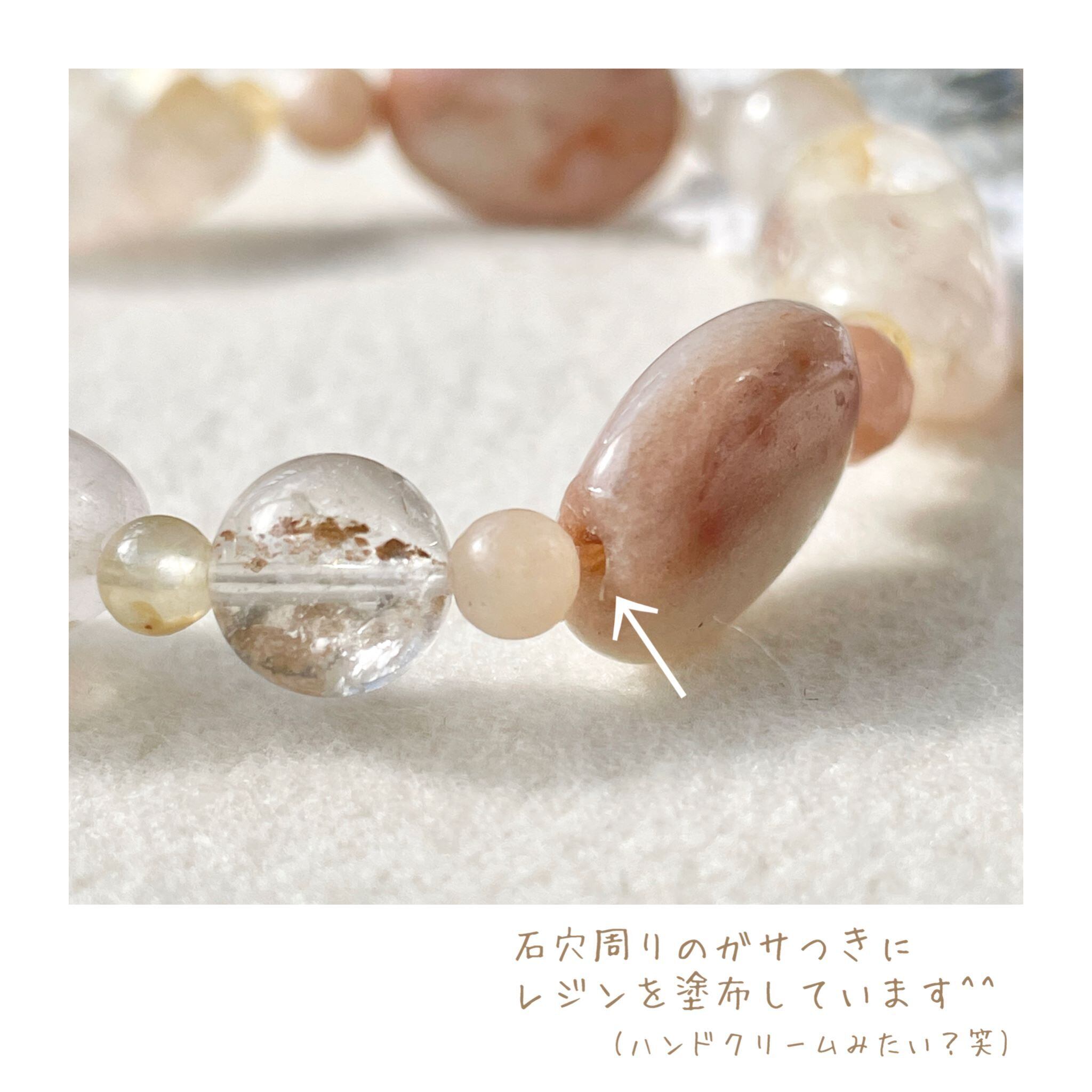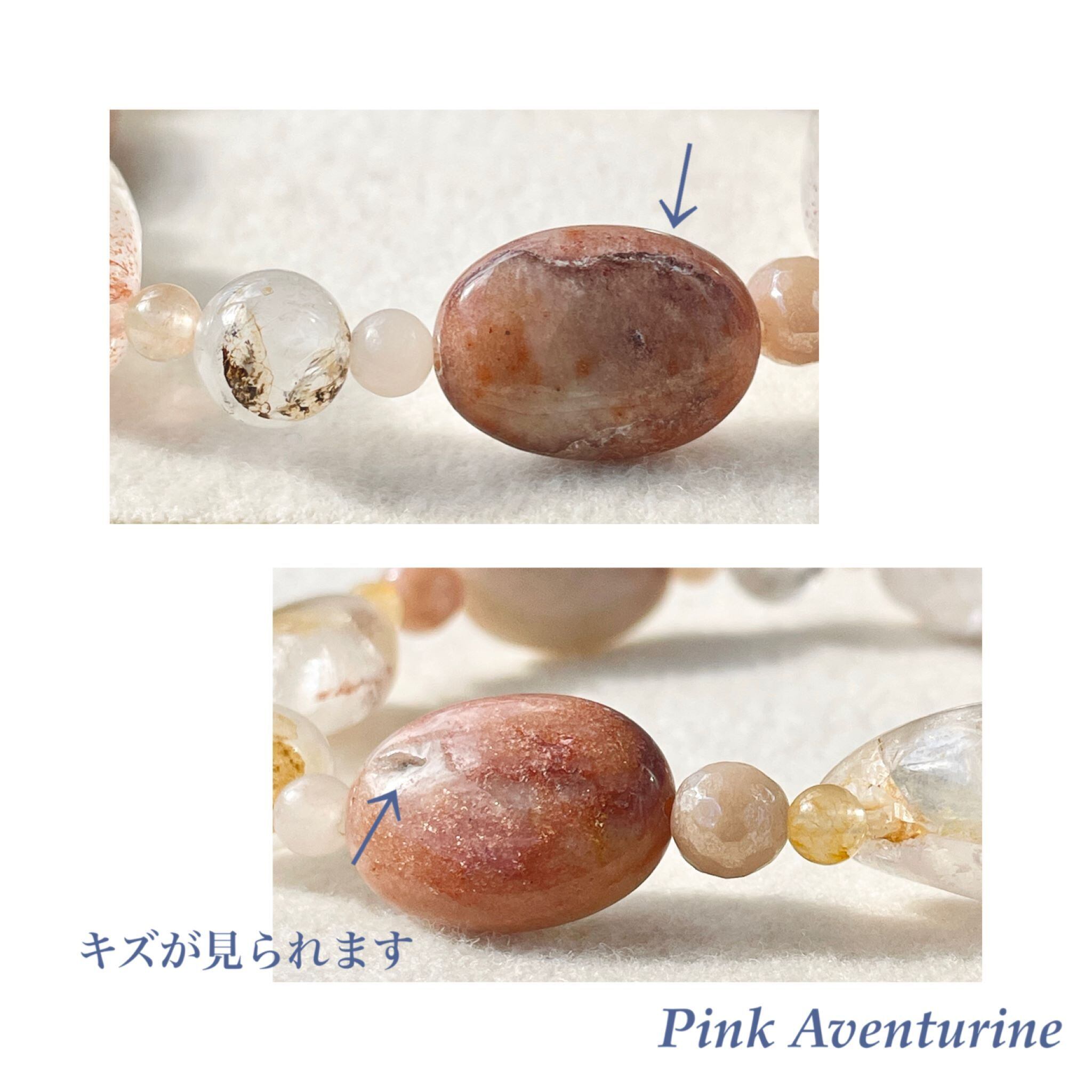 合わせたのは、ピンクアベンチュリンで、落ち着いたピンク~ピーチ系の色を選んでいます。