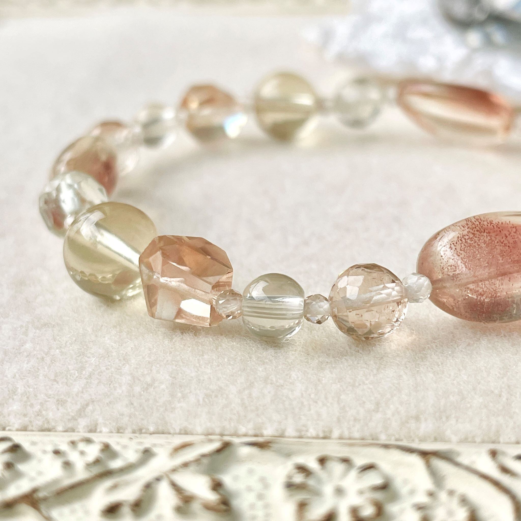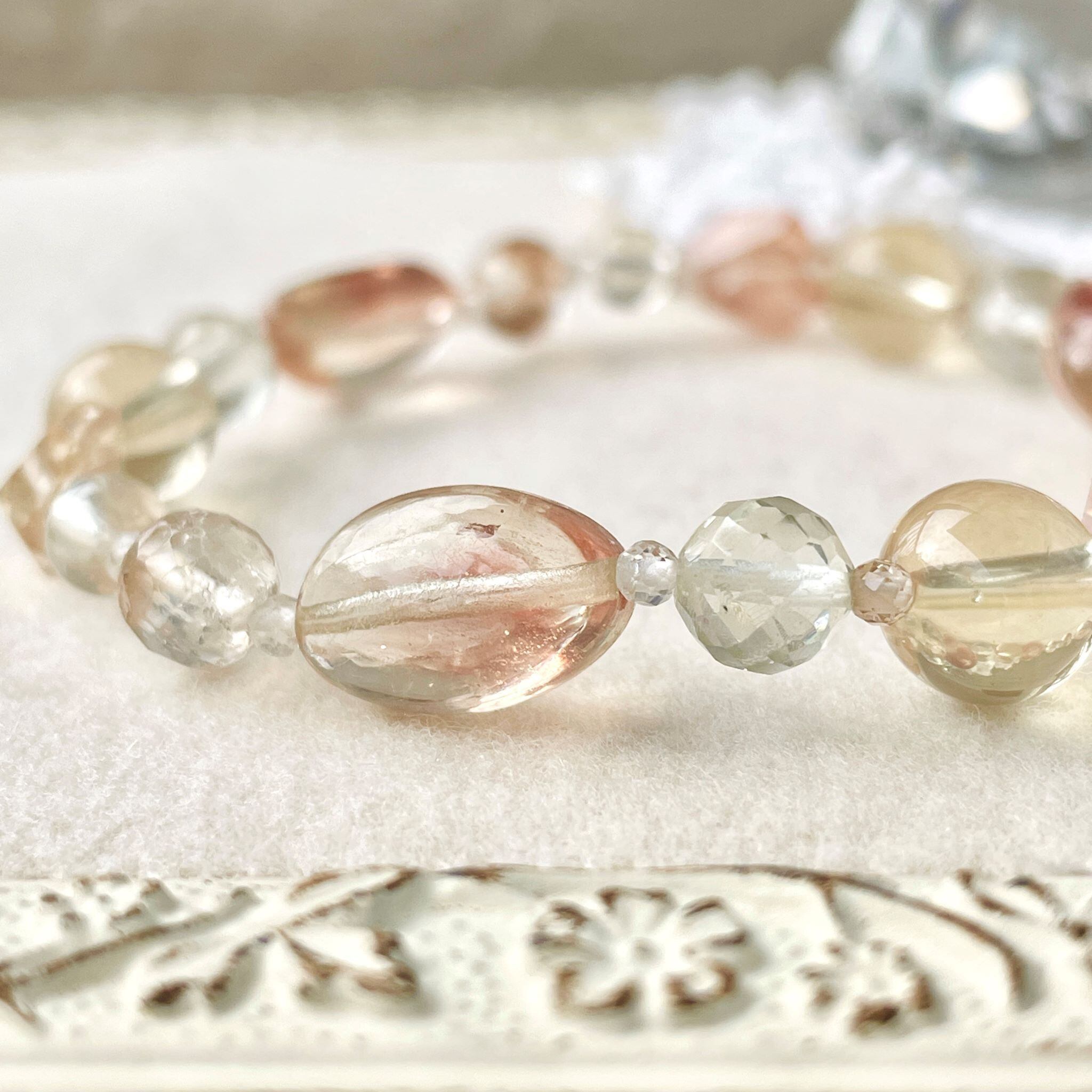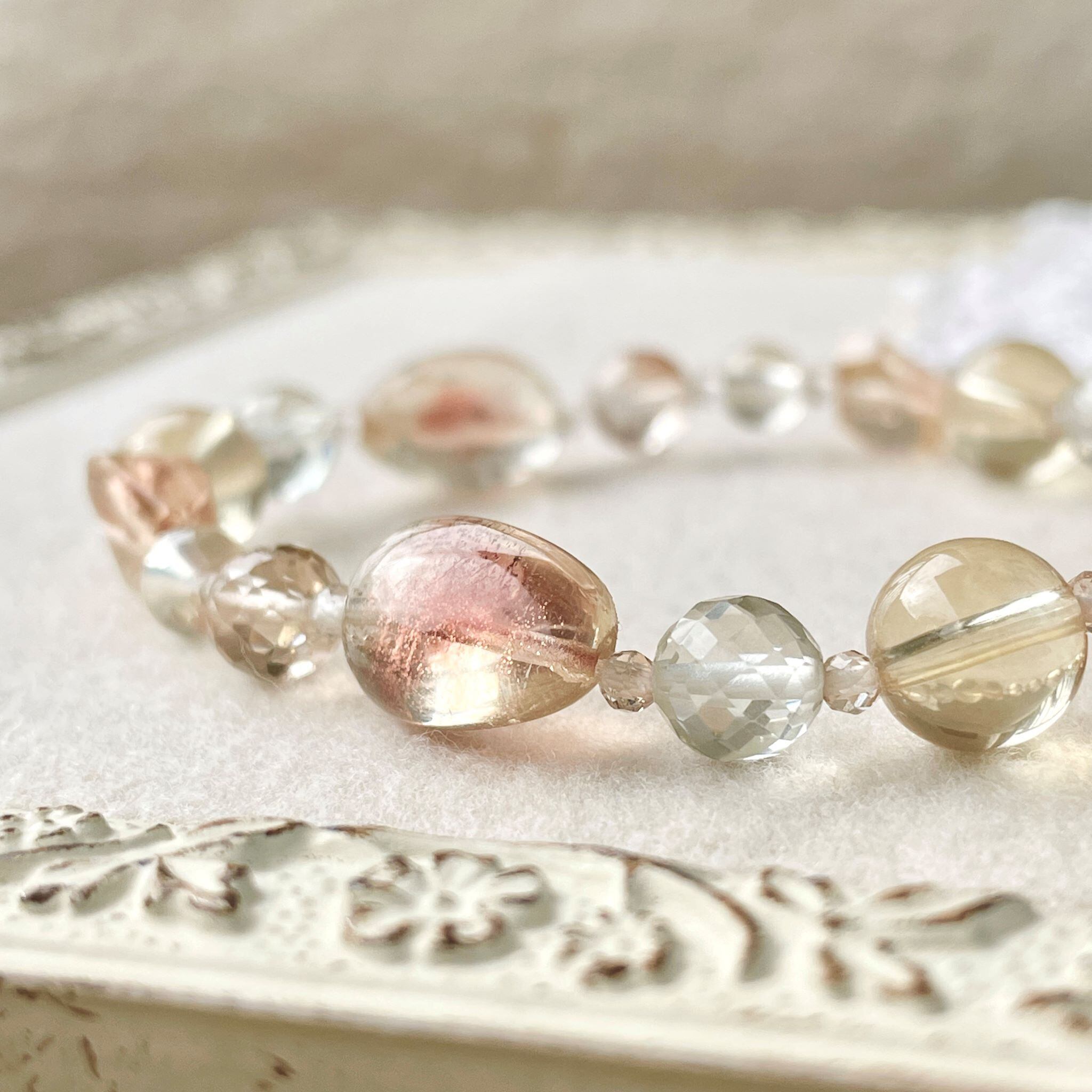 上品なニュアンスカラーでまとめたブレスレットです。