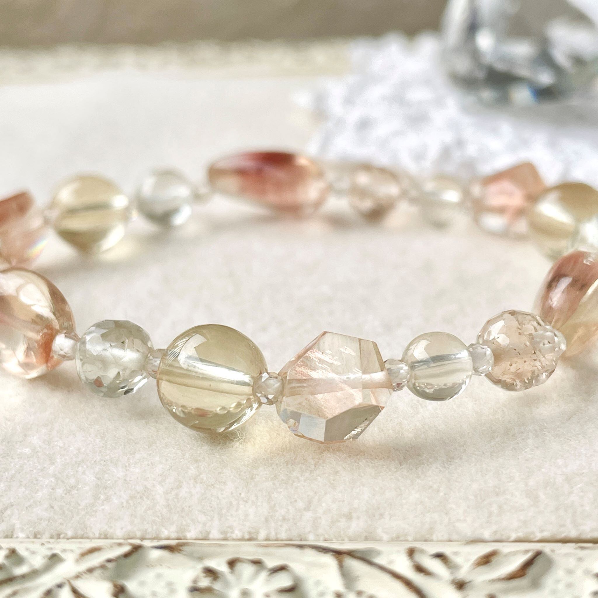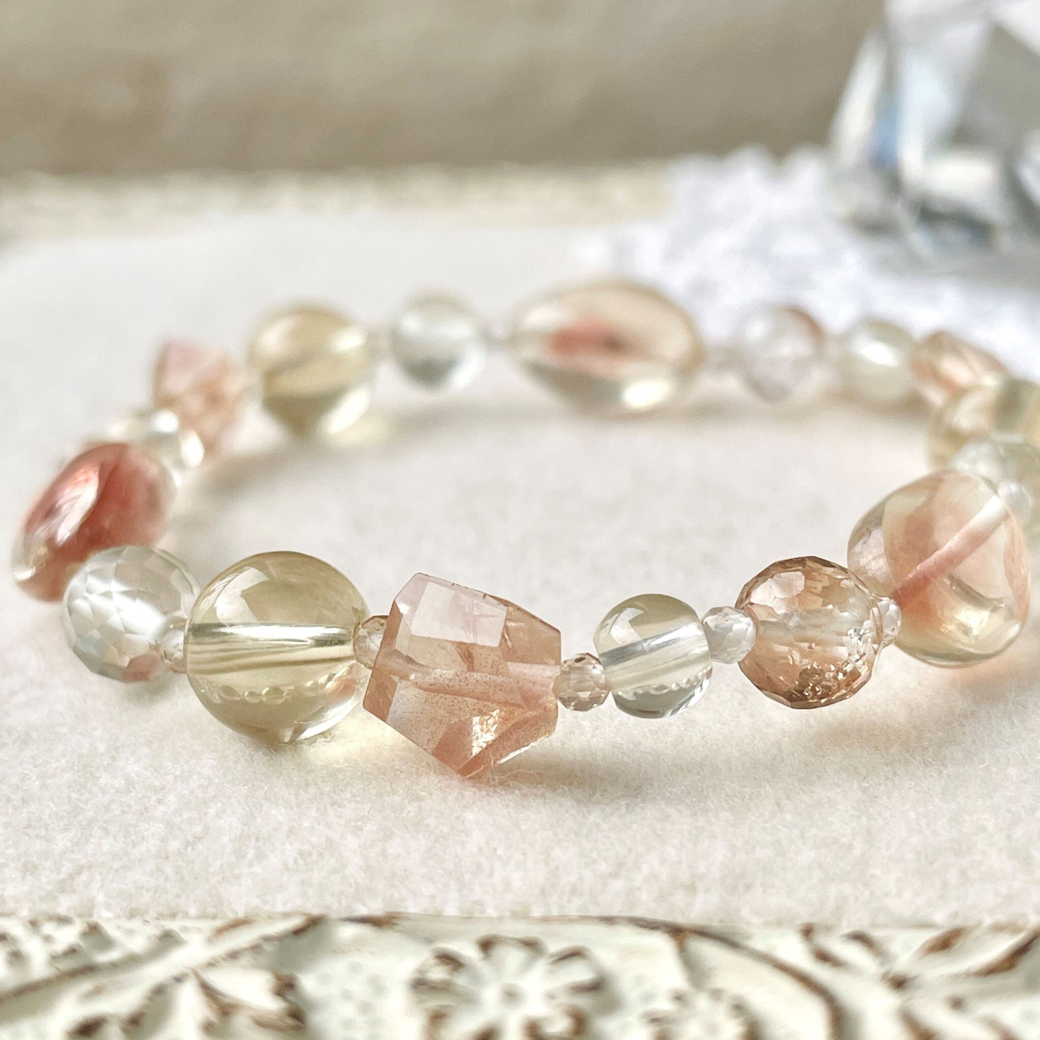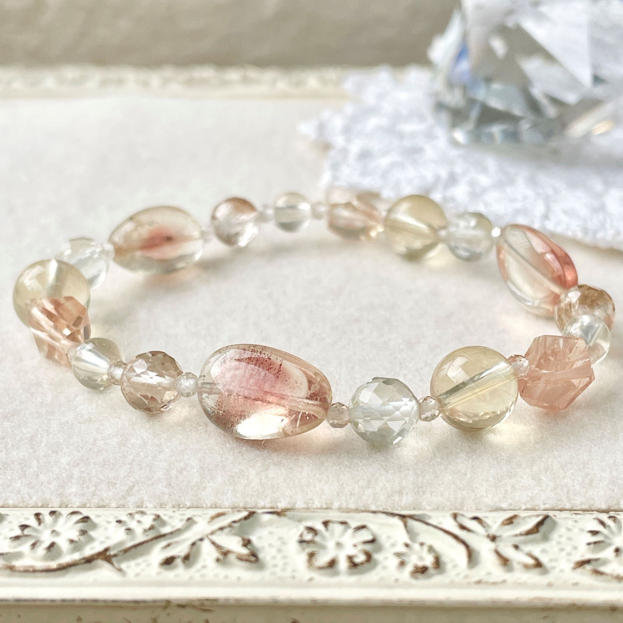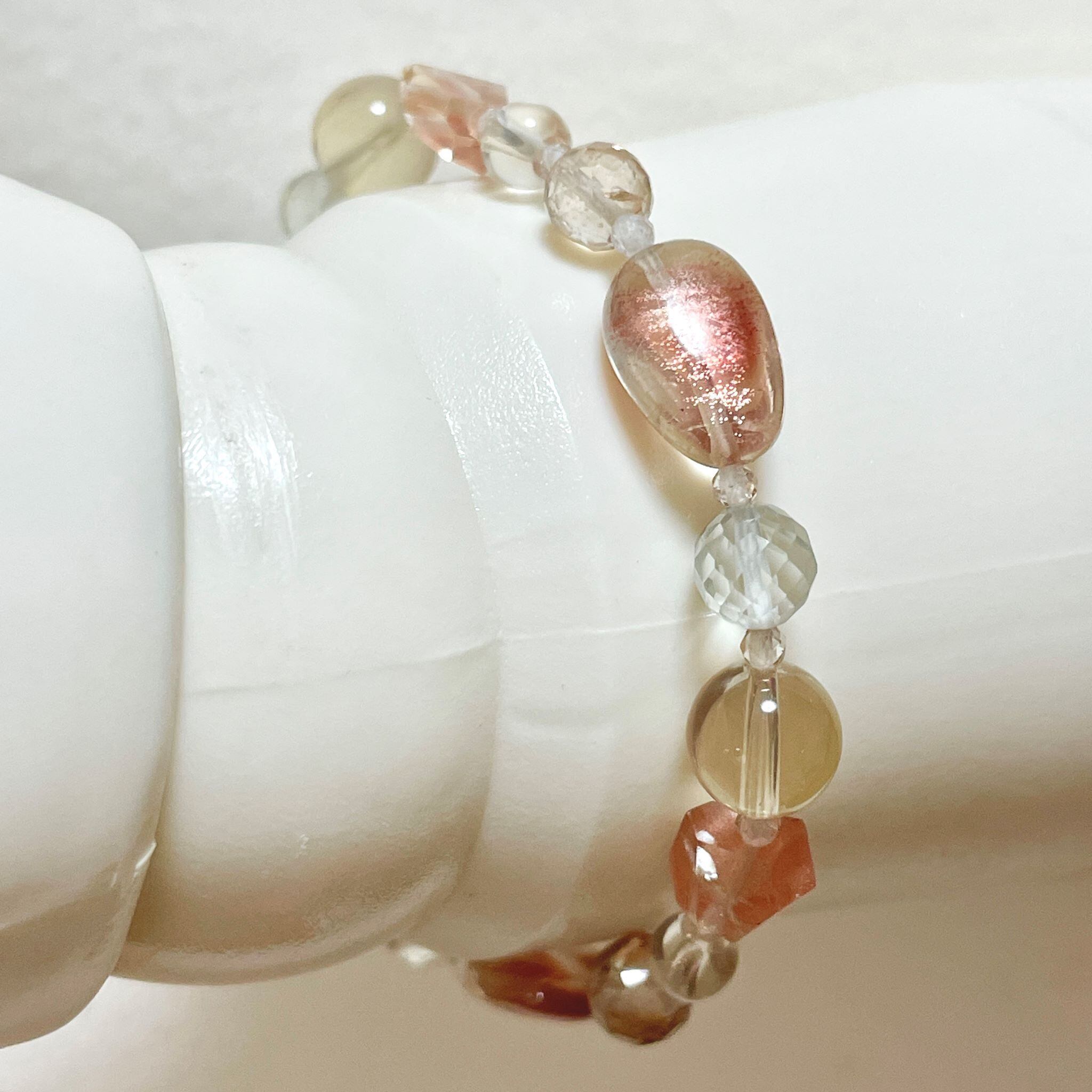 上品なニュアンスカラーでまとめたブレスレットです。