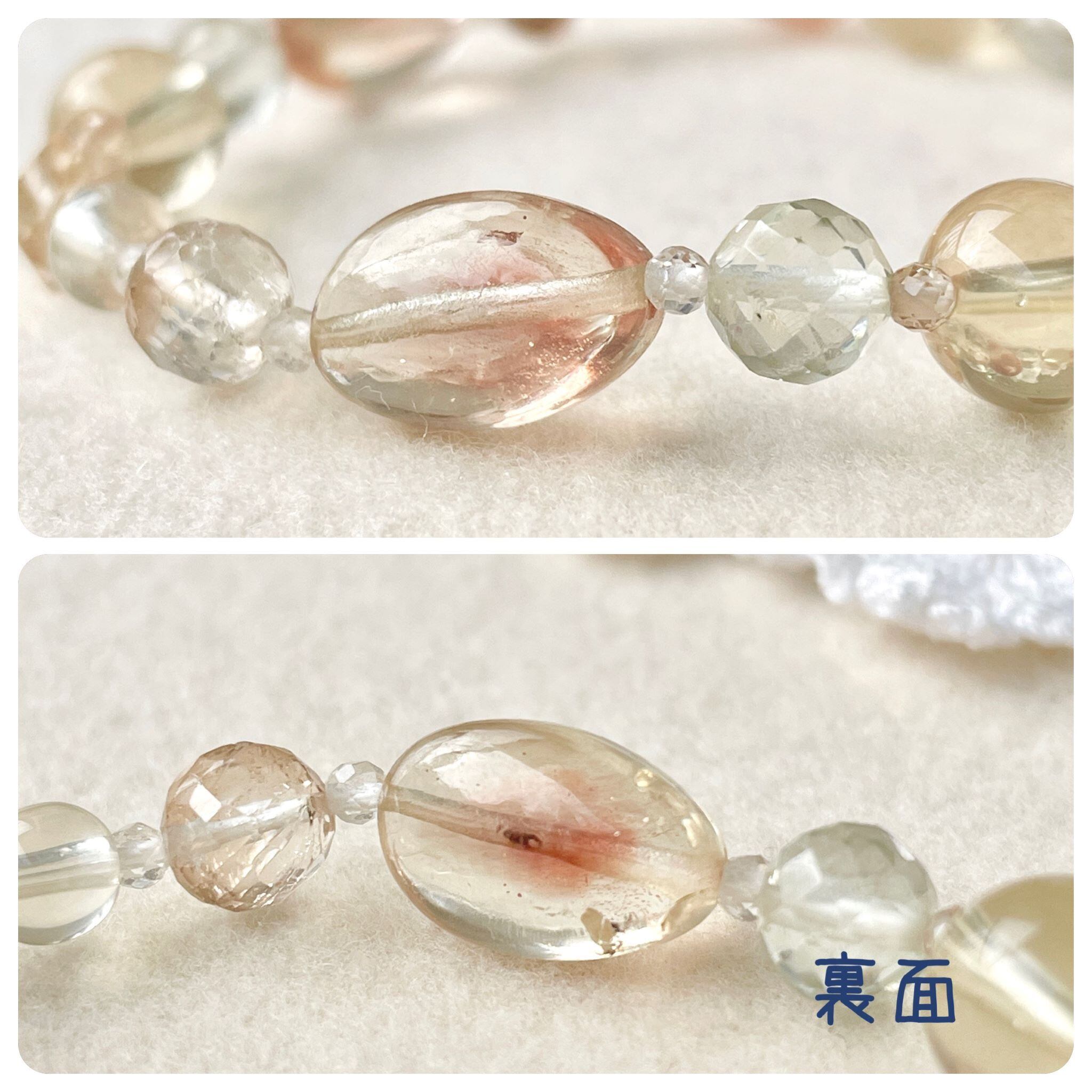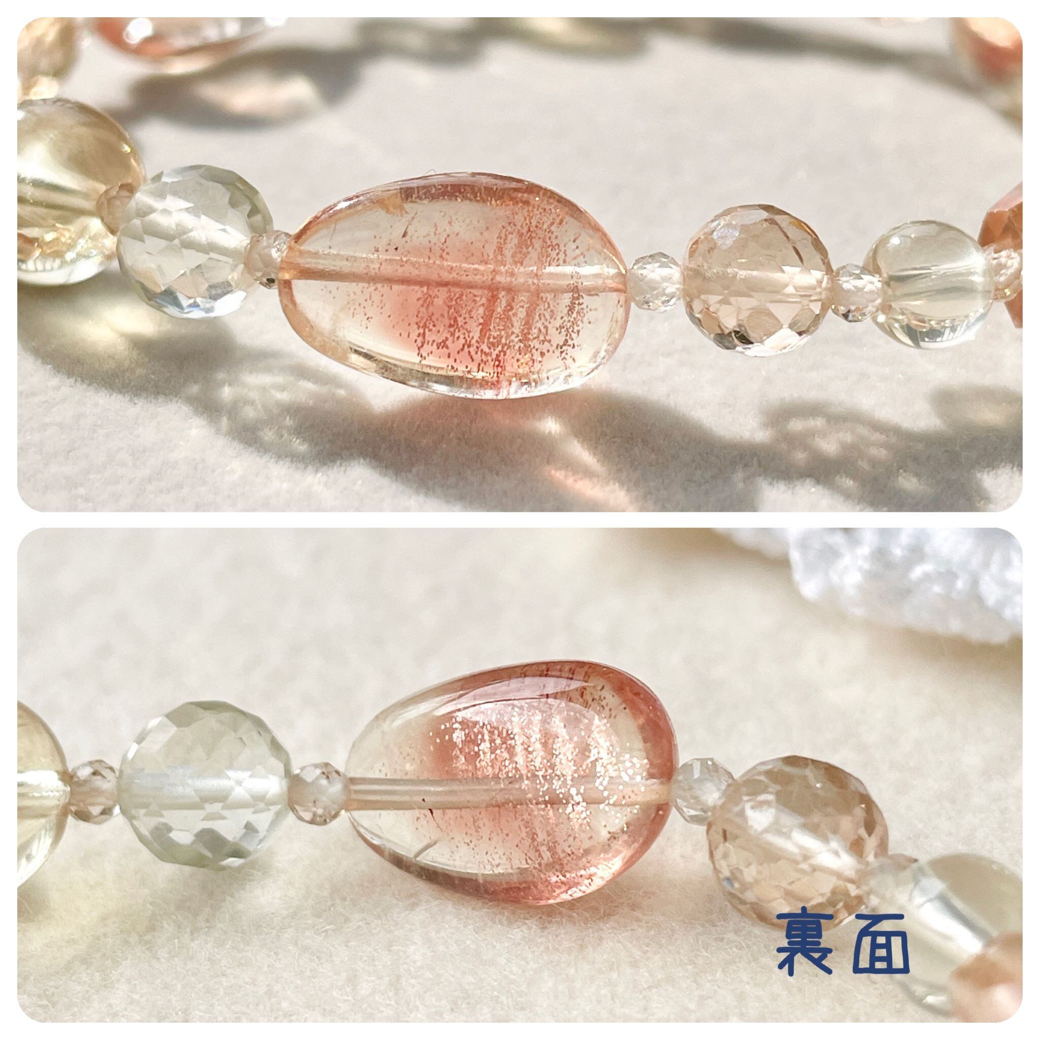 品のよいサーモンピンクとシャンパンゴールドの輝きが美しい石たちです。