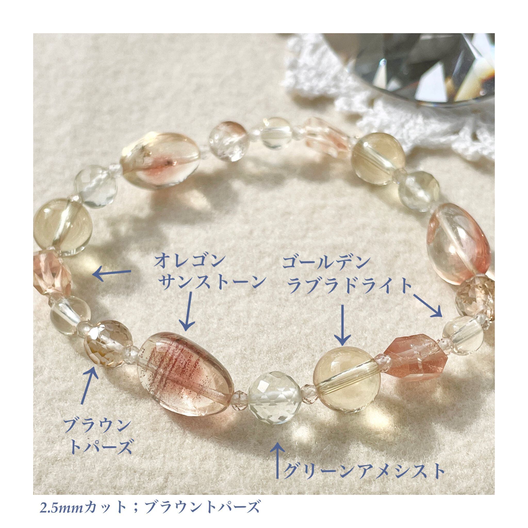 ronde オレゴンサンストーン+ゴールデンラブラドライト+グリーンアメシストのブレスレット sns-b-2411-03