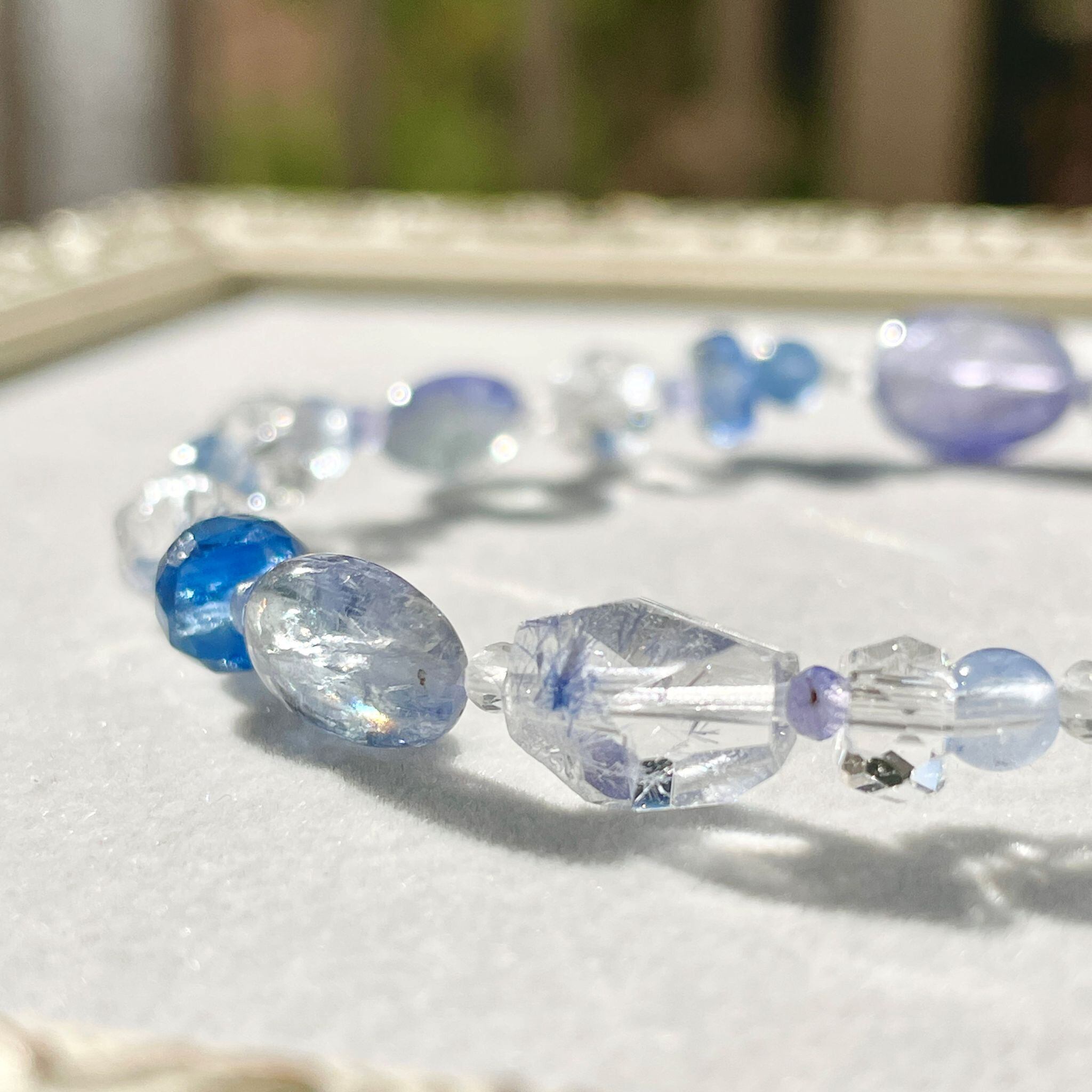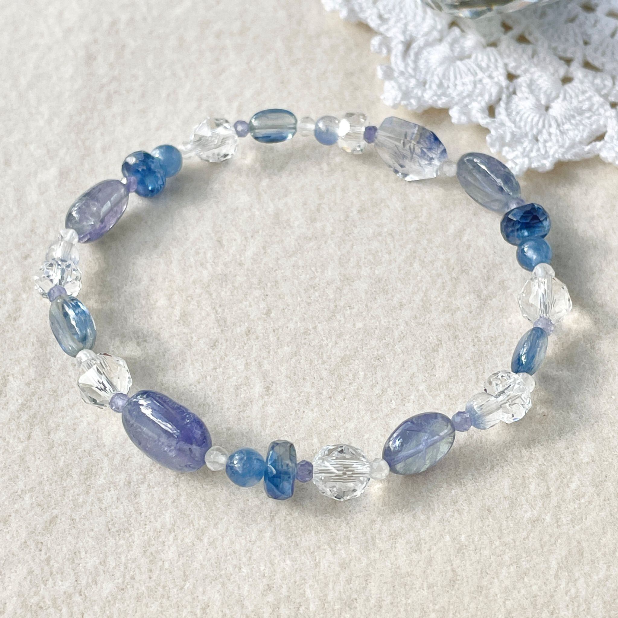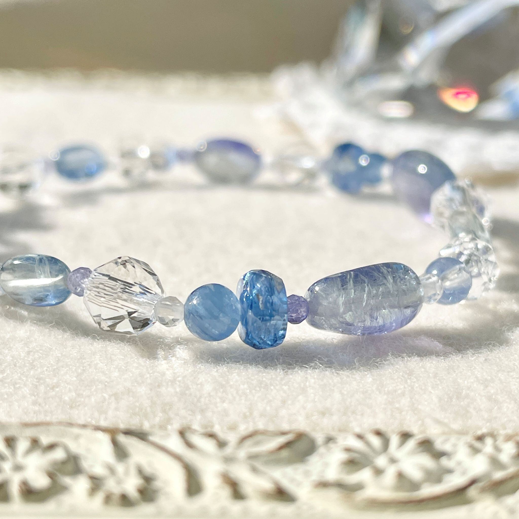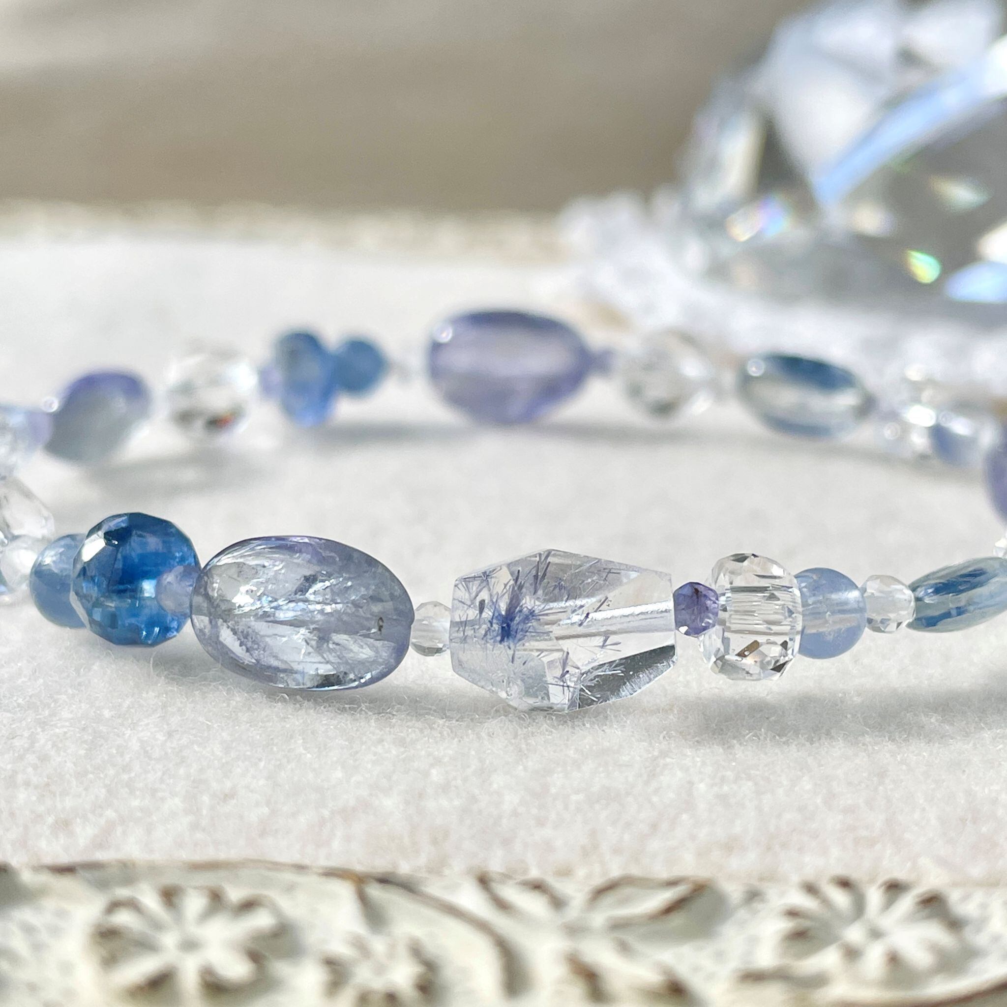 ronde タンザナイト+カイヤナイト+デュモルチェライトinクォーツのブレスレット tnz-b-2412-02