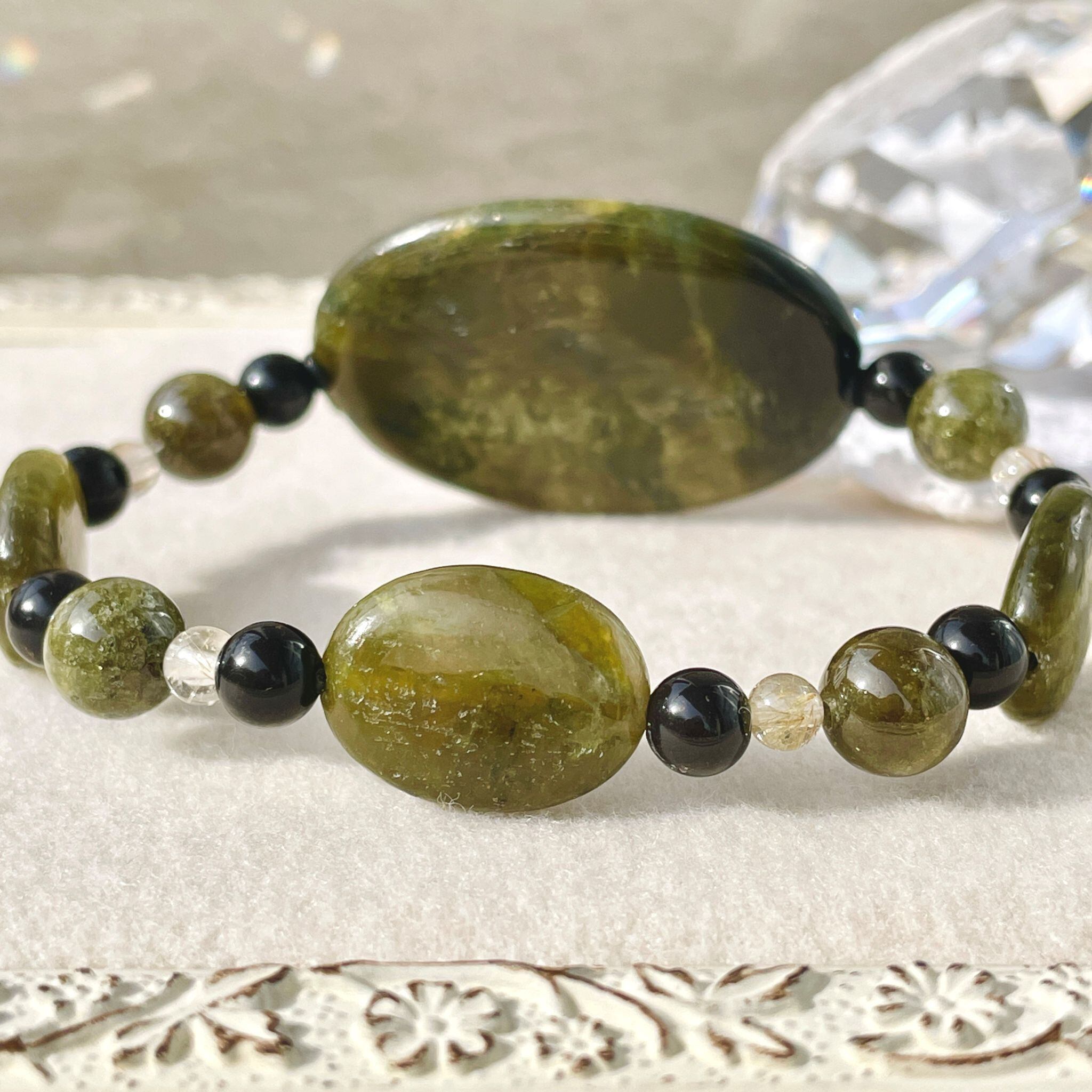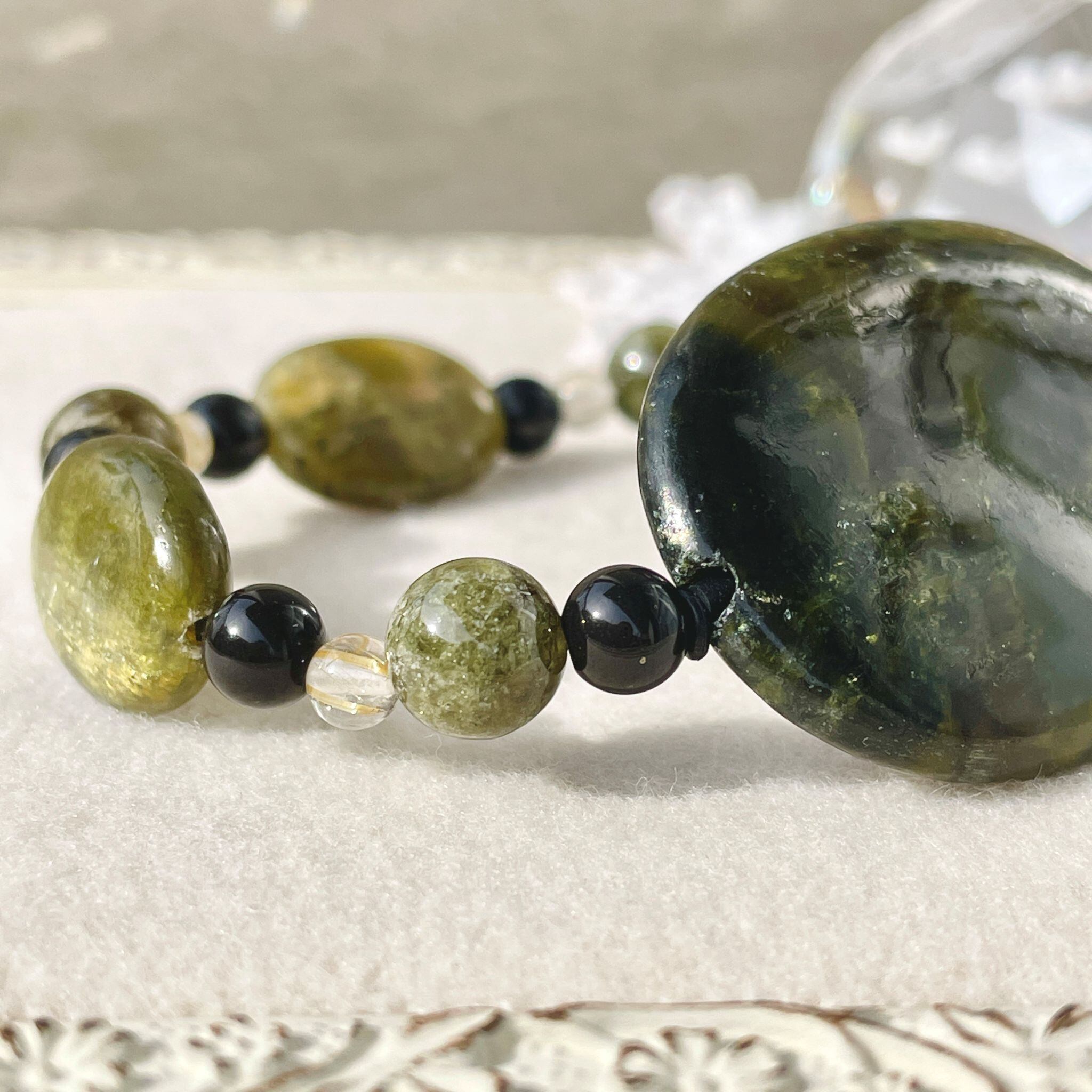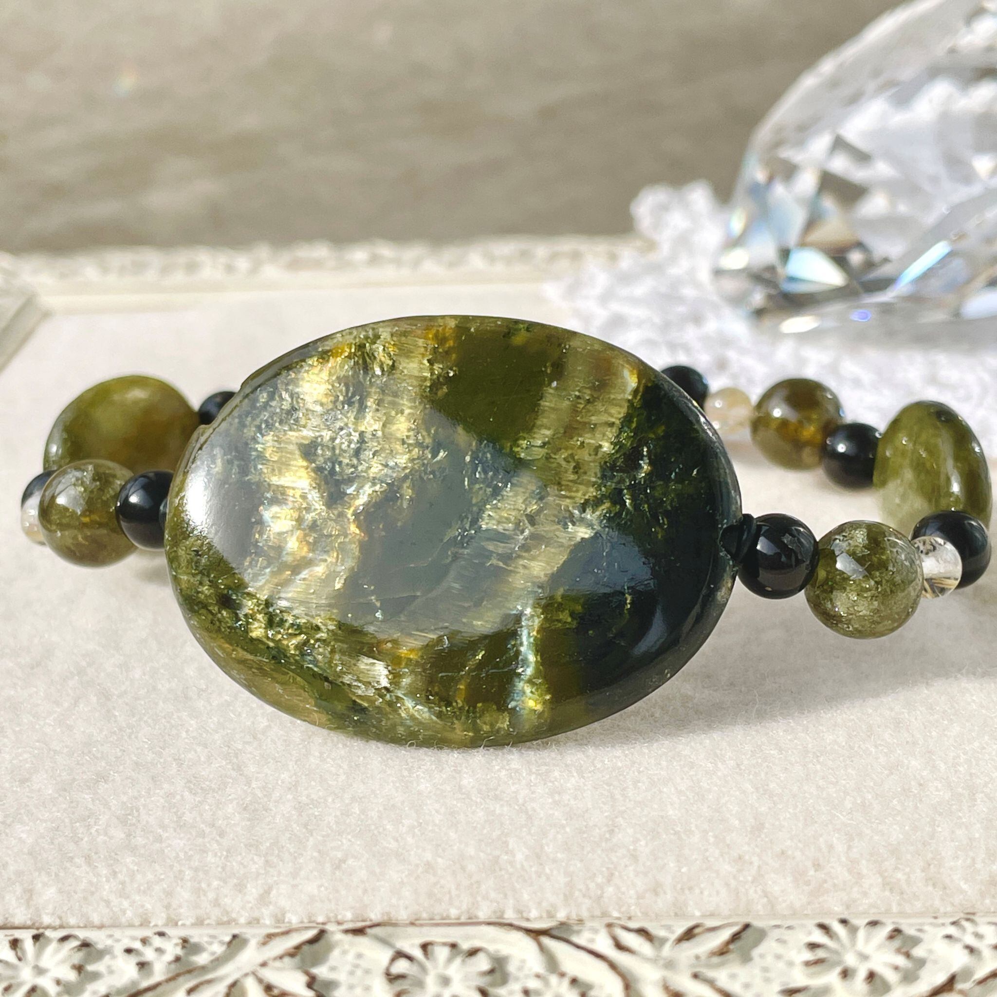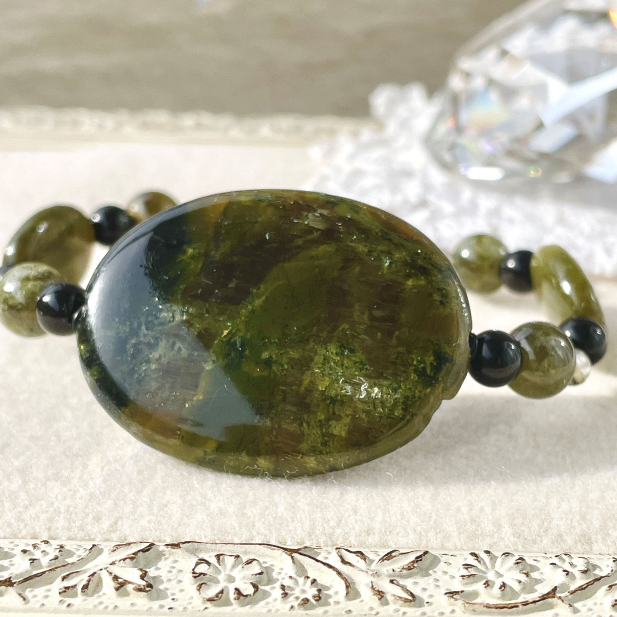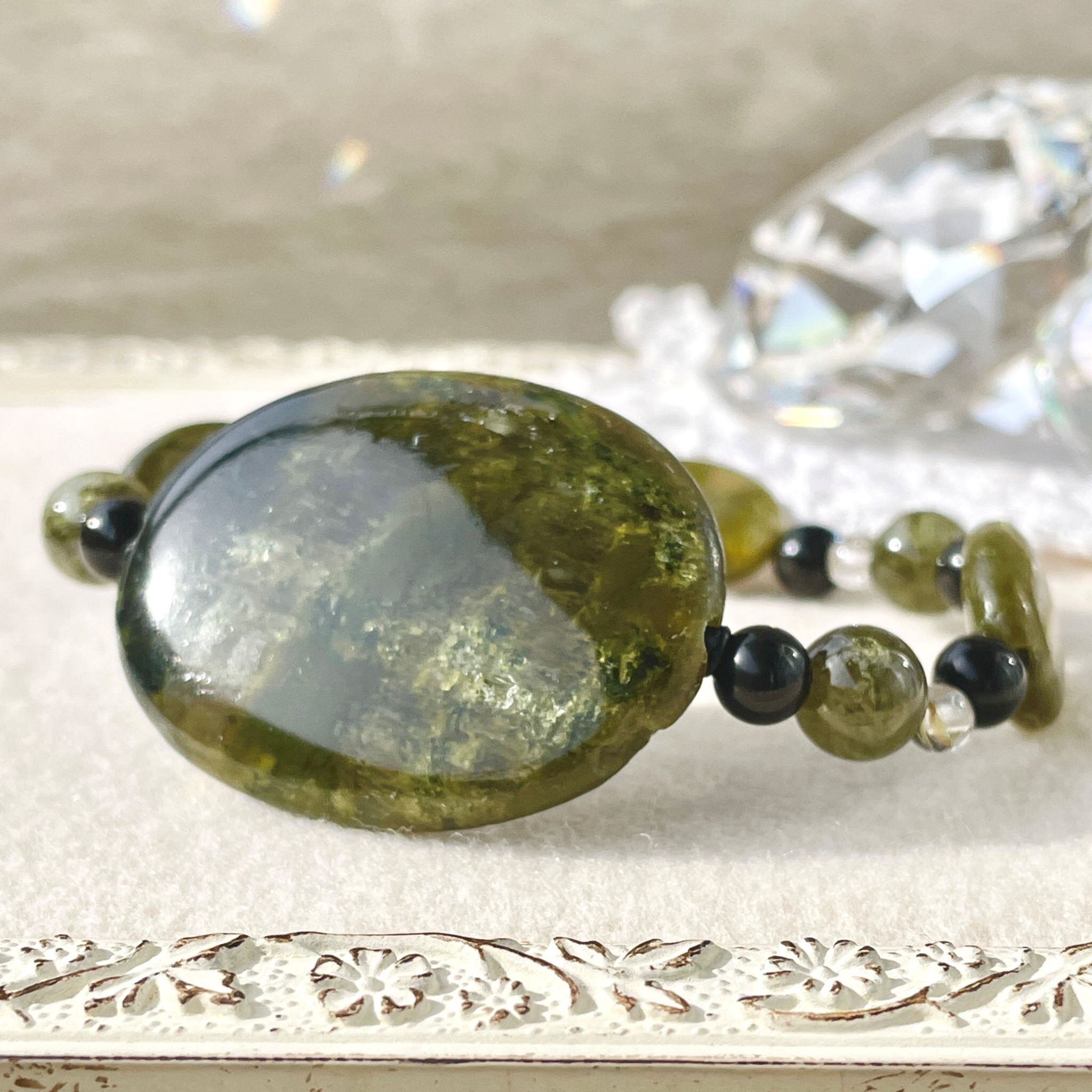 ronde サーペンティン+ヒマラヤ聖蛇石+グリーンガーネットのブレスレット spt-b-2412-03