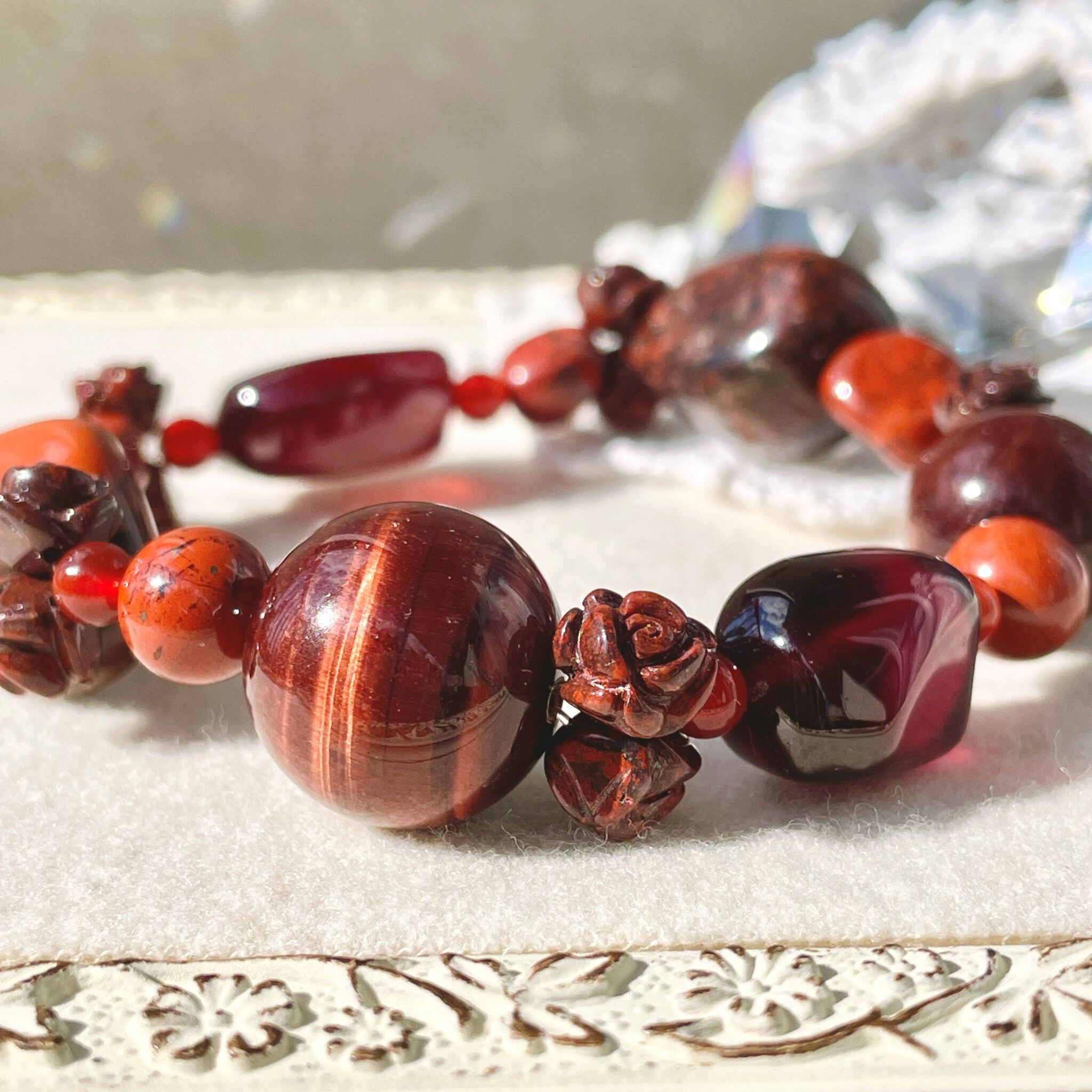 それらを4mm玉のレッドアゲートで繋ぎました。