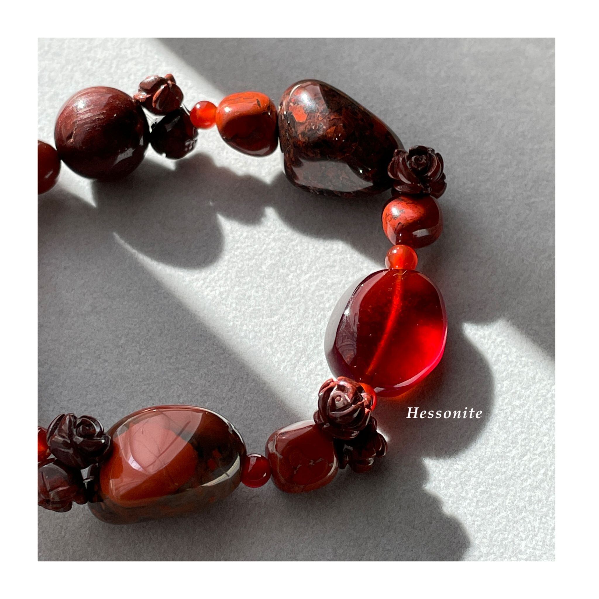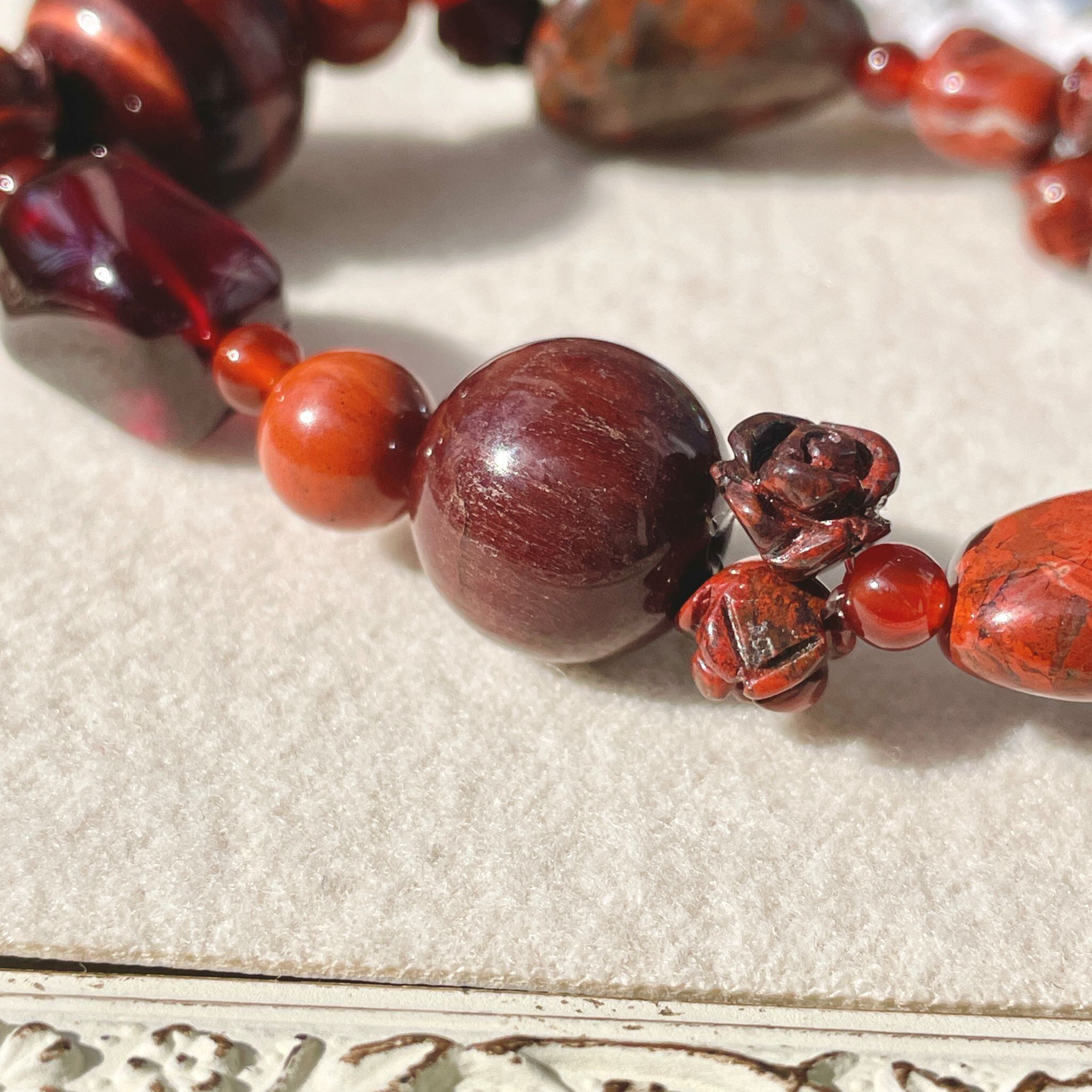ビーズ仕様の石でこのような鮮やかな朱赤を楽しめる大ぶりなものはあまりないかもしれません。存分に楽しんでいただければと思います。
