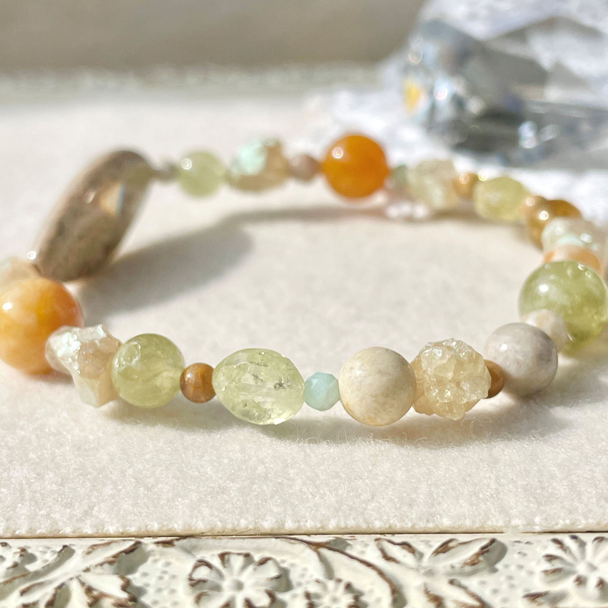 ronde フォシルコーラル+グリーンガーネット+クリソプレーズのブレスレット foc-b-2502-05